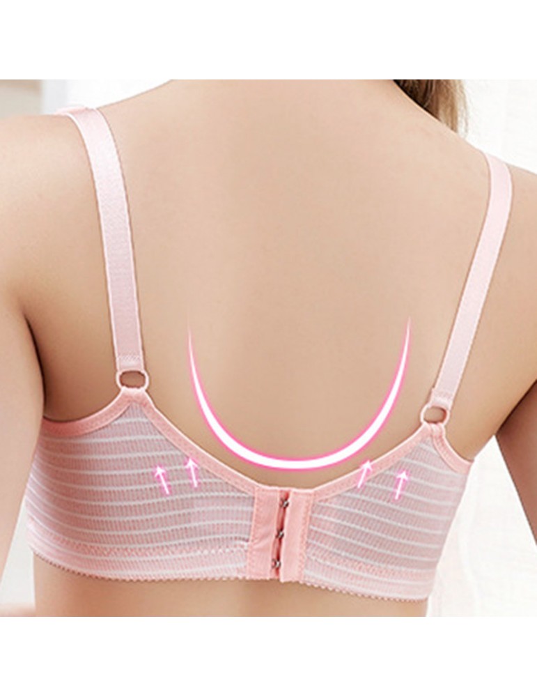 Striped Print Wireless Front Button Maternity Gather Nursing Bras