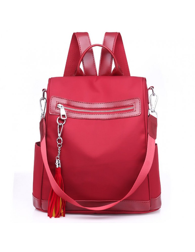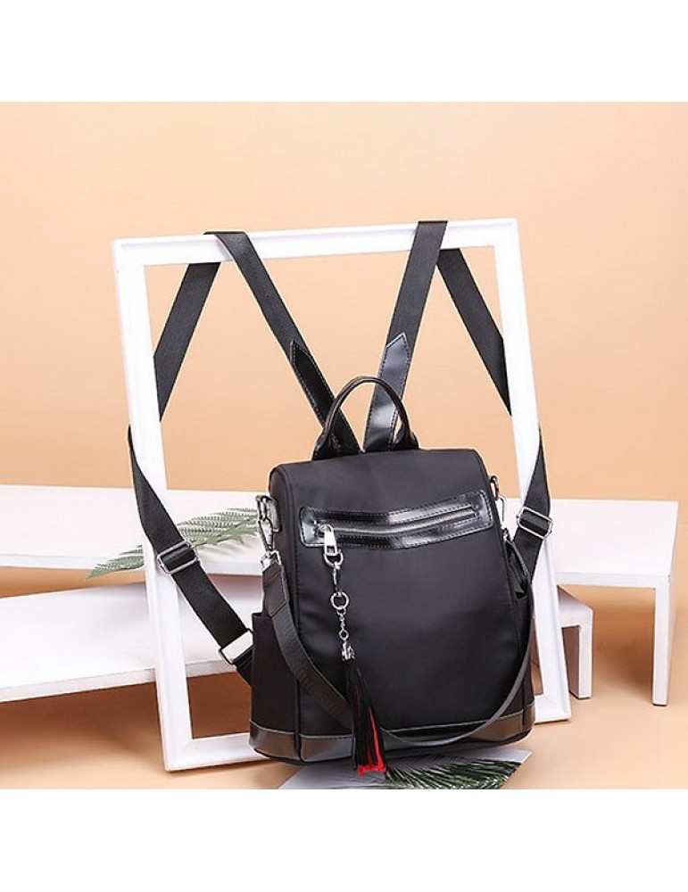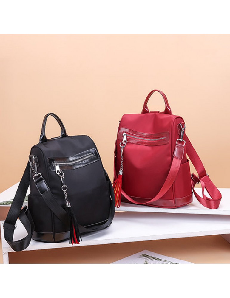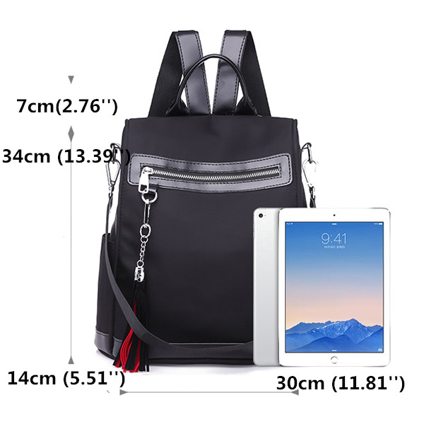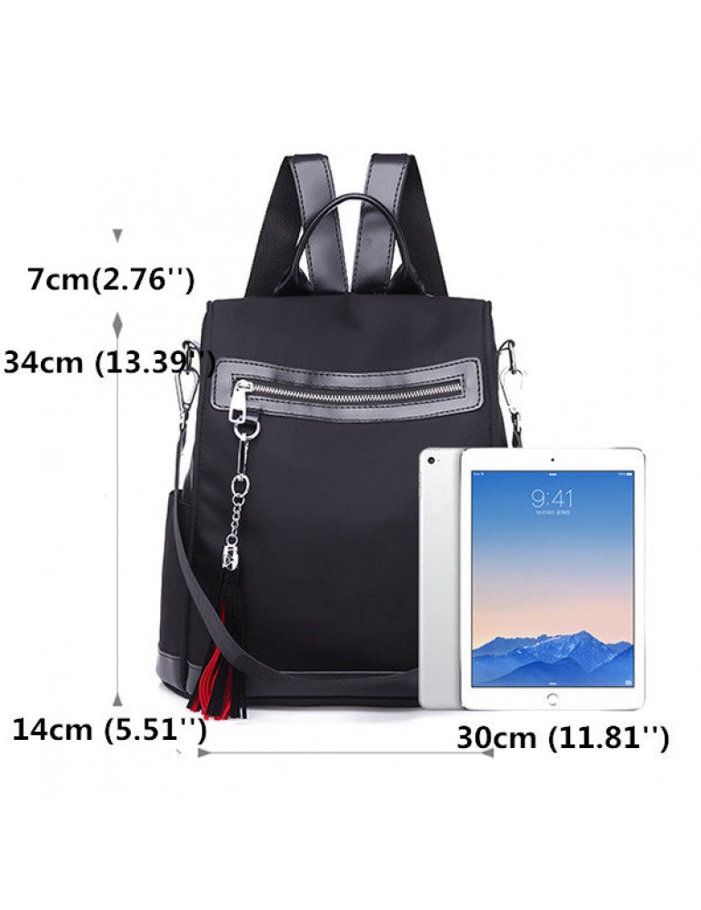 Women Nylon Waterproof Multi-function Backpack Outdoor Travel Tassel Shoulder Bags