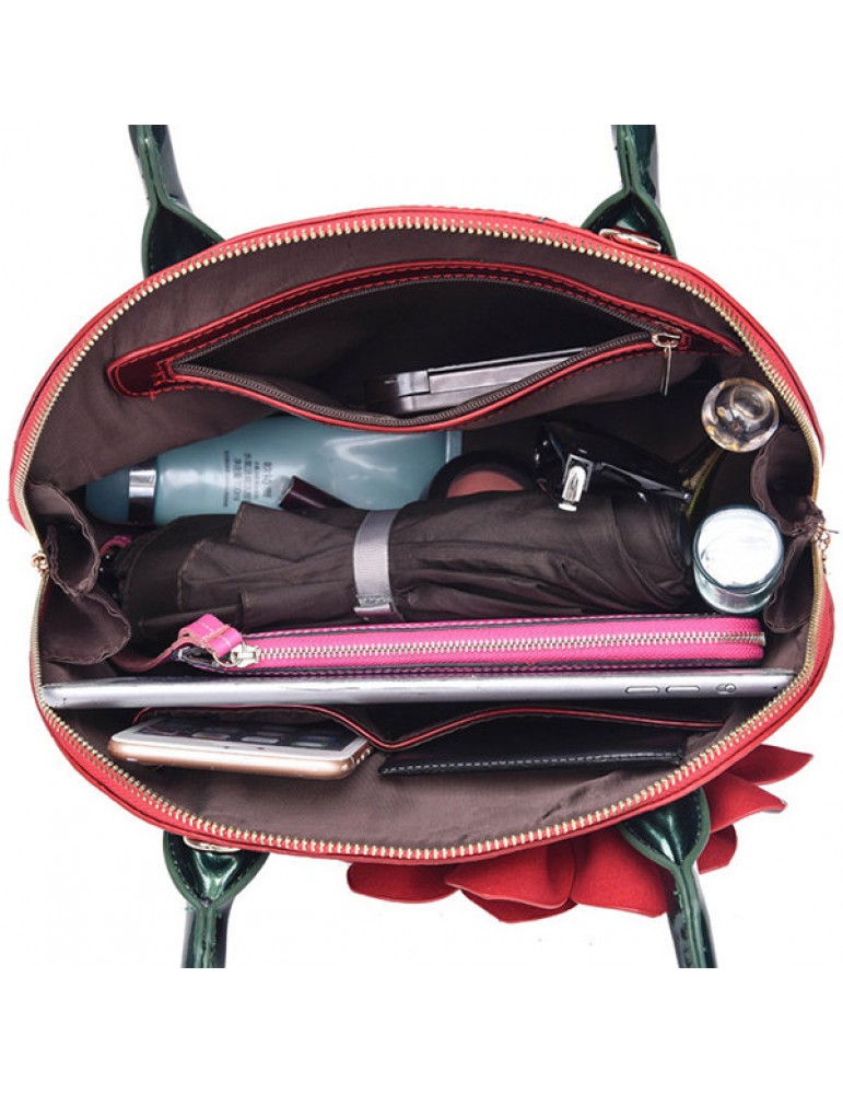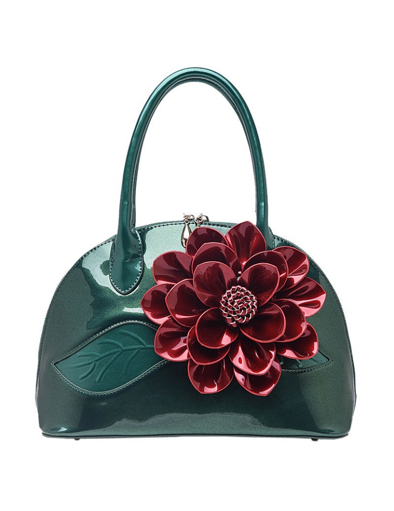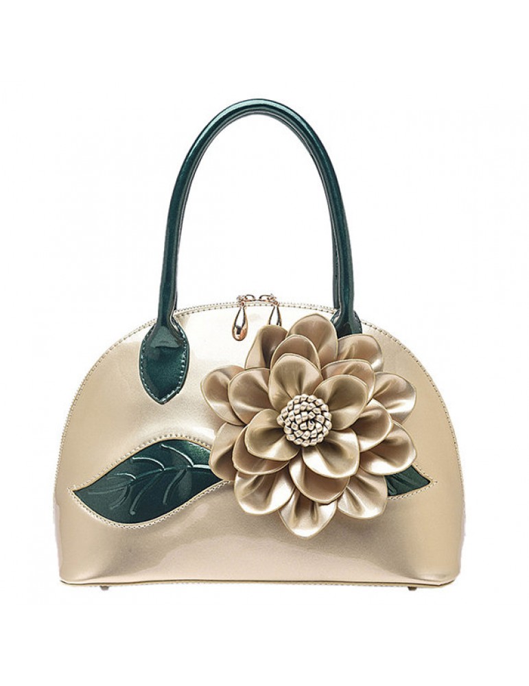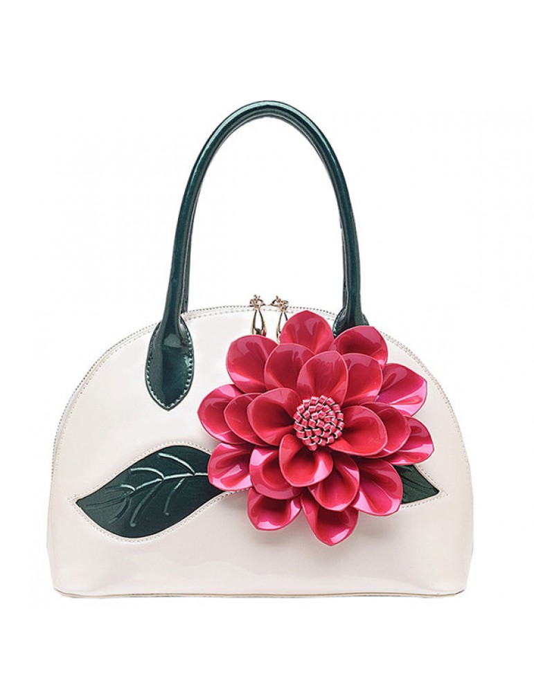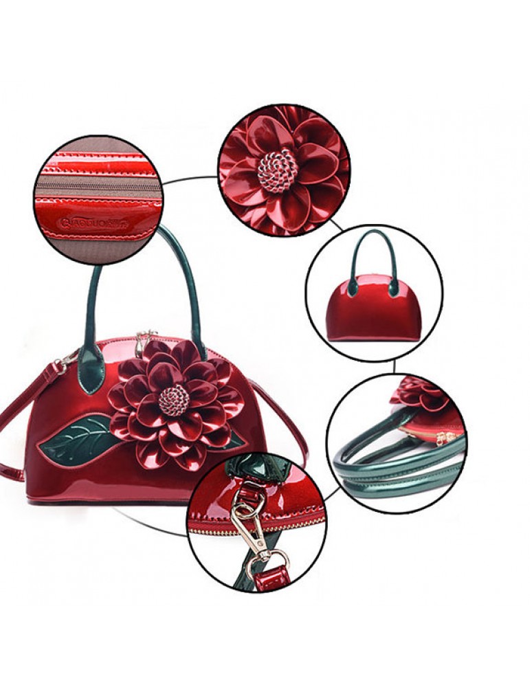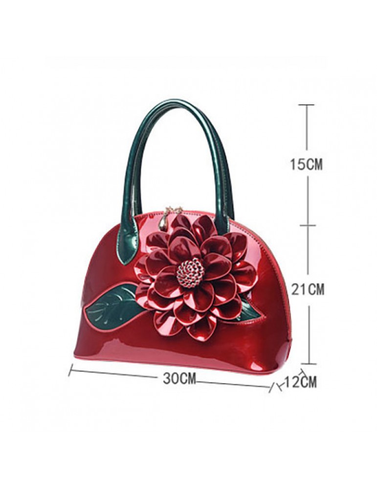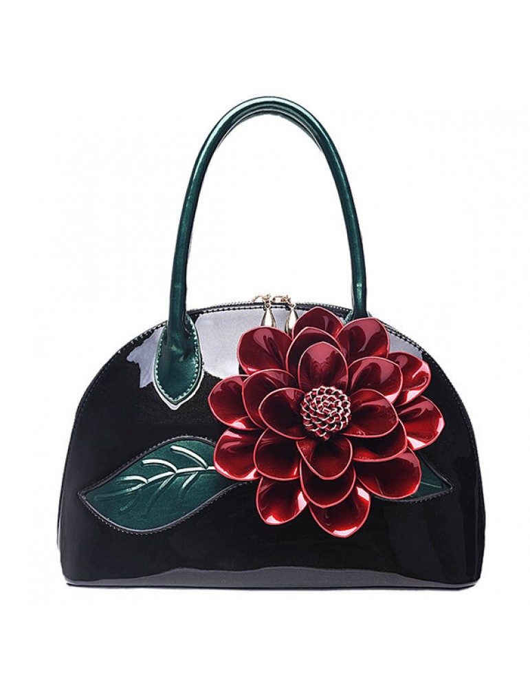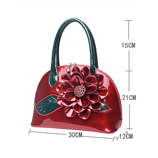 Brenice National Style Shell Bag Leather Rose Decoration Handbag For Women