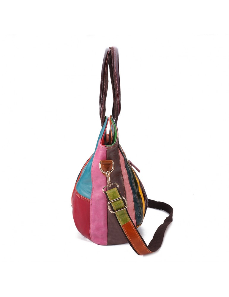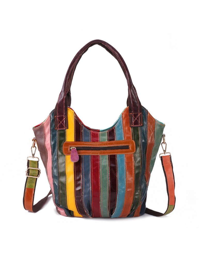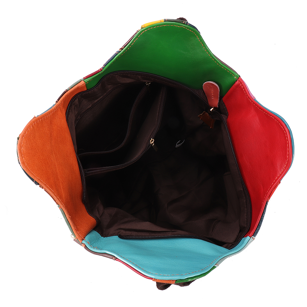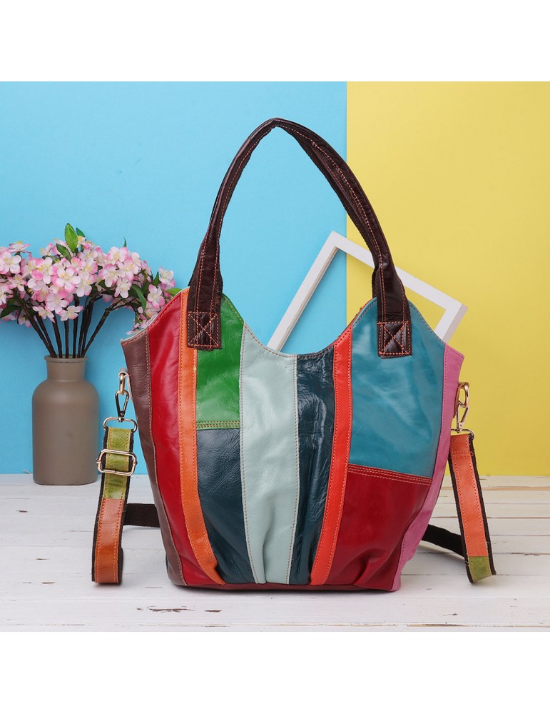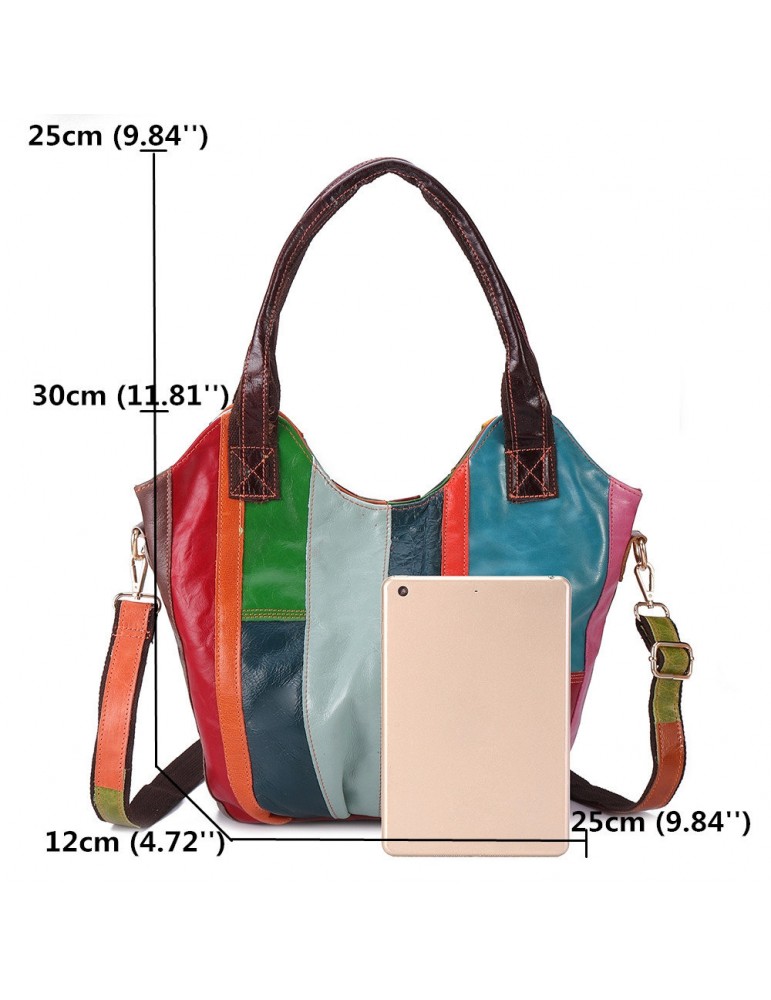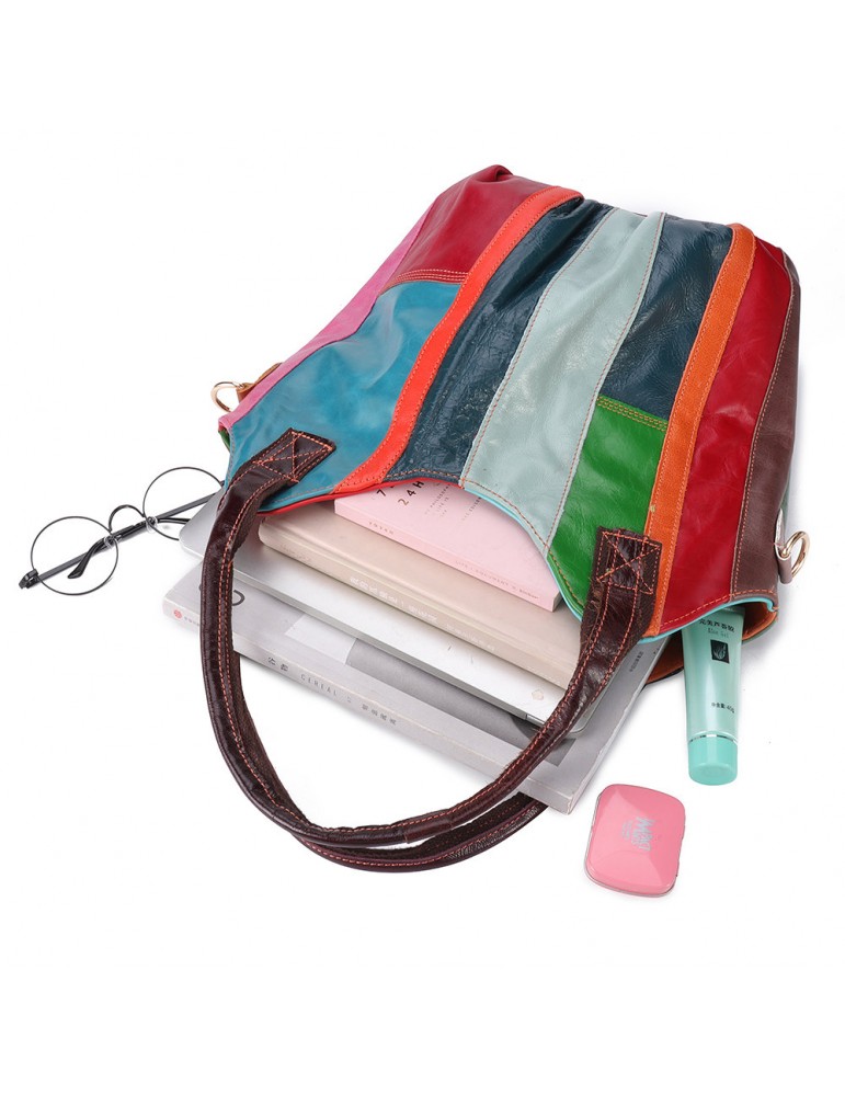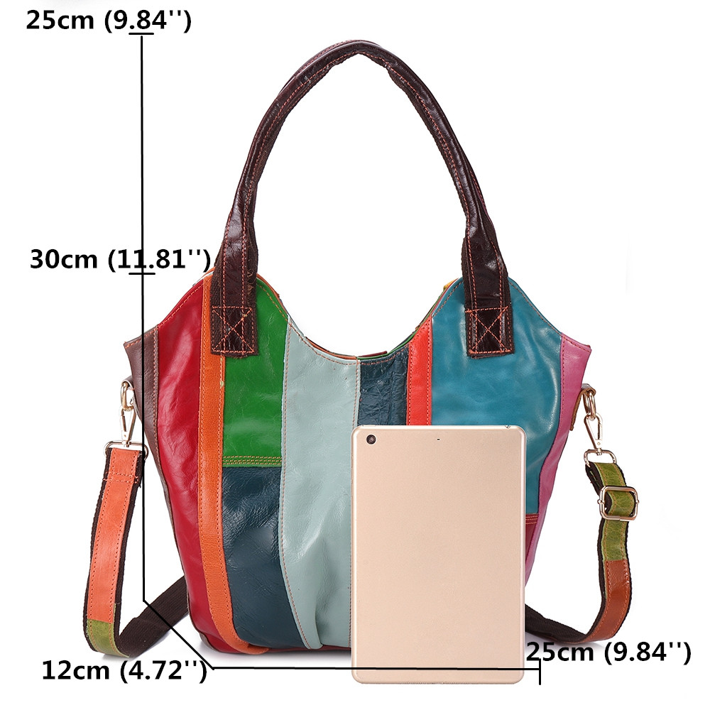 Women Oil Wax Genuine Leather Hobos Handbags Large Capacity Patchwork Bohemian Crossbody Bags