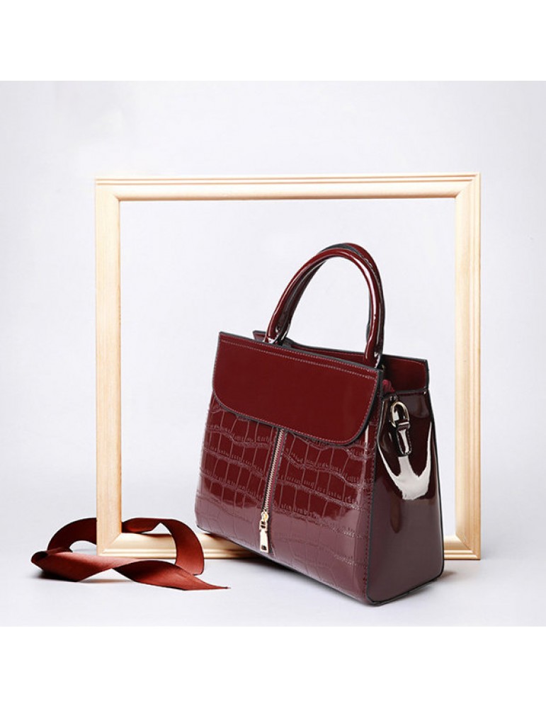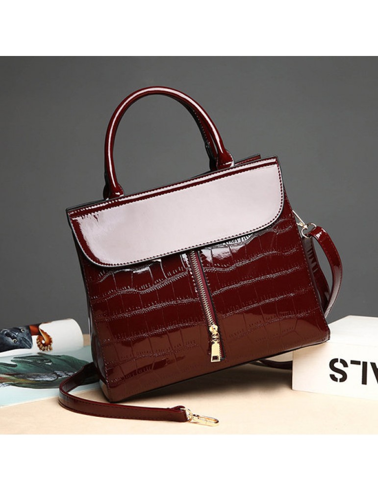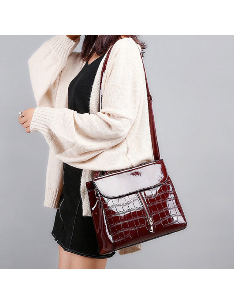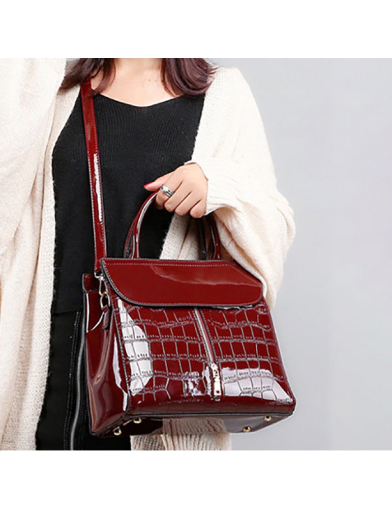 Crocodile Pattern Handbag Patent Leather Crossbody Bag Casual Shoulder Bag