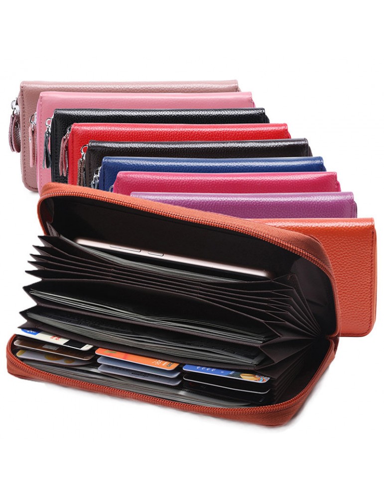RFID Women Leisure Genuine Leather 30 Card Slot Wallet Multi-function Phone Bags