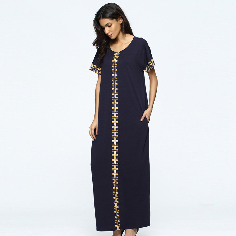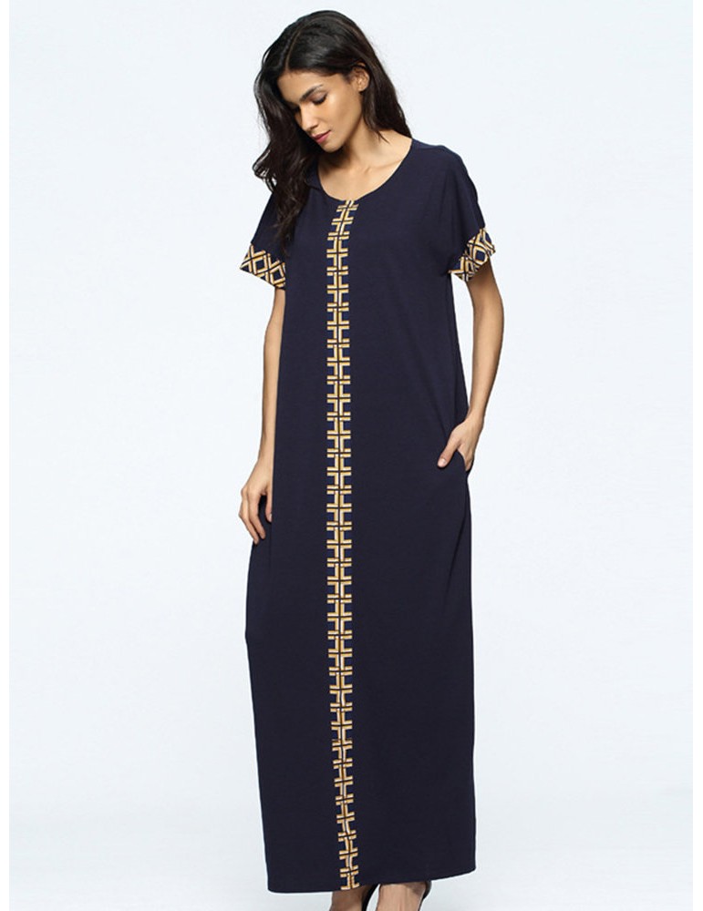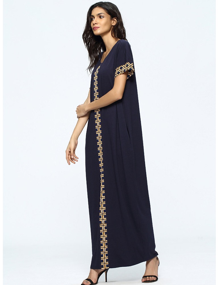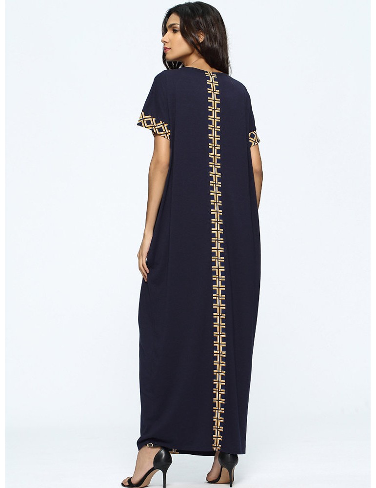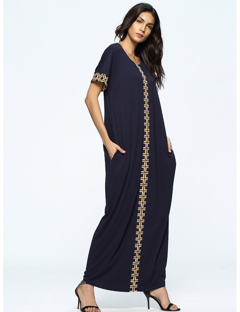 Print Loose Split Short Sleeve O-neck Maxi Dress For Women