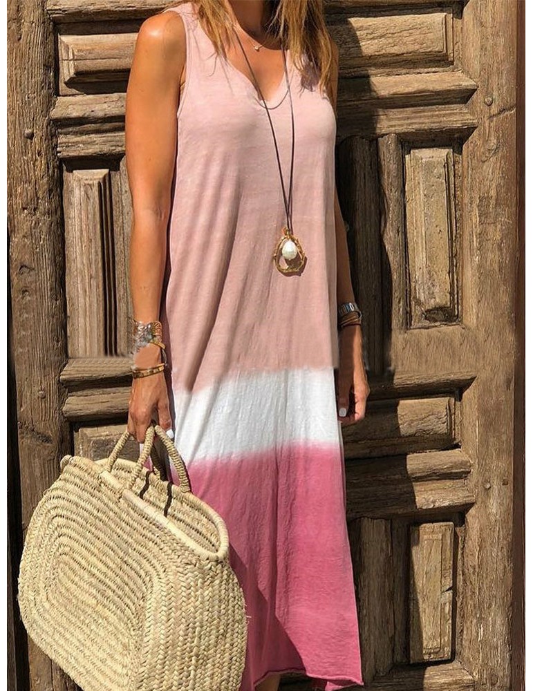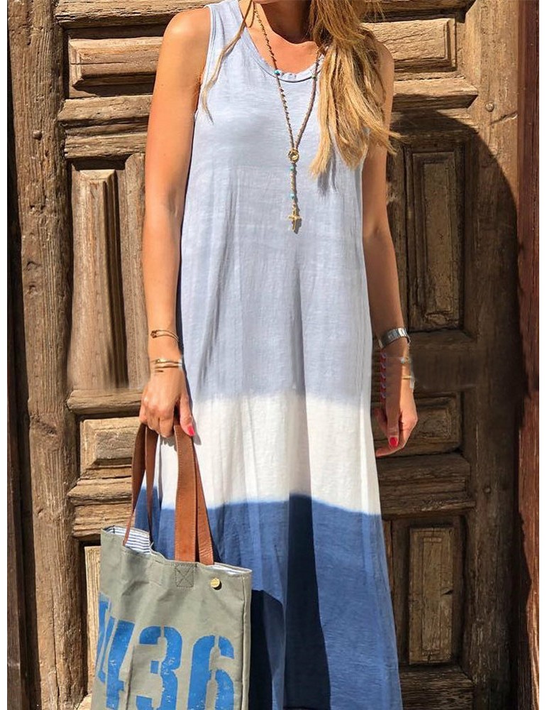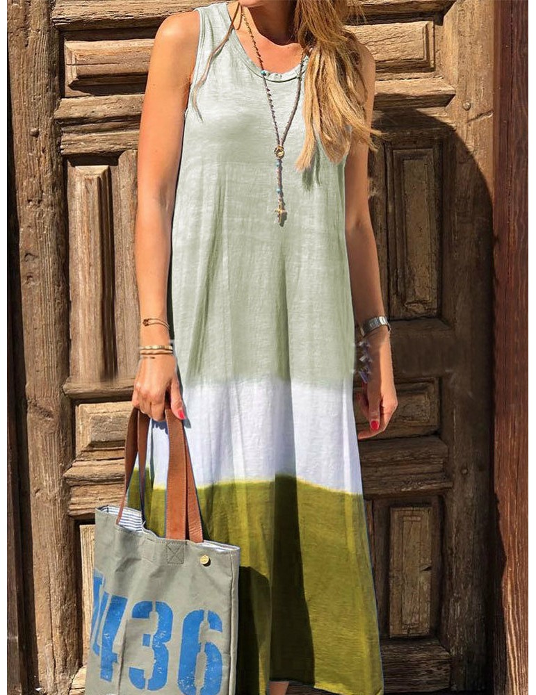 Bohemian Print Patch Sleeveless Maxi Dress