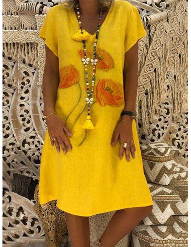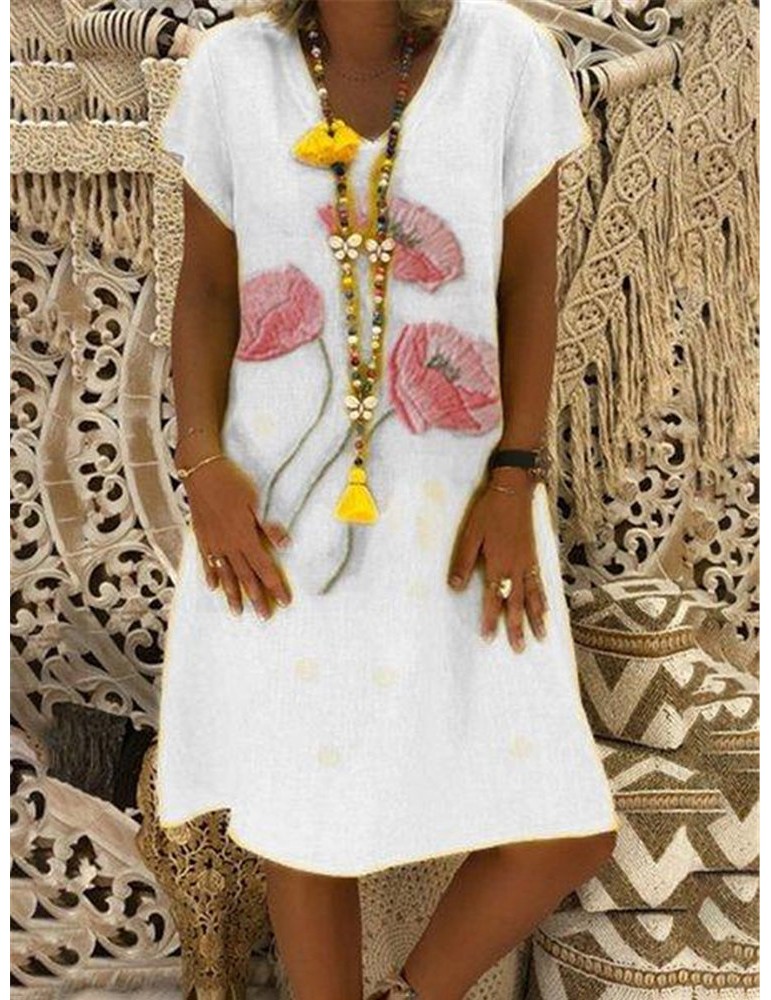 Print V-neck Short Sleeve Casual Mini Dress