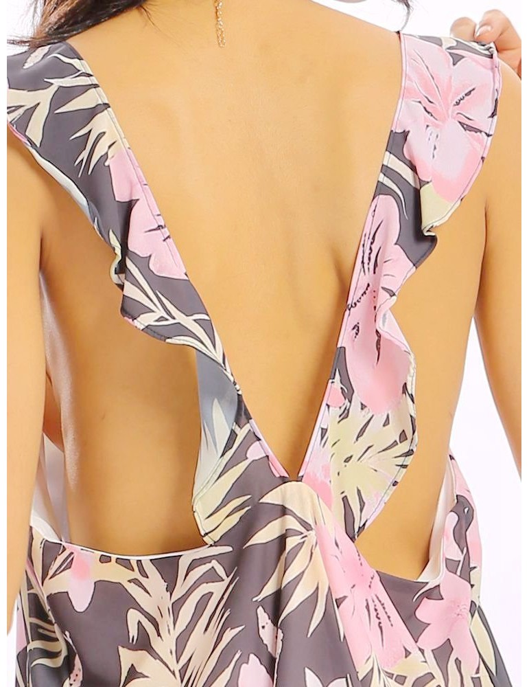 Women Sexy Floral Print Loose Backless Pleat Sleeveless Dress