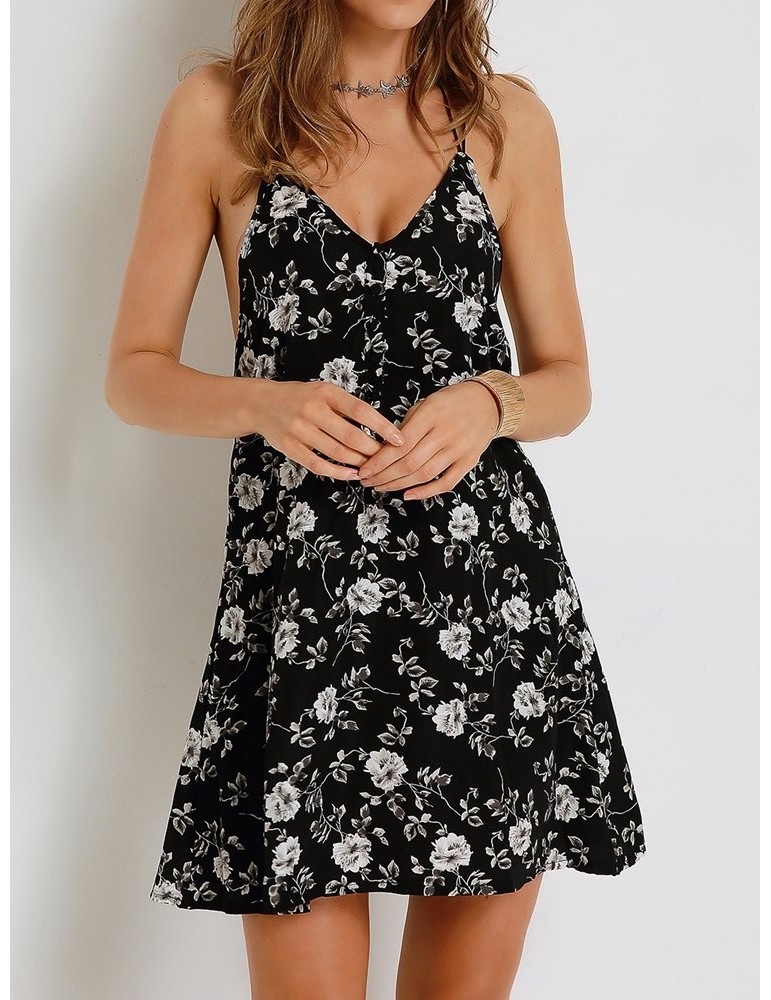 Sexy Floral Print Backless Cami V-neck Mini Dress For Women