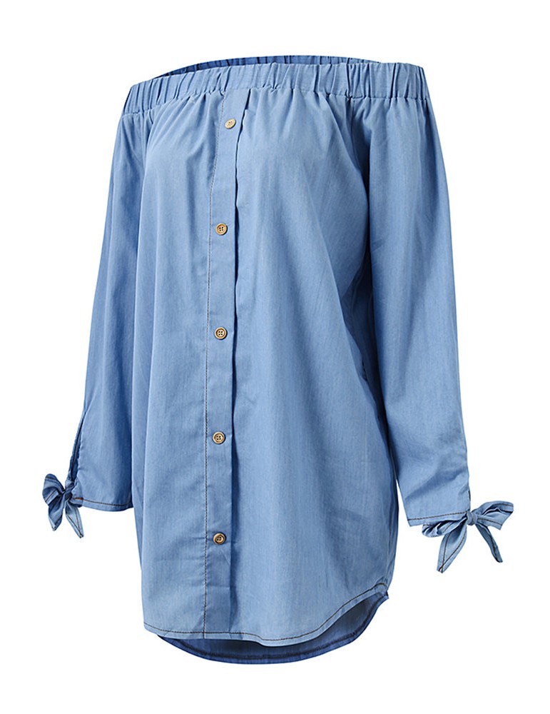 Women Sexy Off-shoulder Denim Long Sleeve Slash Neck Mini Dress