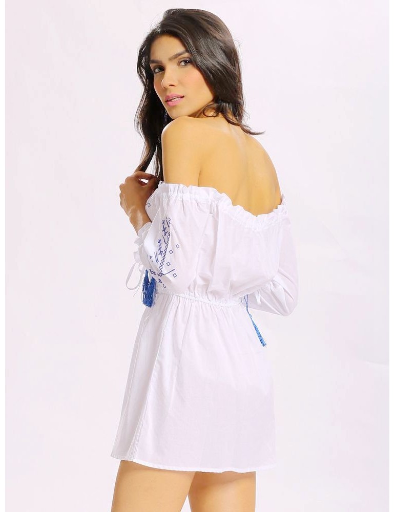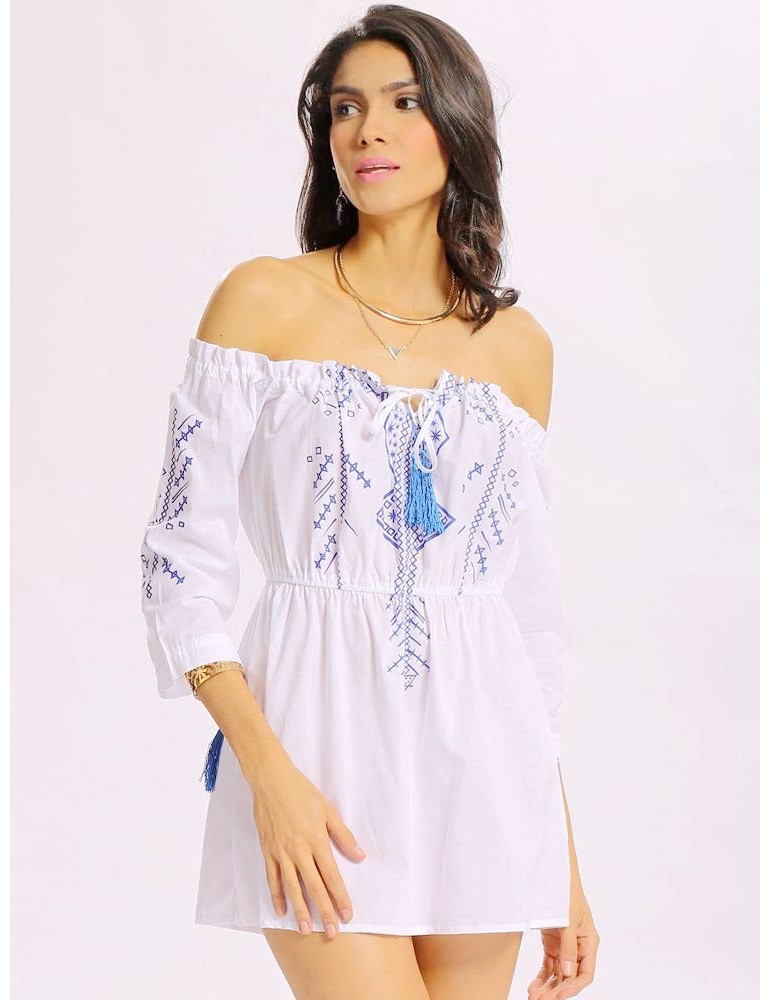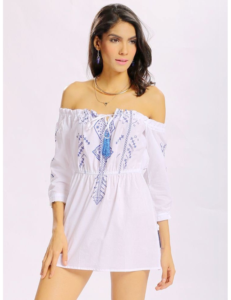 Women Off-Shoulder Geometrical Print Backless Half Sleeve Mini Dress