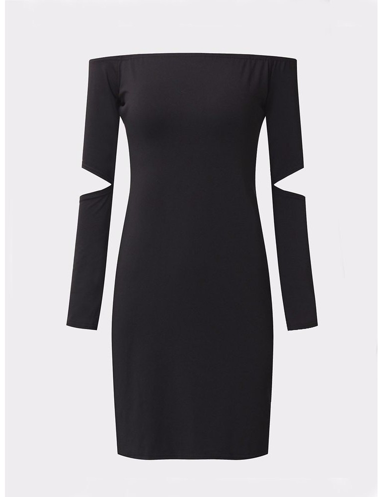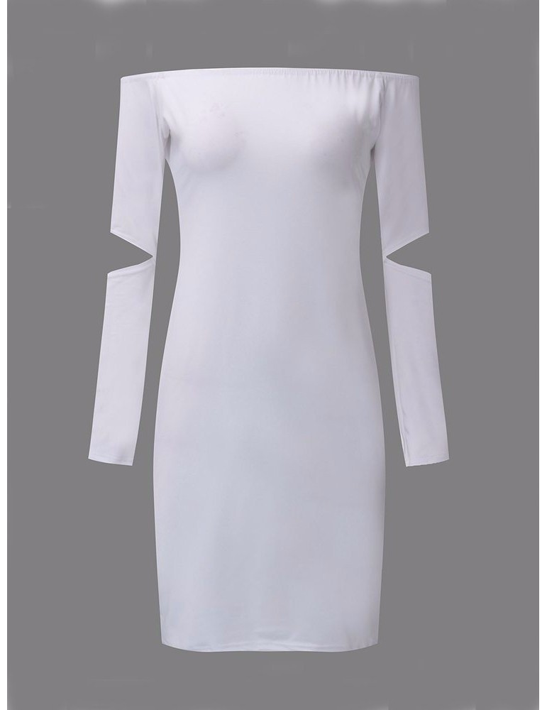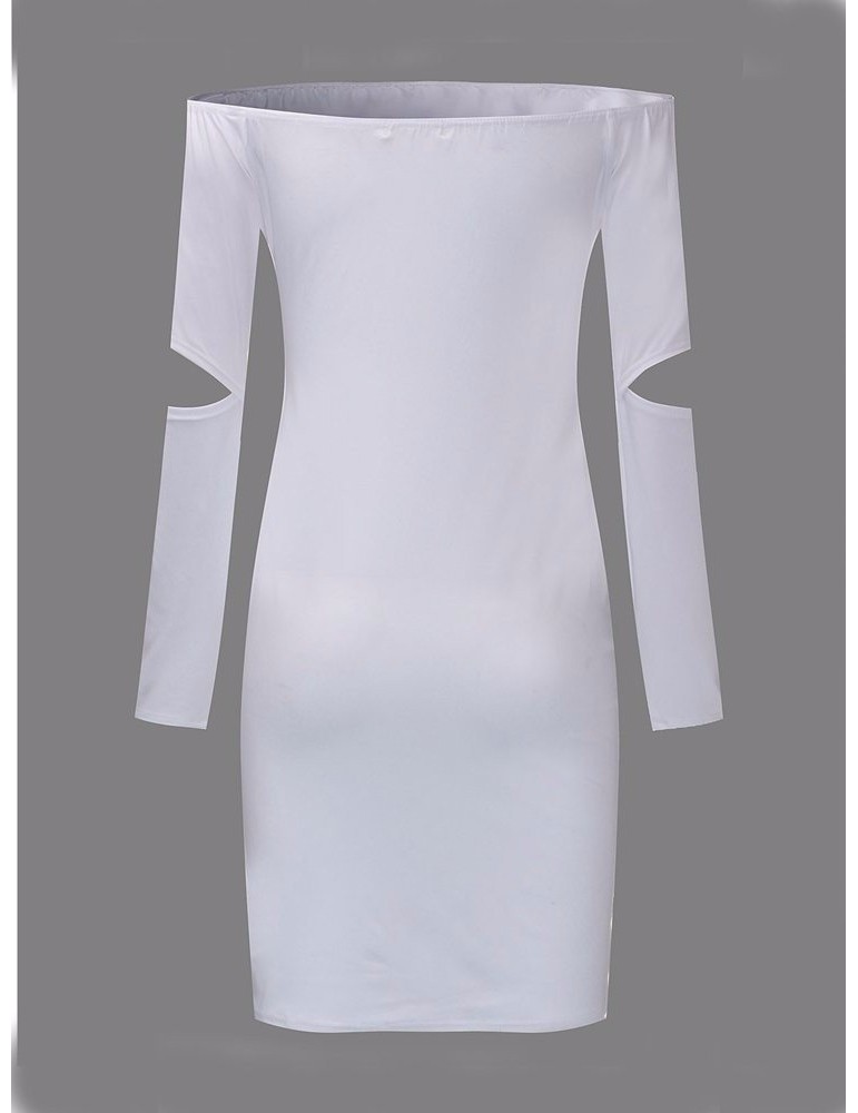 Women Sexy Off-shoulder Hollow Long Sleeve Mini Dress