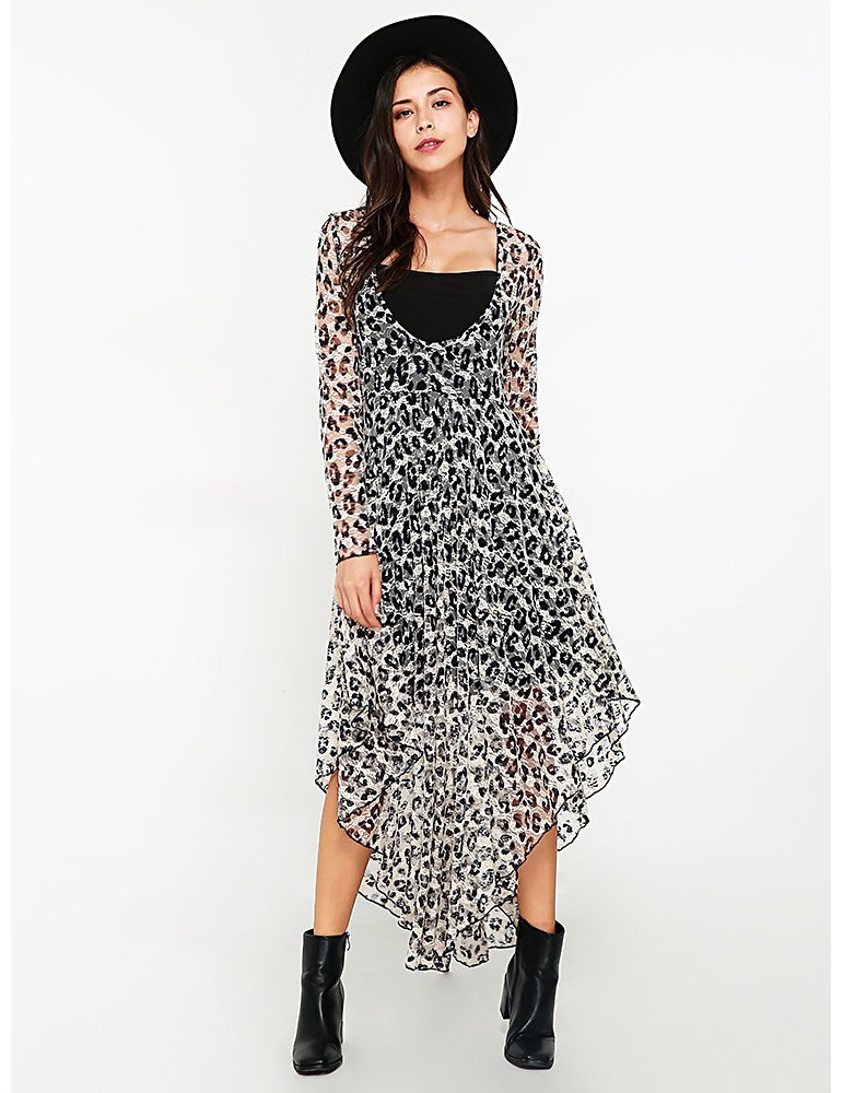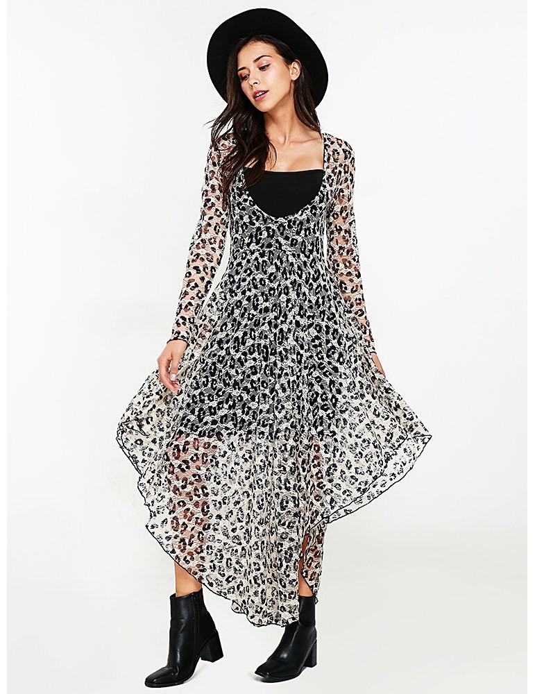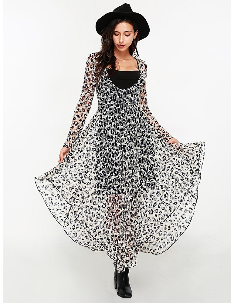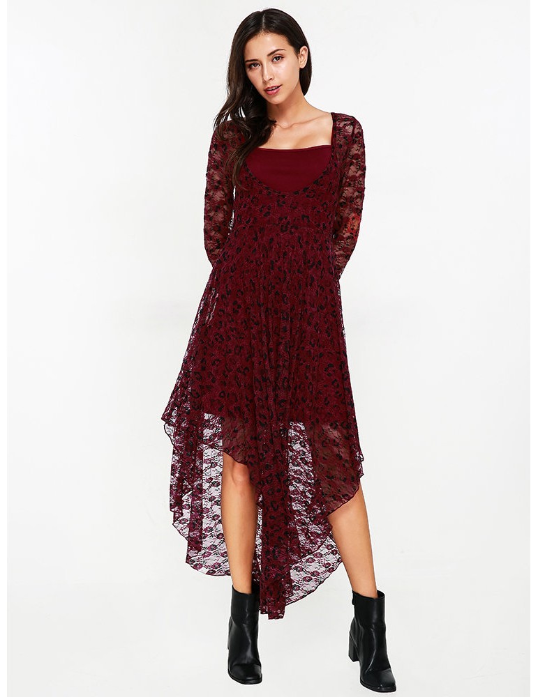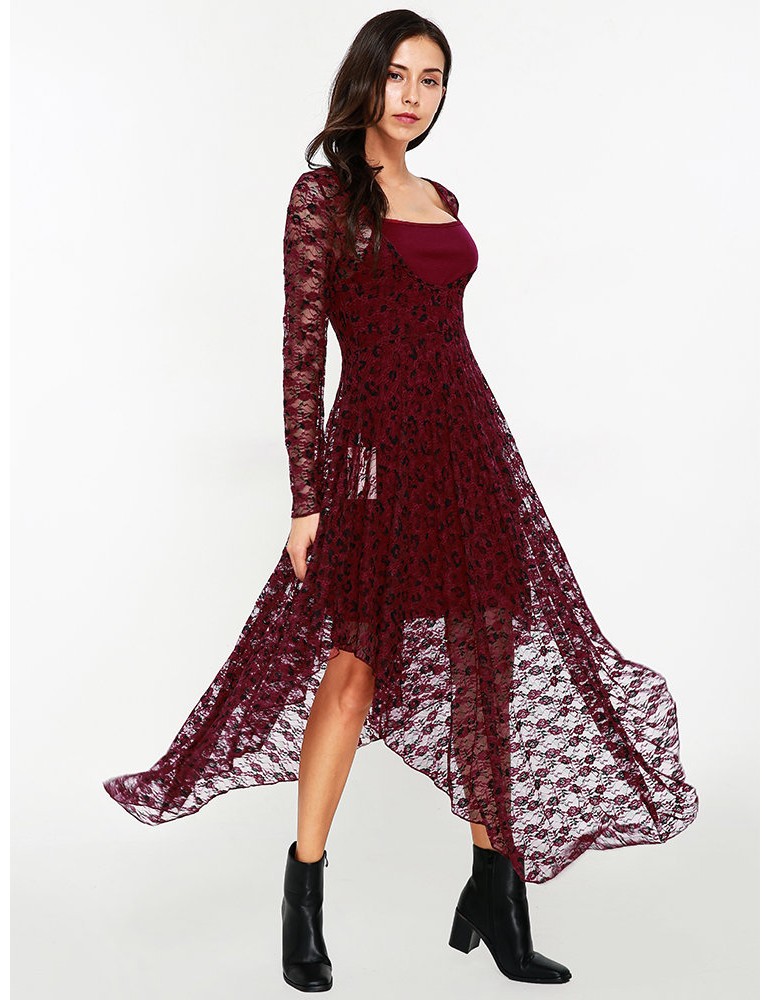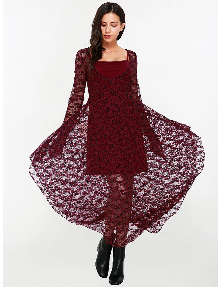 Lace Sexy Women Long Sleeve O-Neck Two Pieces Set Maxi Dresses
