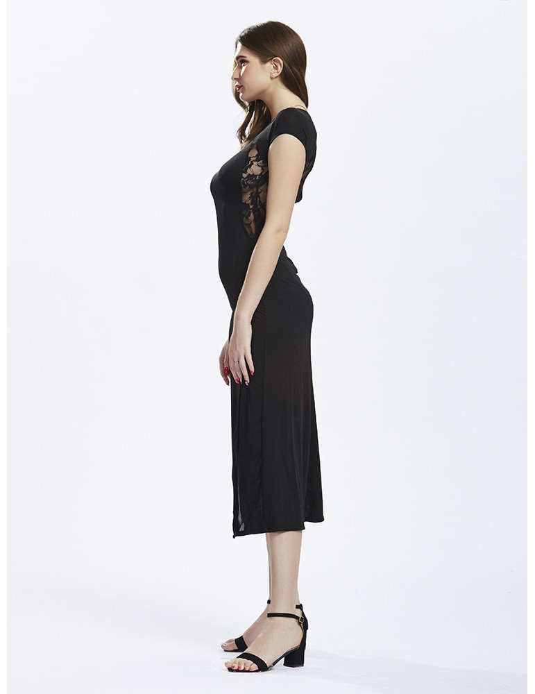 Lace Insert Spliced Side Split Sexy Women Party Dress