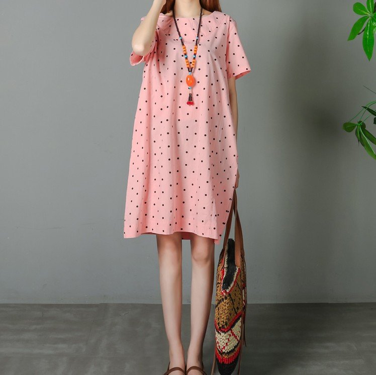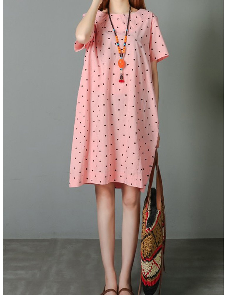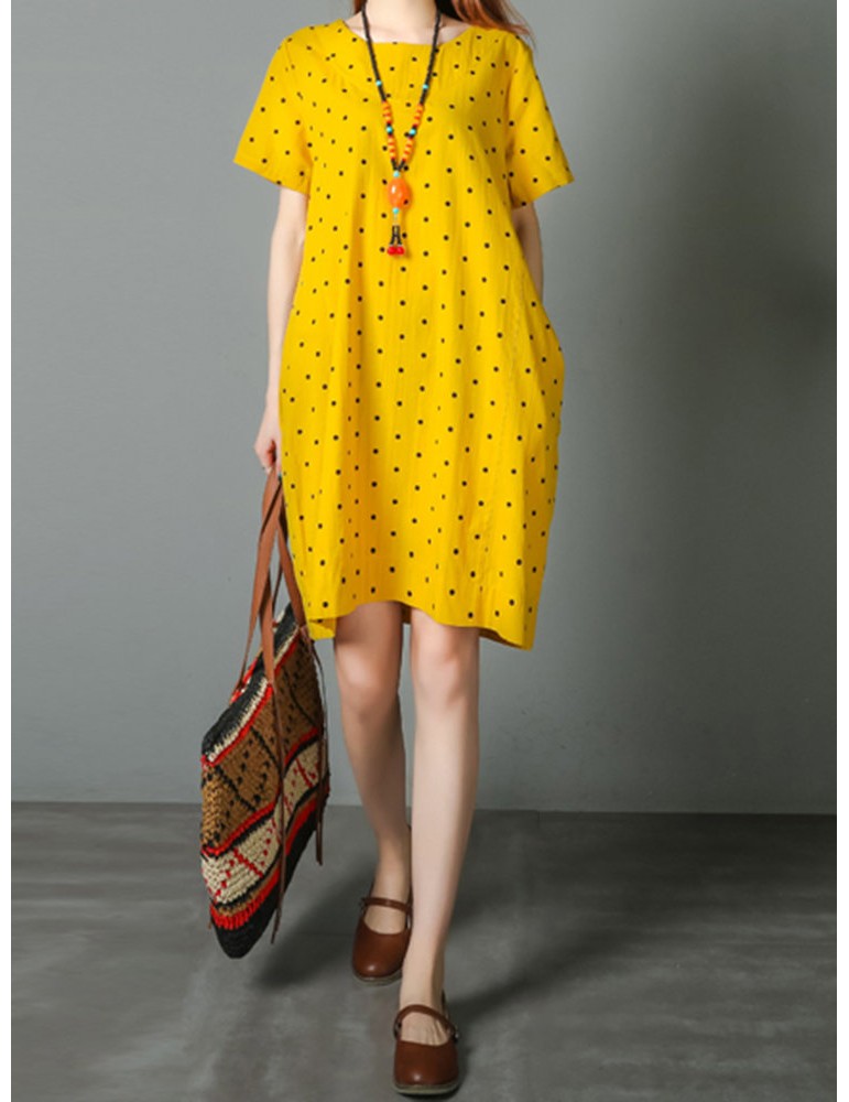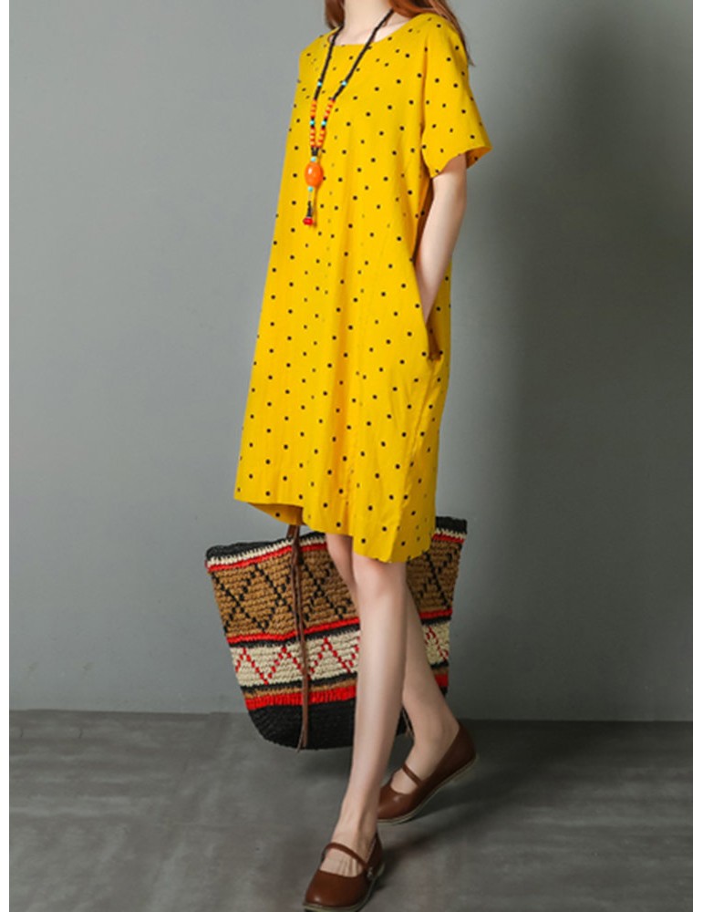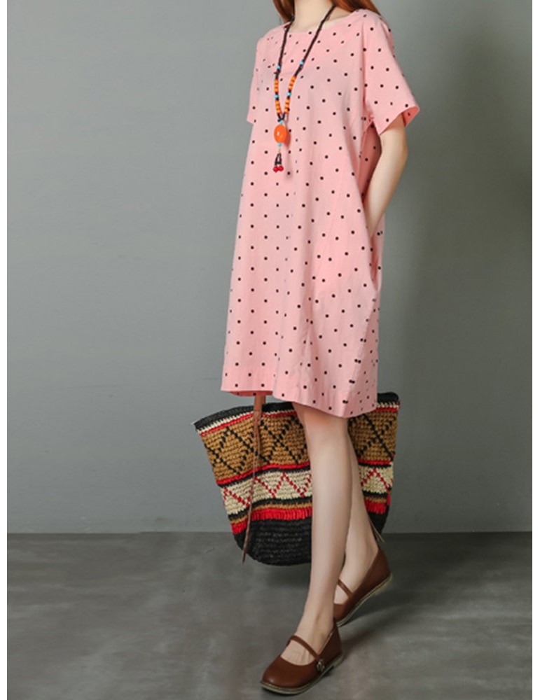 Loose Polka Dot Print Pockets Short Sleeve Vintage Dresses