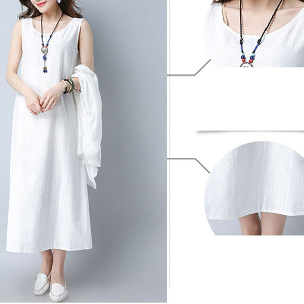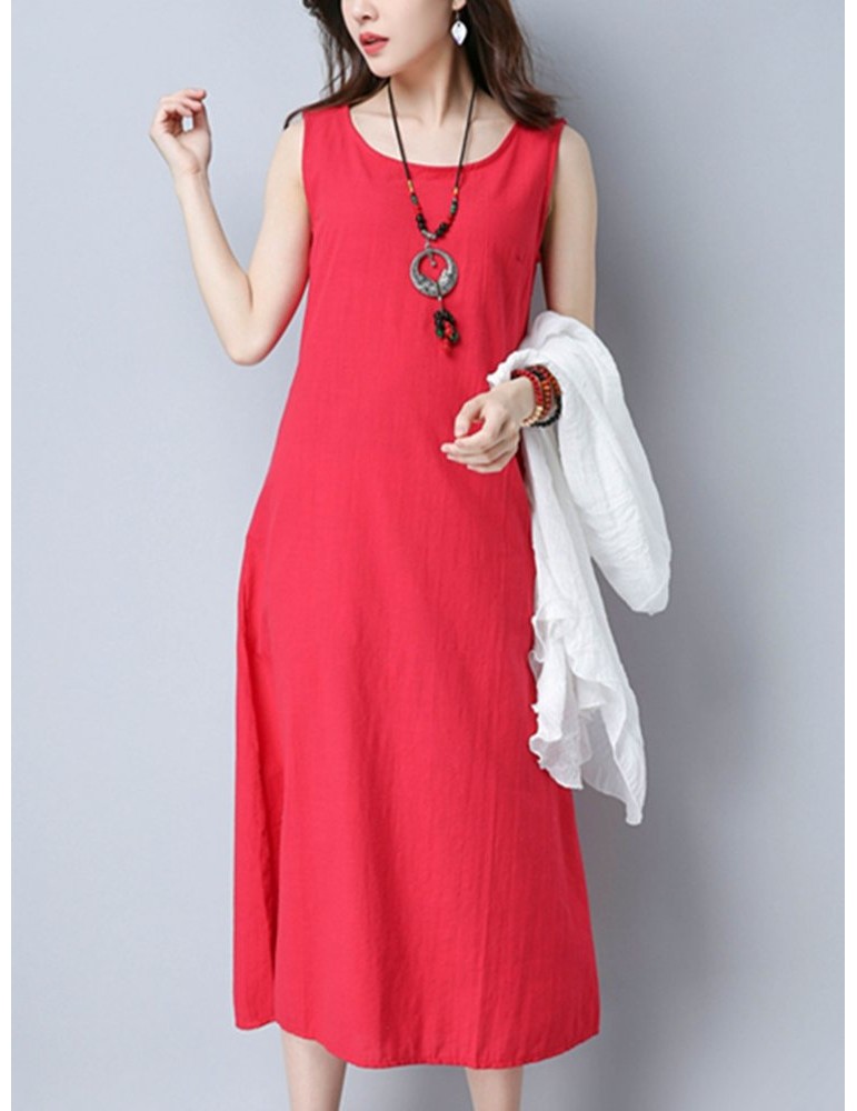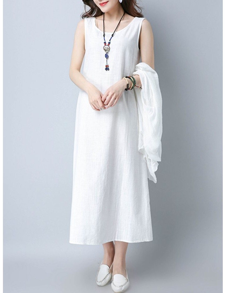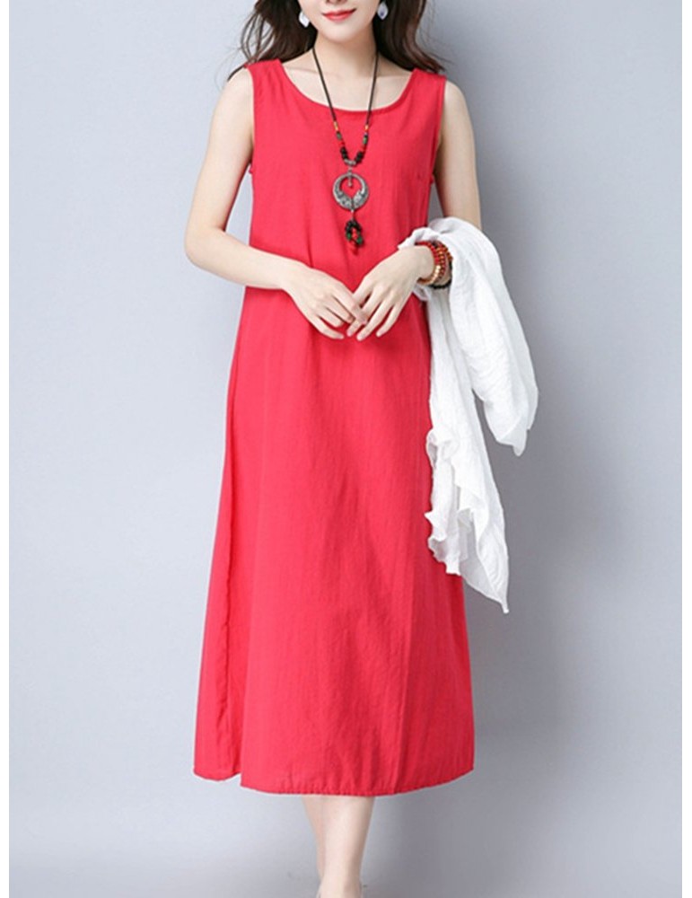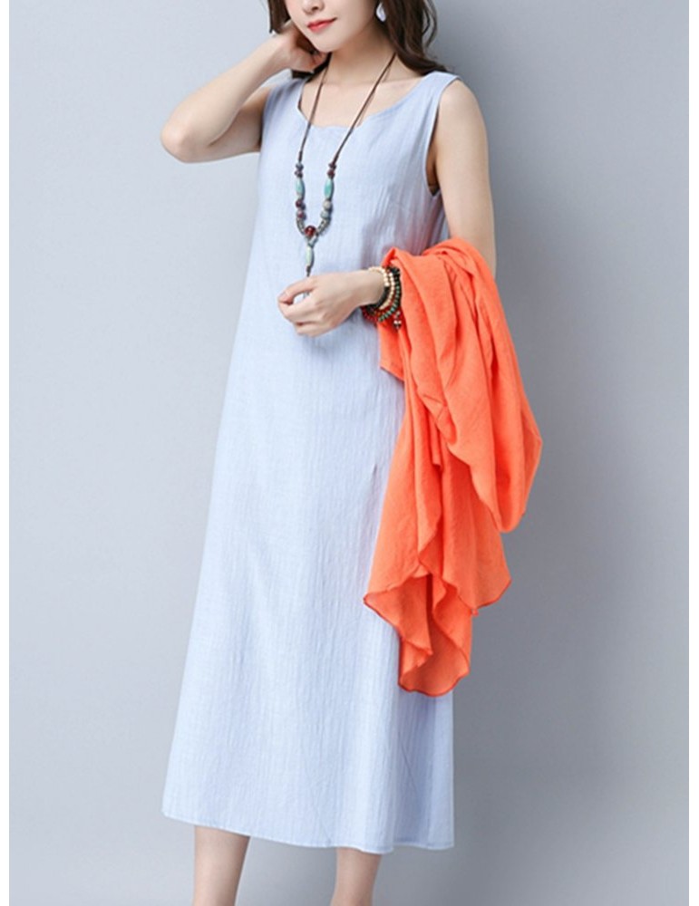 Casual Cross Strap Backless Loose Sleeveless O-neck Dress For Women