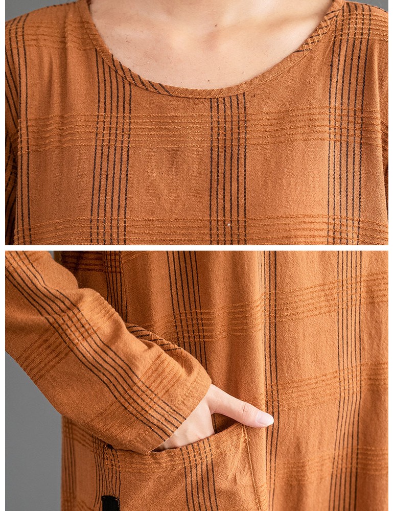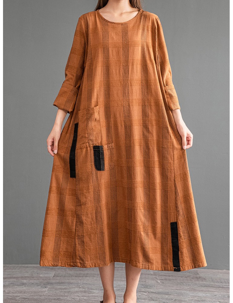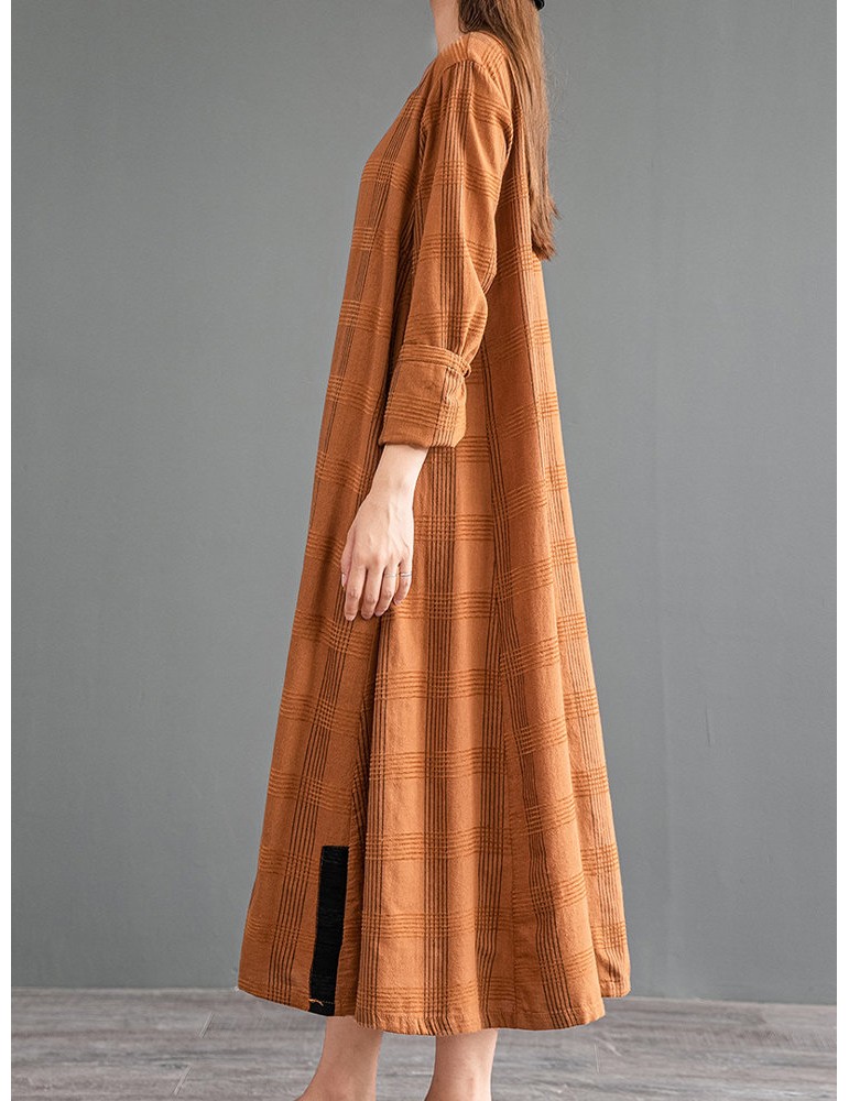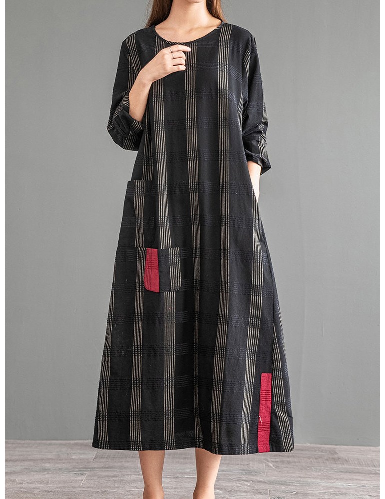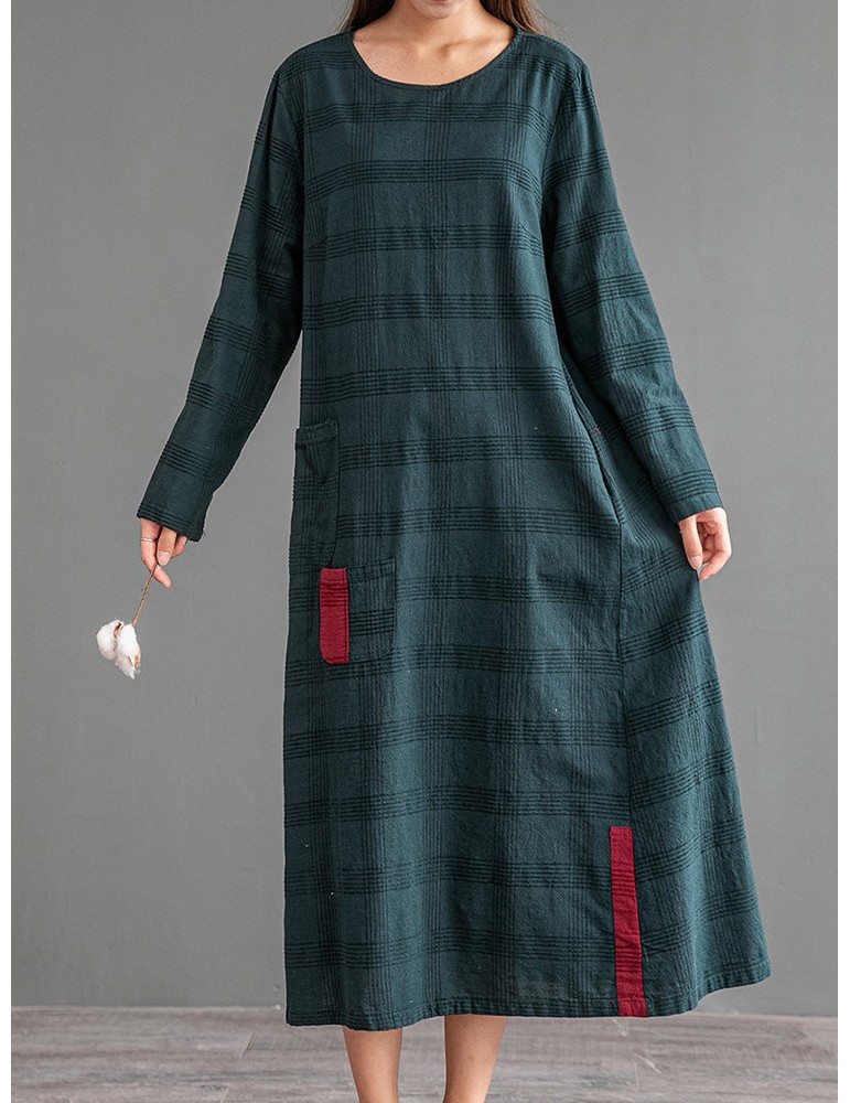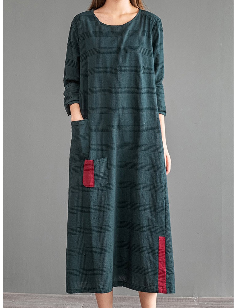 Vintage Patch Pocket Long Sleeve Dress For Women