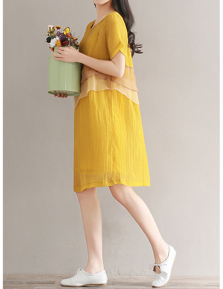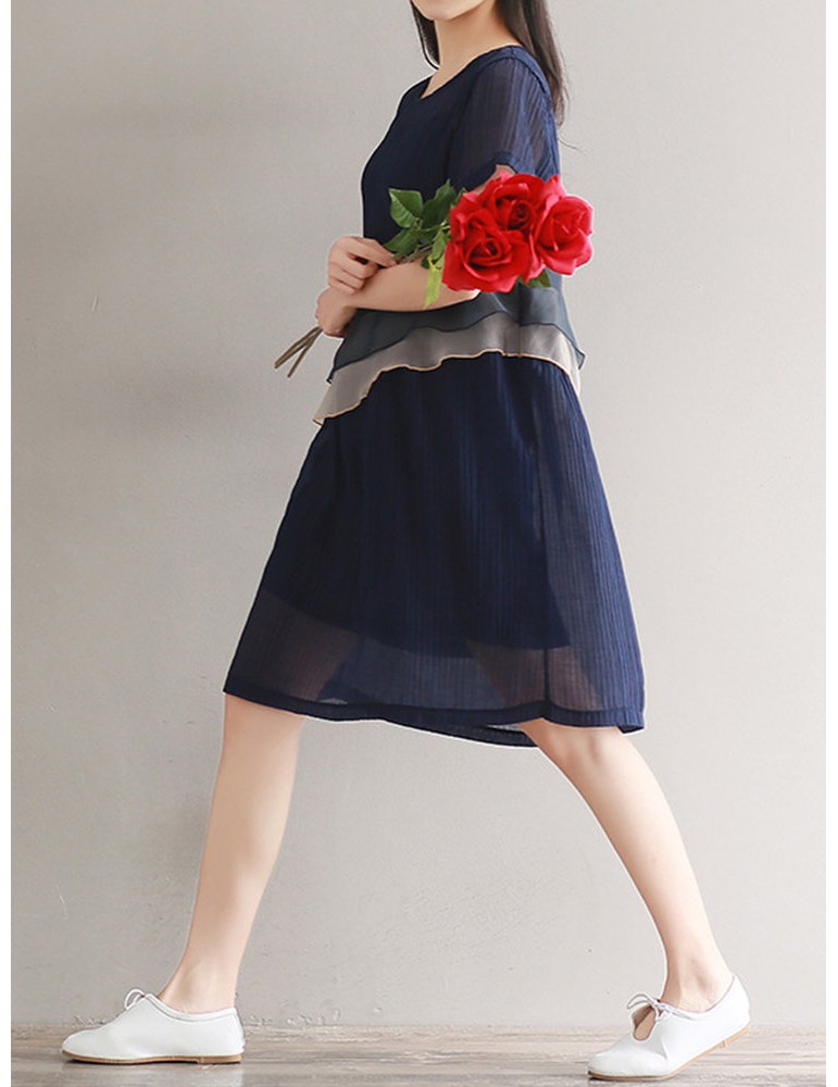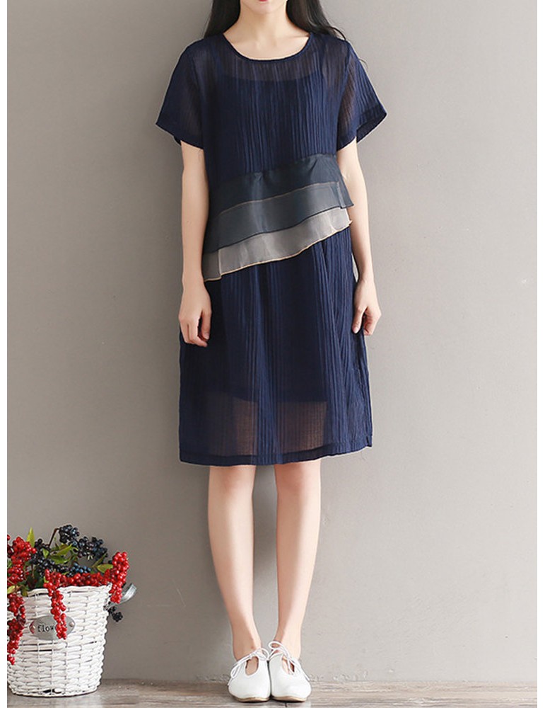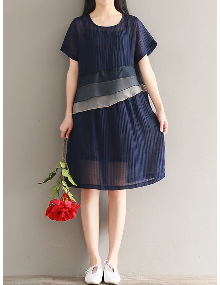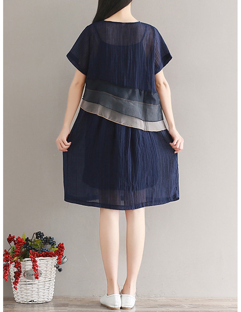 Women Vintage Short Sleeve Patchwork O-neck Dresses