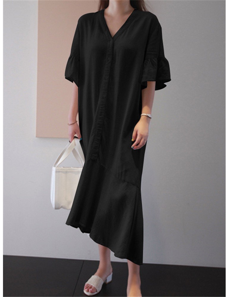 Vintage Summer Party Evening Beach Kaftan Ruffle Dress