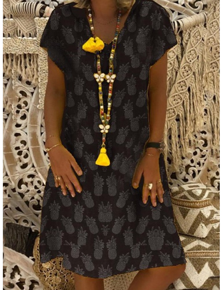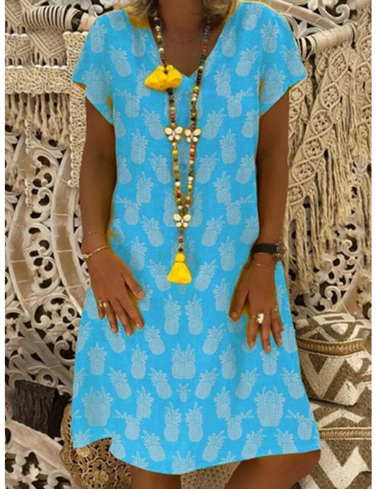 Pineapple Print Short Sleeve V-neck Casual Dress For Women