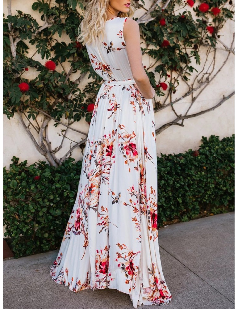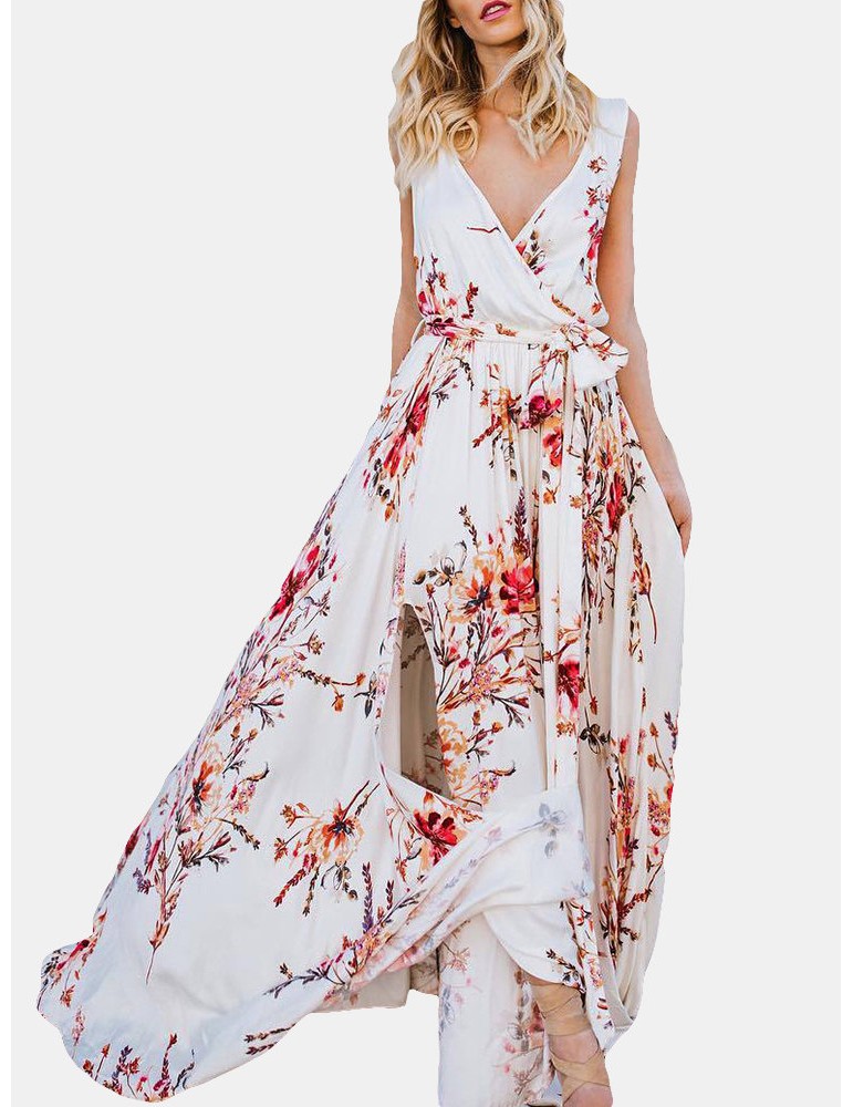 Floral Print Cross Wrap Sleeveless Maxi Dress For Women