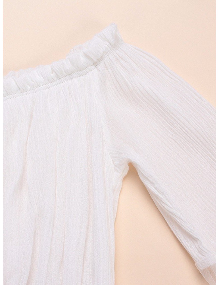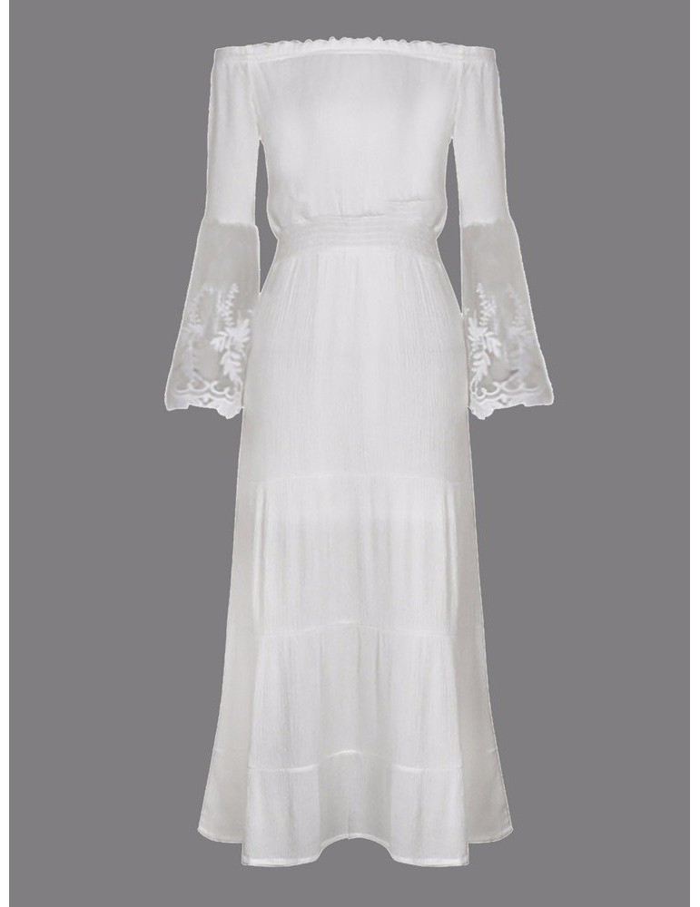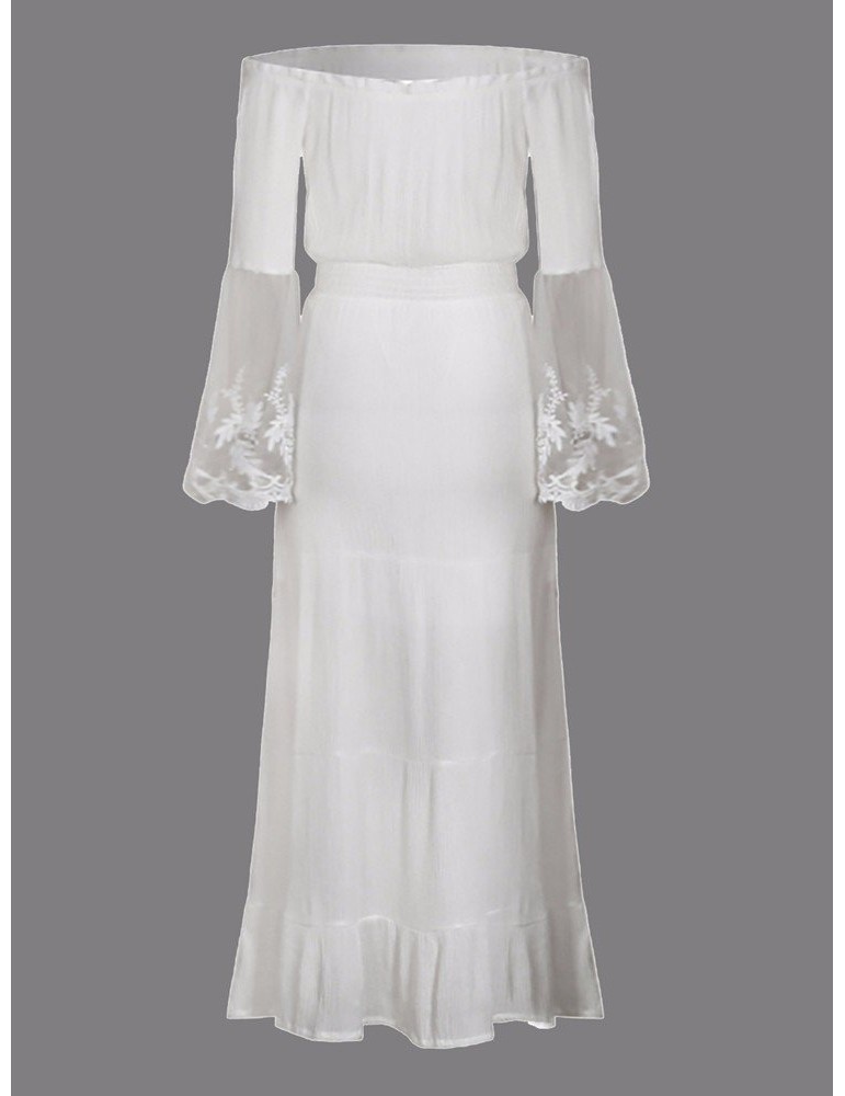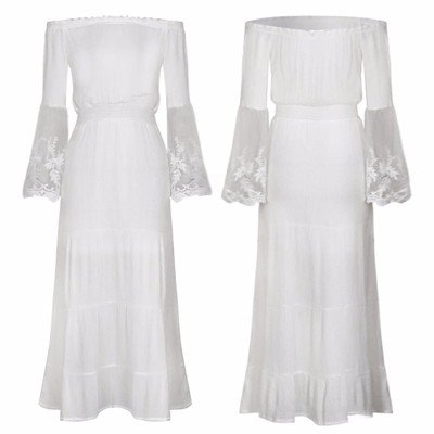 Women Off-shoulder Lace Stitching Long Horn Sleeve Maxi Dress