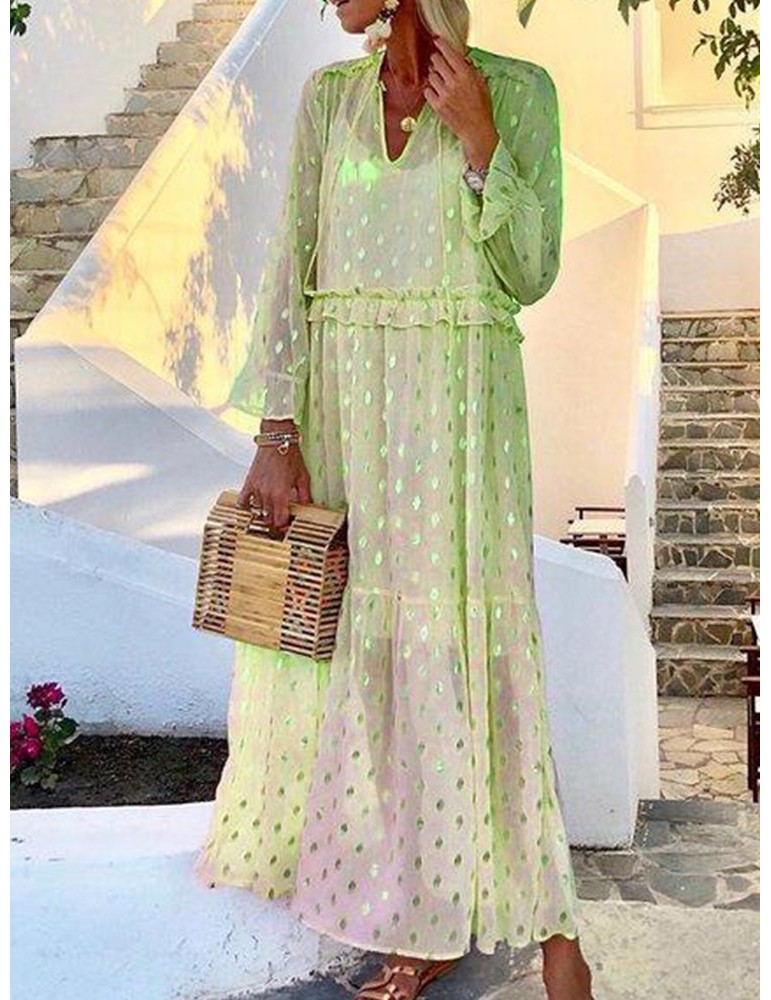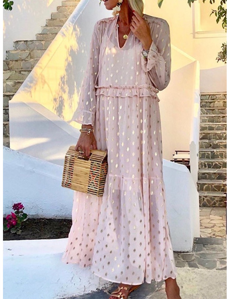 Casual V-neck Polka Dots Long Sleeve Two Piece Dress