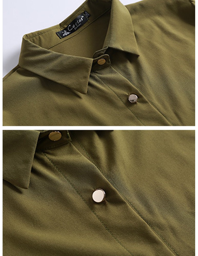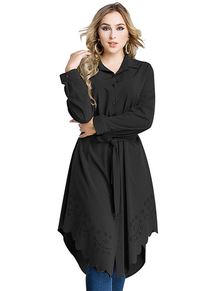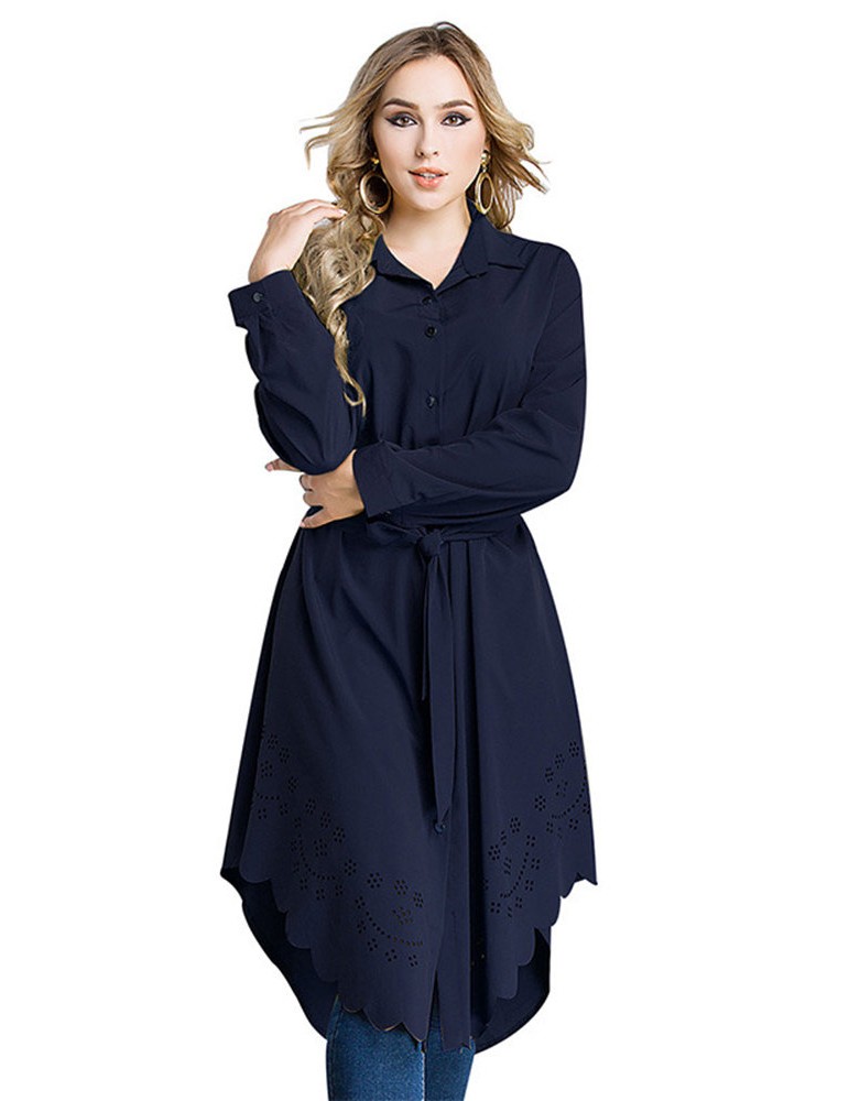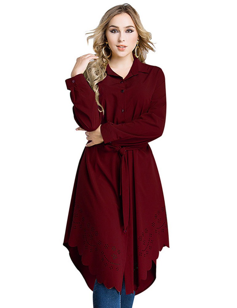 Long Sleeve Pure Color Buttons Shirt Dresses For Women