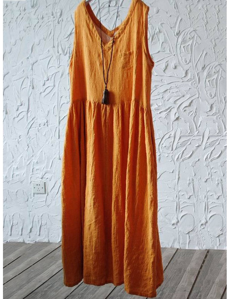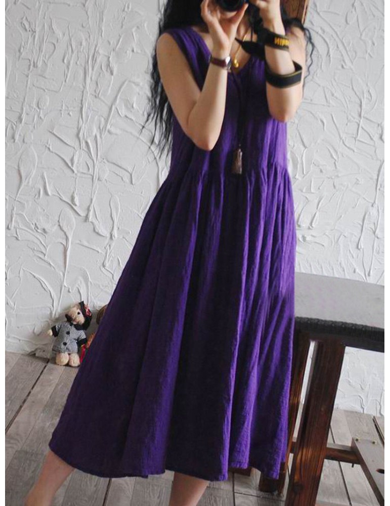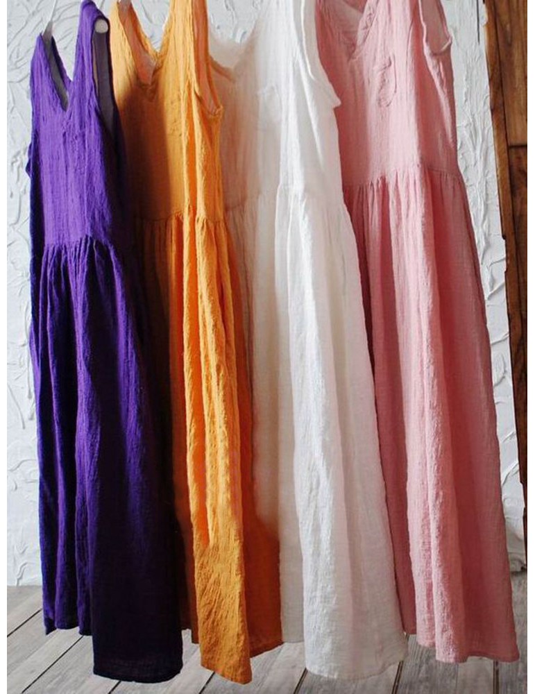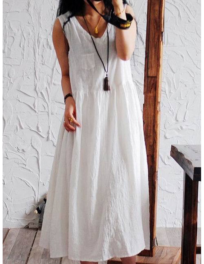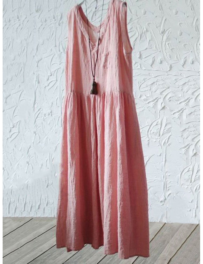 Casual Loose Women Solid Color Sleeveless Dresses