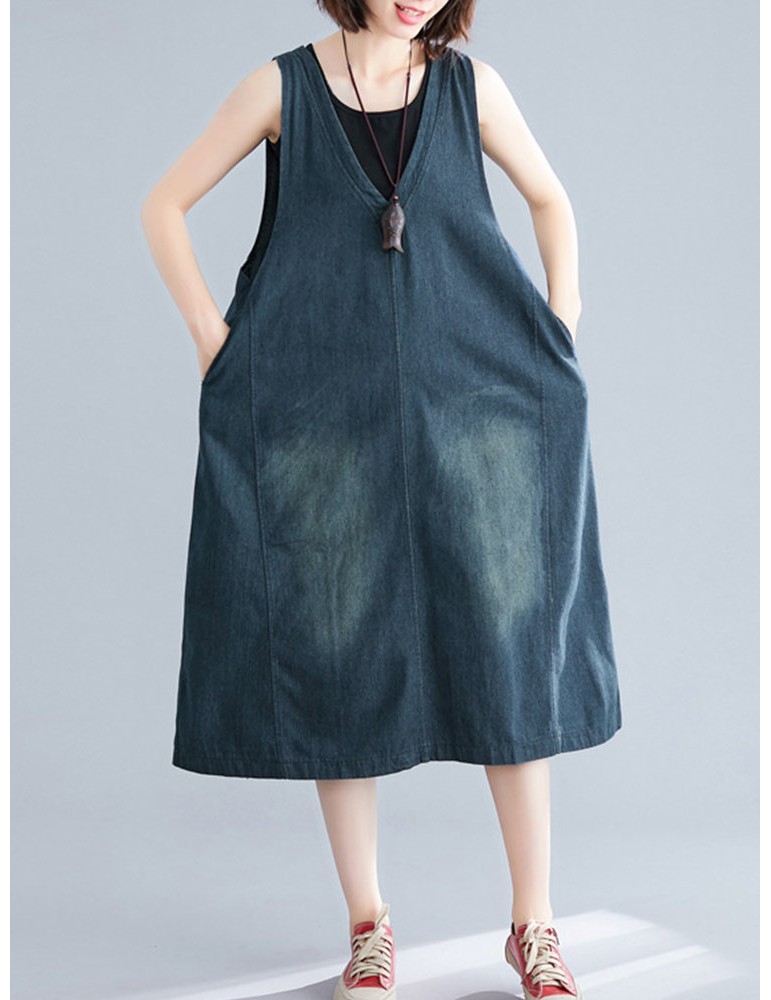 Casual V-neck Sleeveless Denim Overall Dress