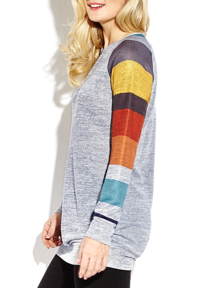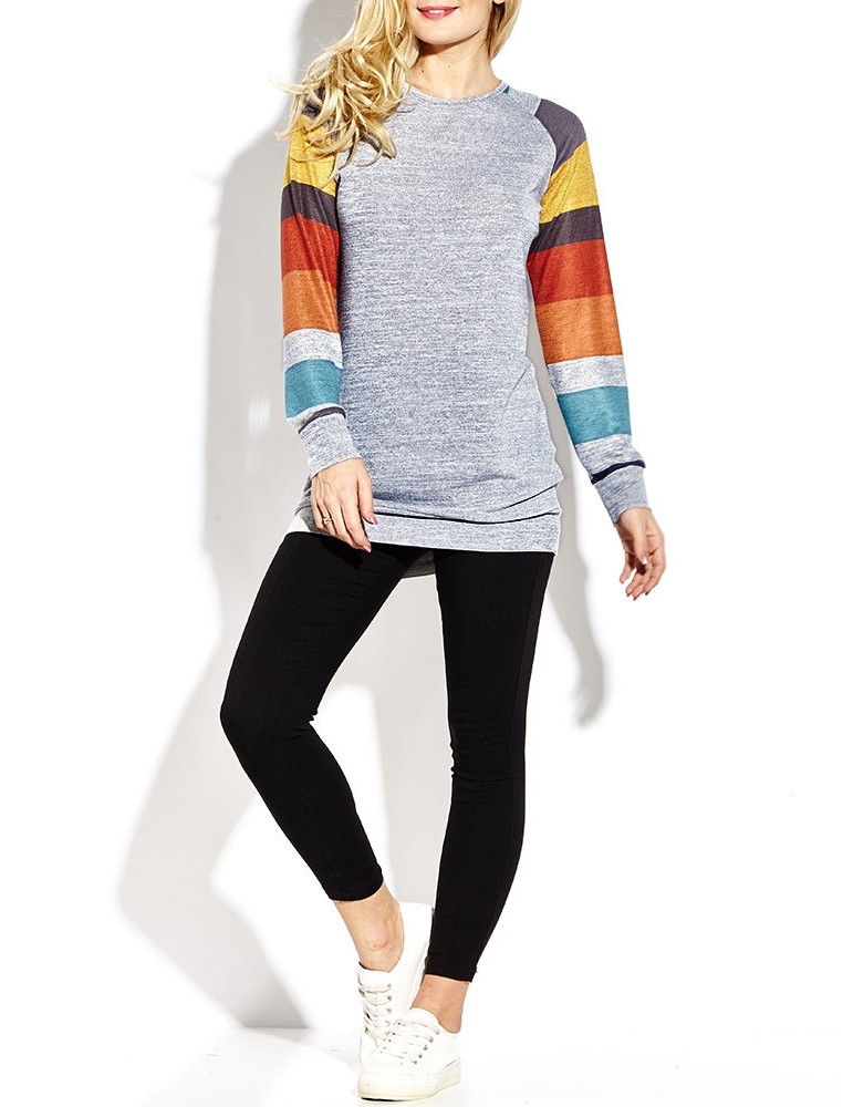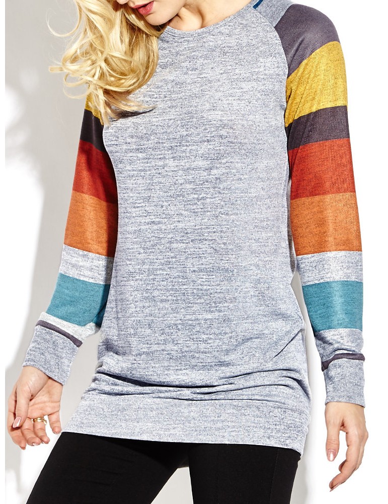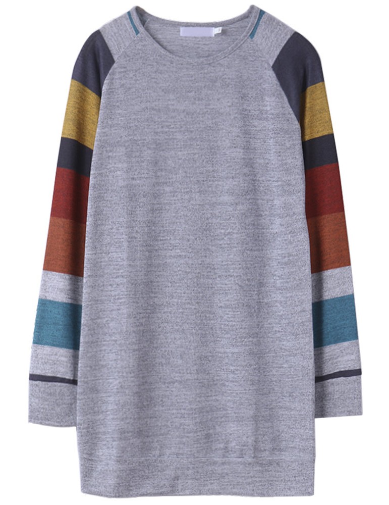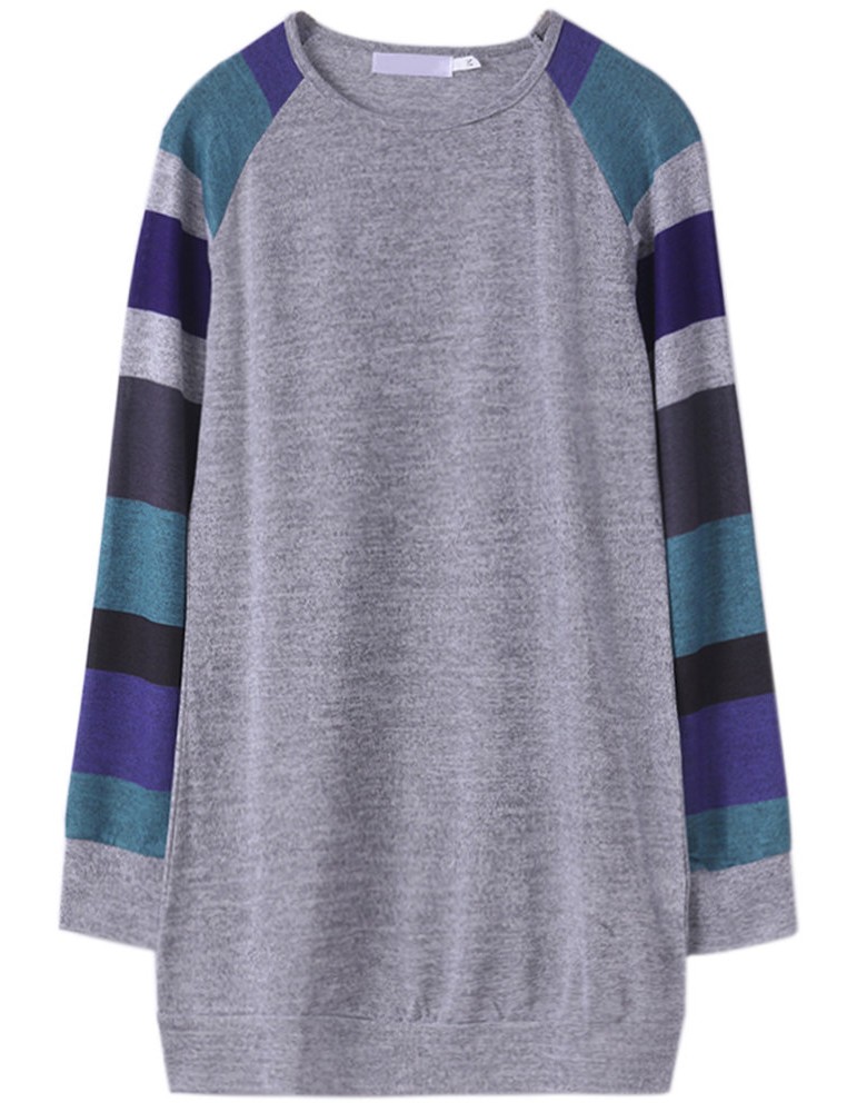 Women Casual Stripe Stitching Long Sleeve O-neck Mini Dress