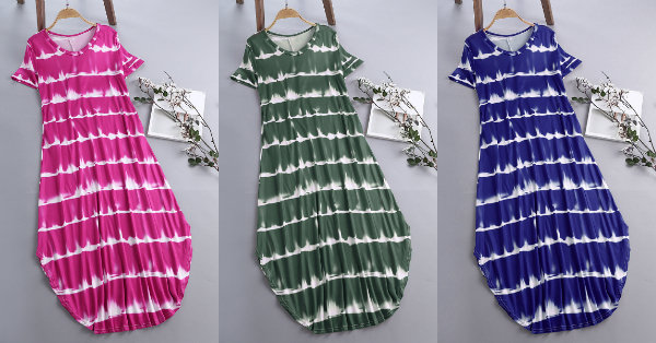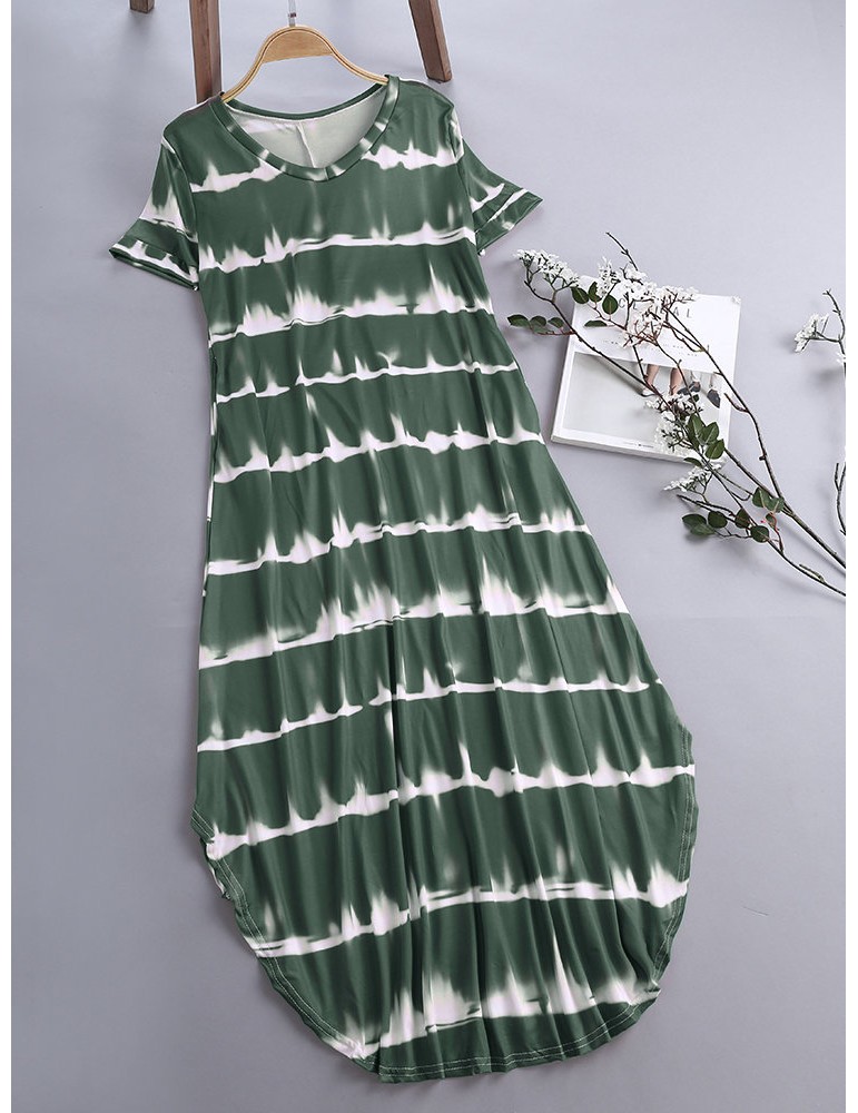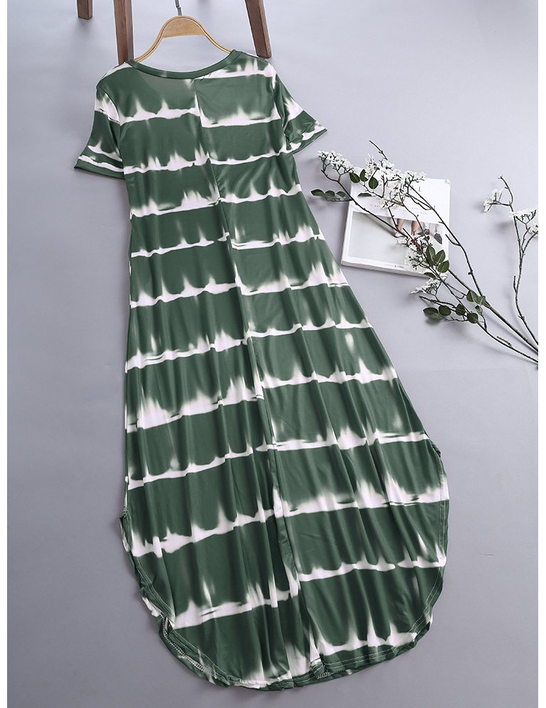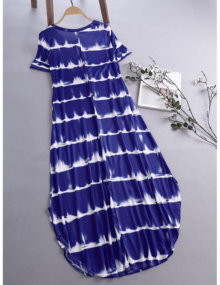 Striped Short Sleeve Sundress Pocket Maxi Casual Dresses