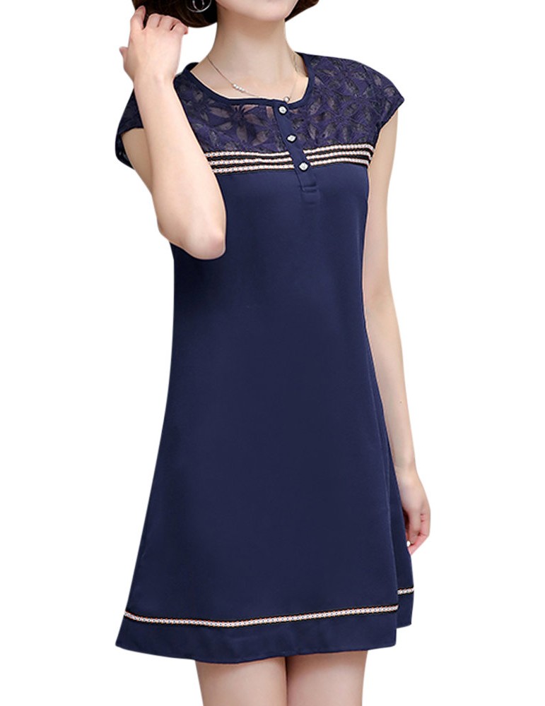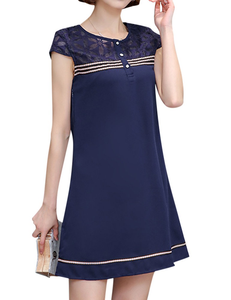 Women Patchwork Elegant Short Sleeve Mini Dresses