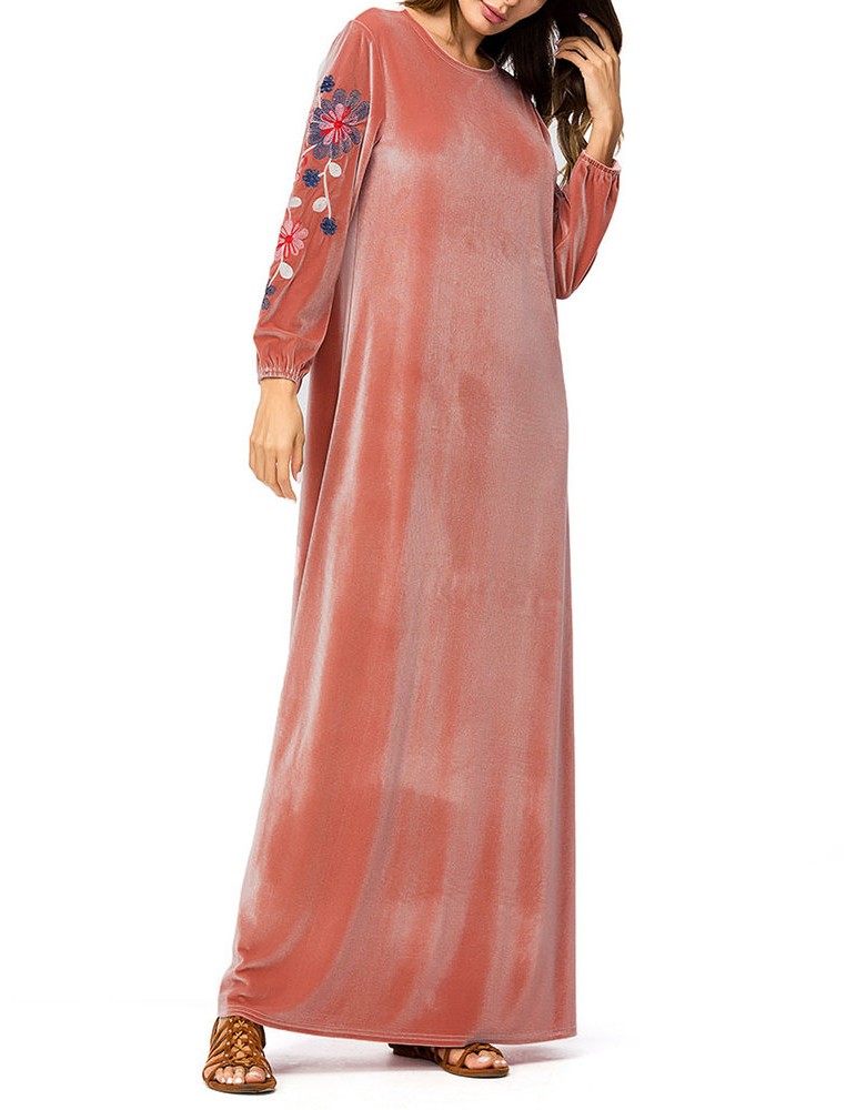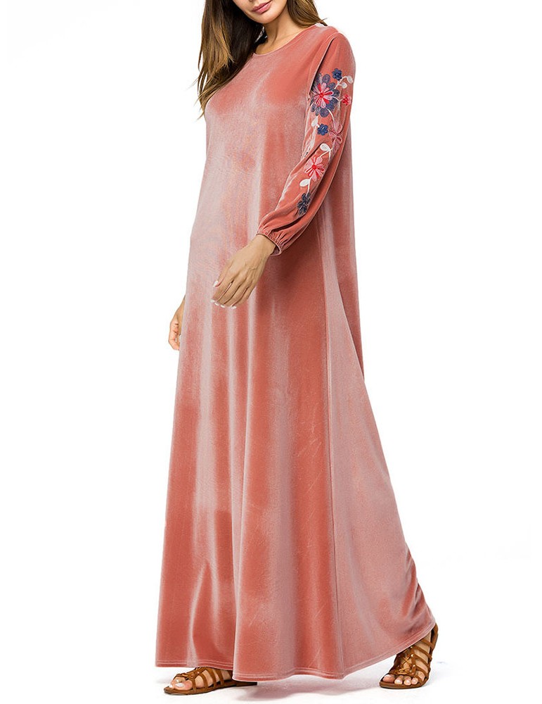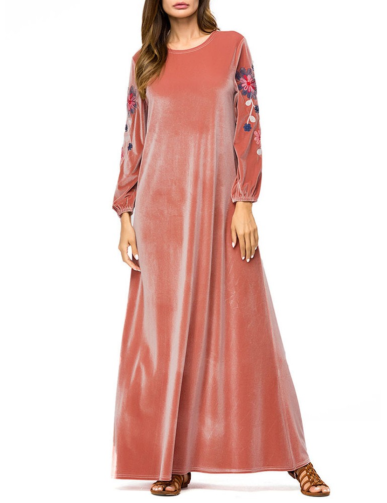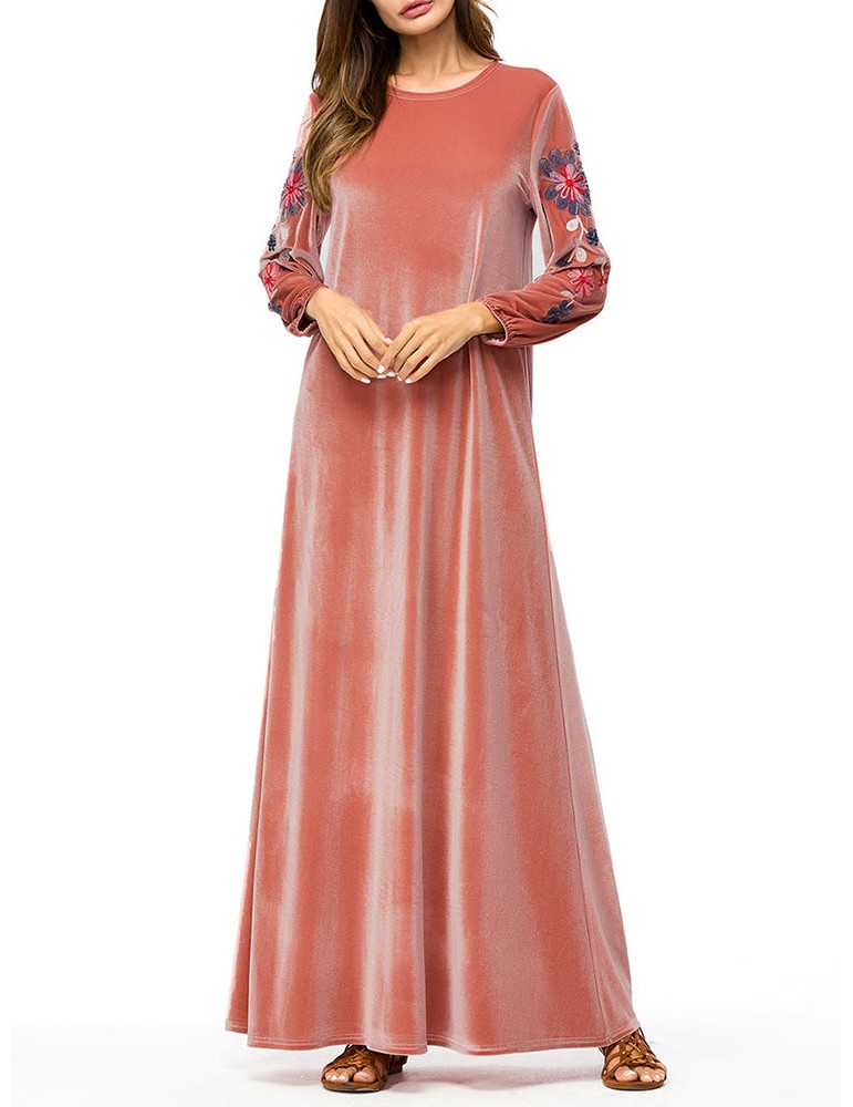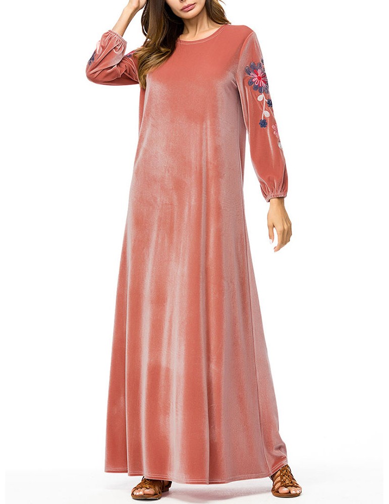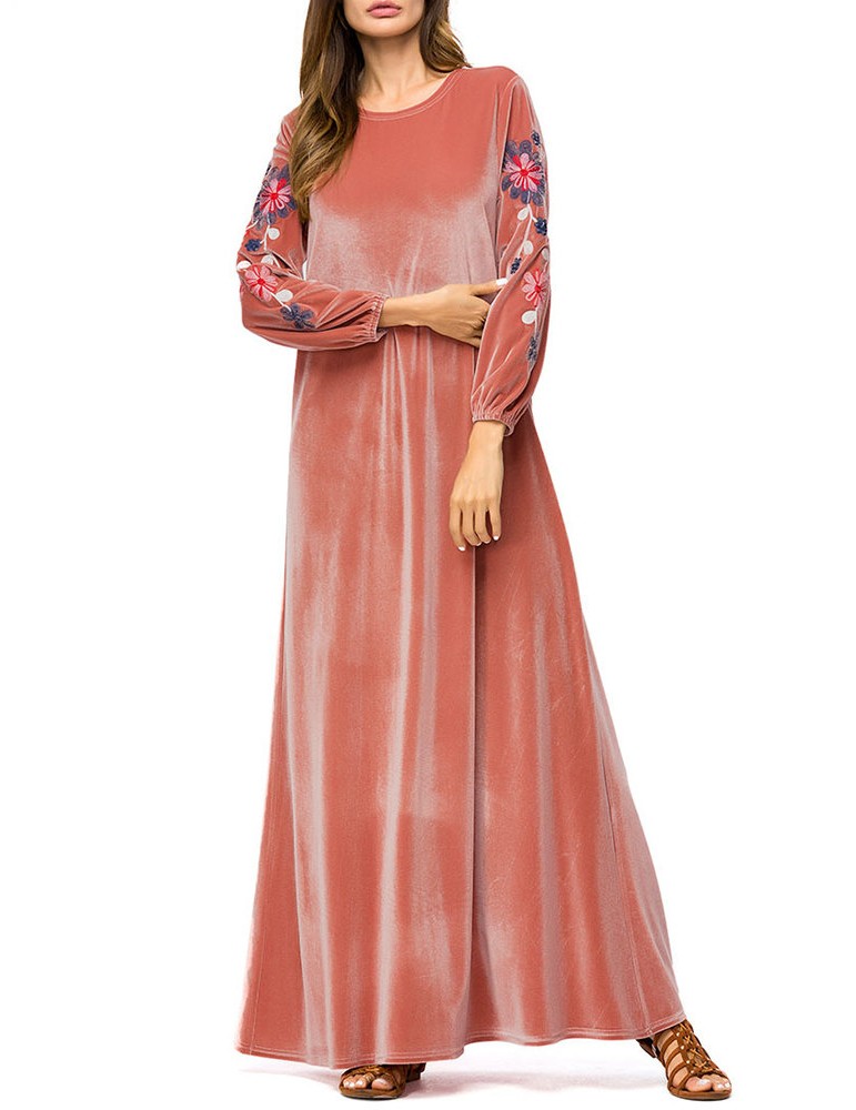 Muslim Embroidery Long Sleeve Overhead Maxi Dress