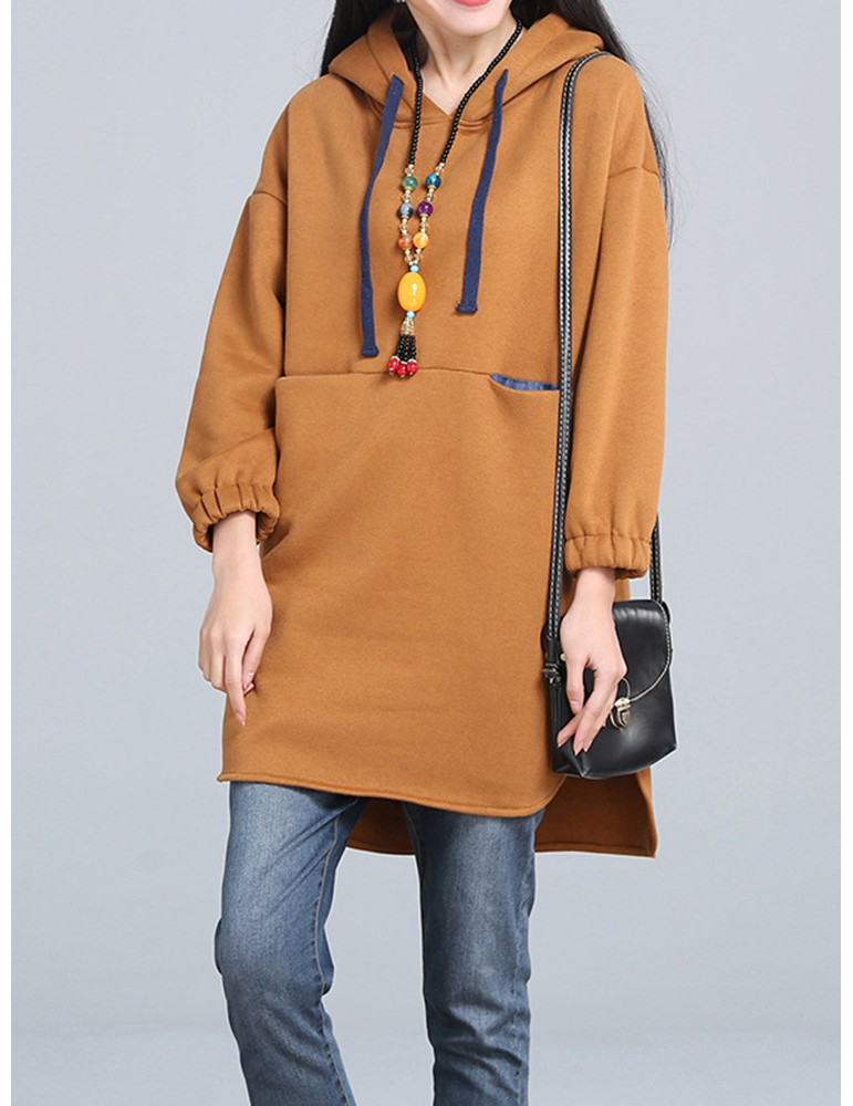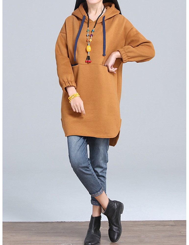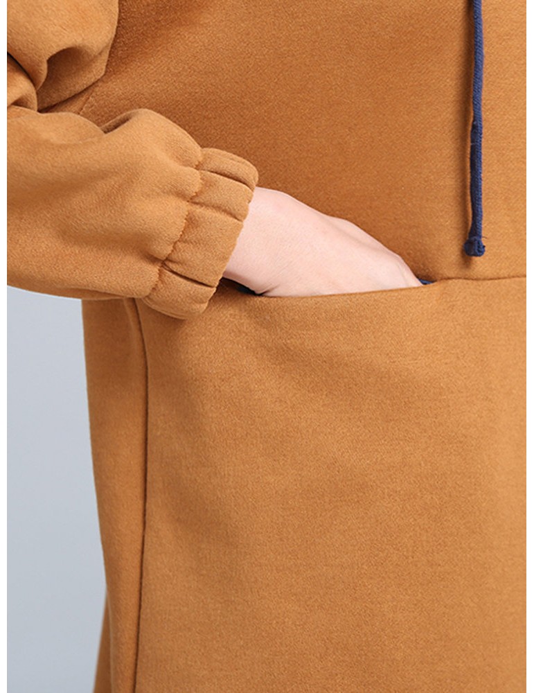 Women Long Sleeve Hooded Thicken Warm Casual Sweatshirt Dresses