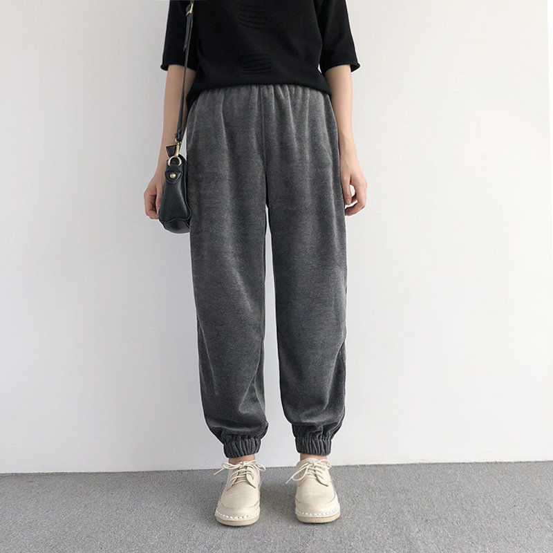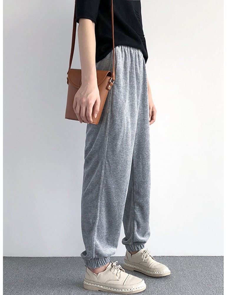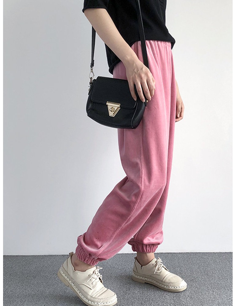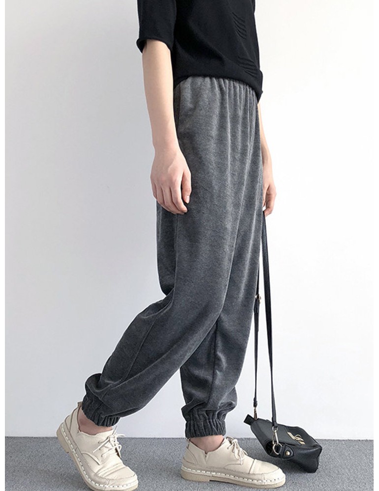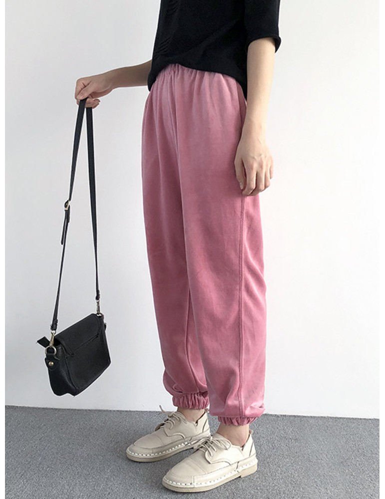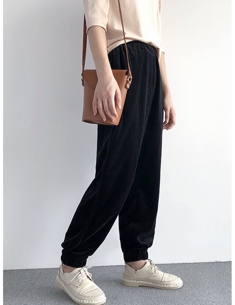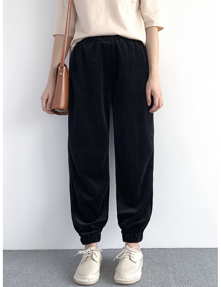 Loose Pockets Solid Color Elastic Waist Harem Pants