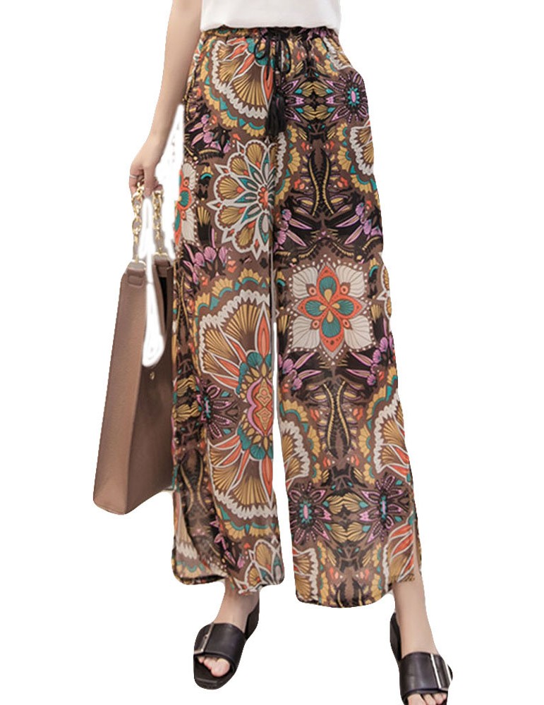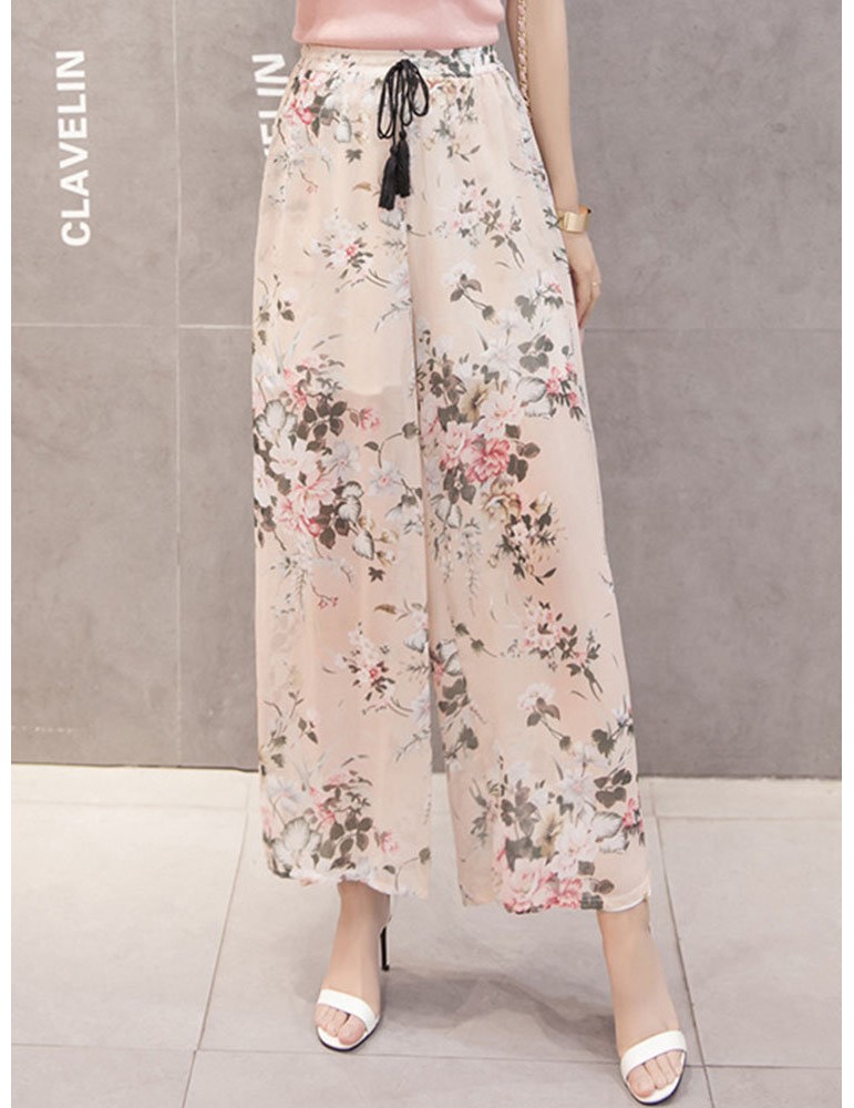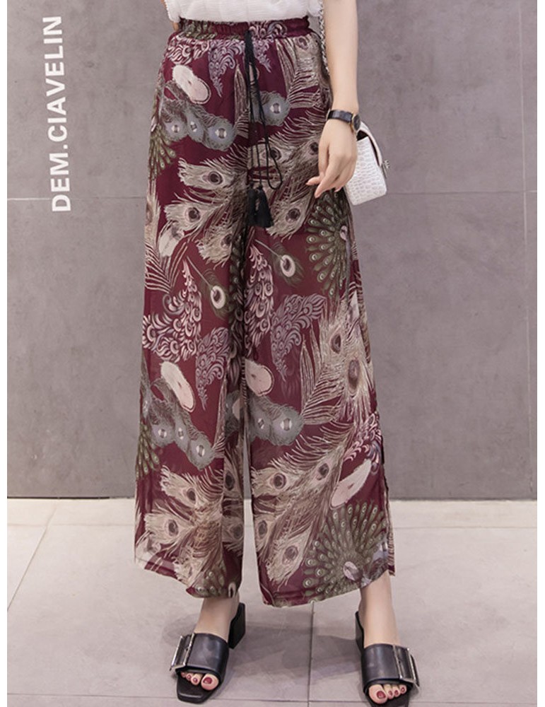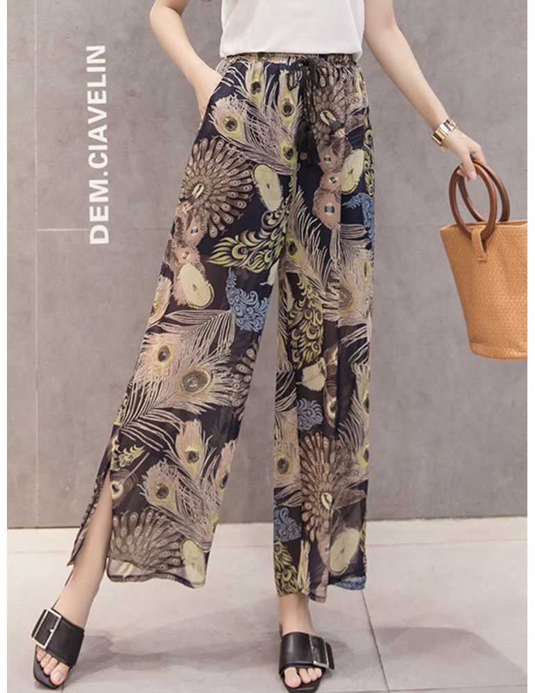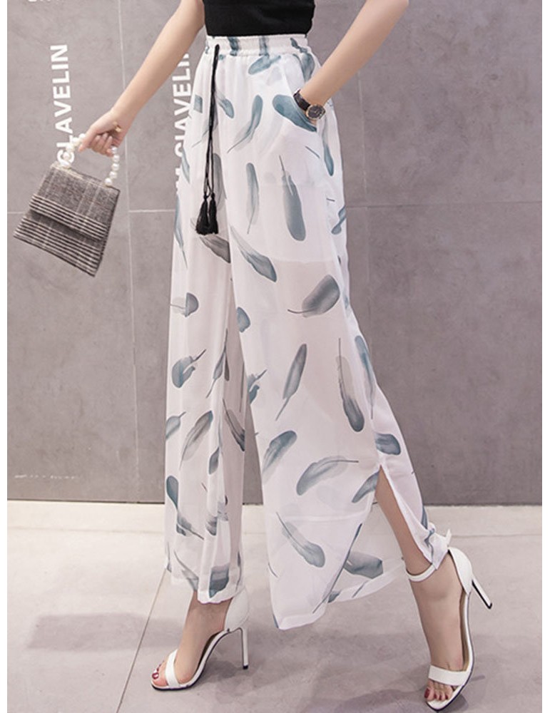 Printed Loose Chiffon Wide Leg Pants