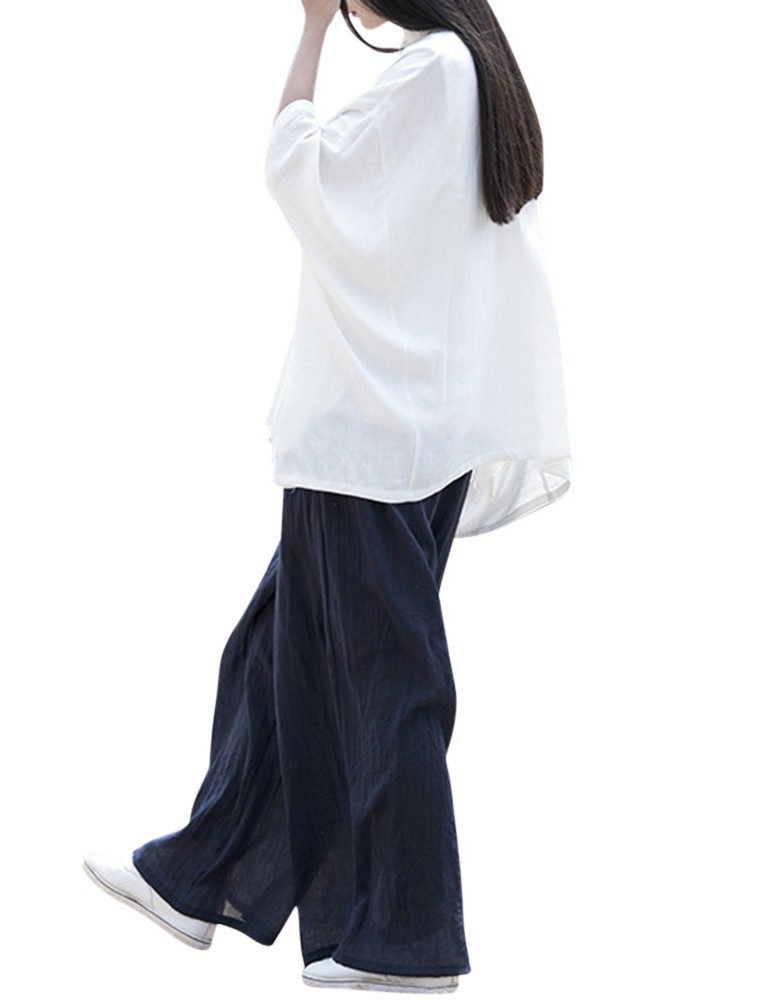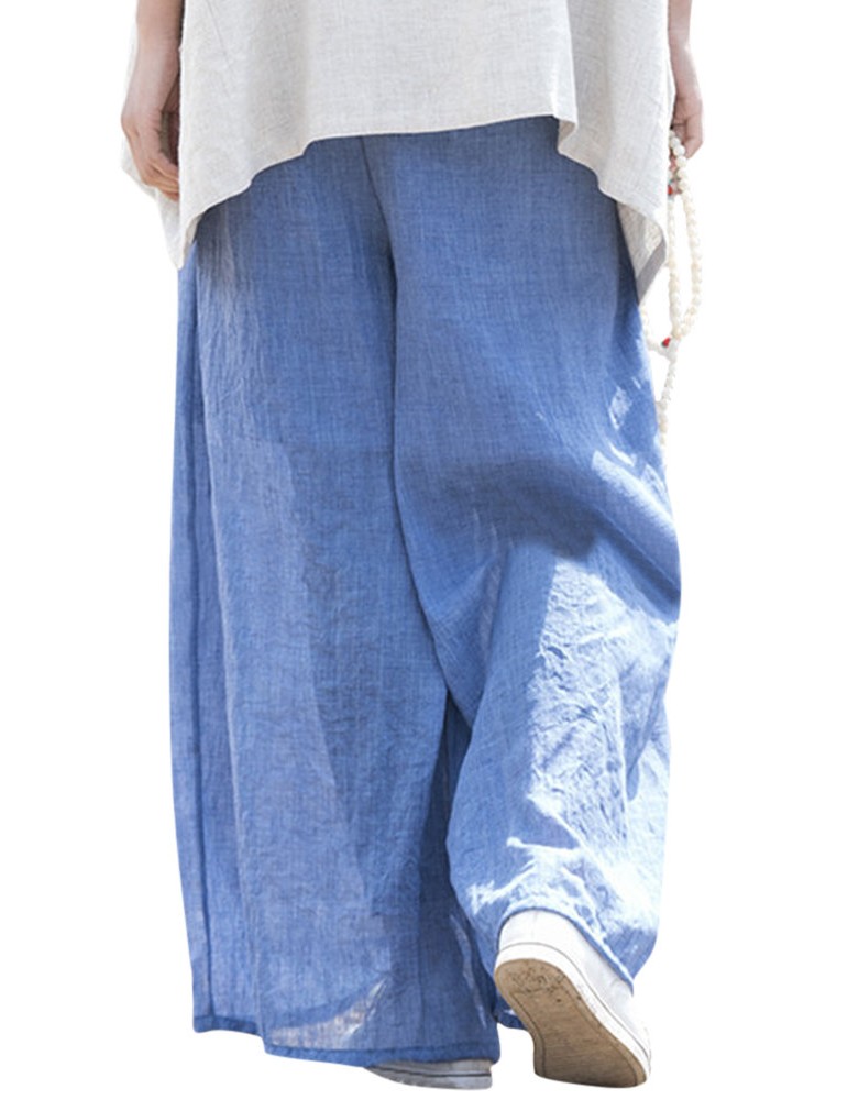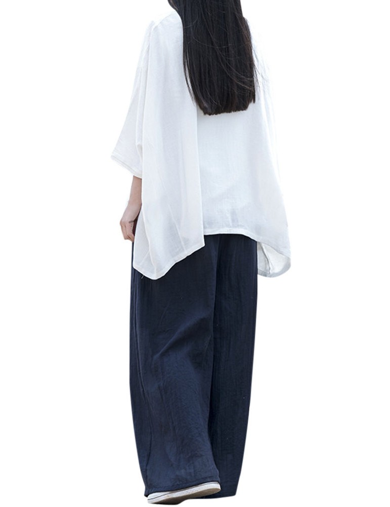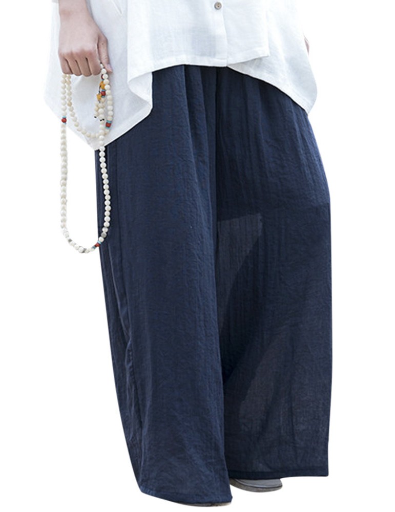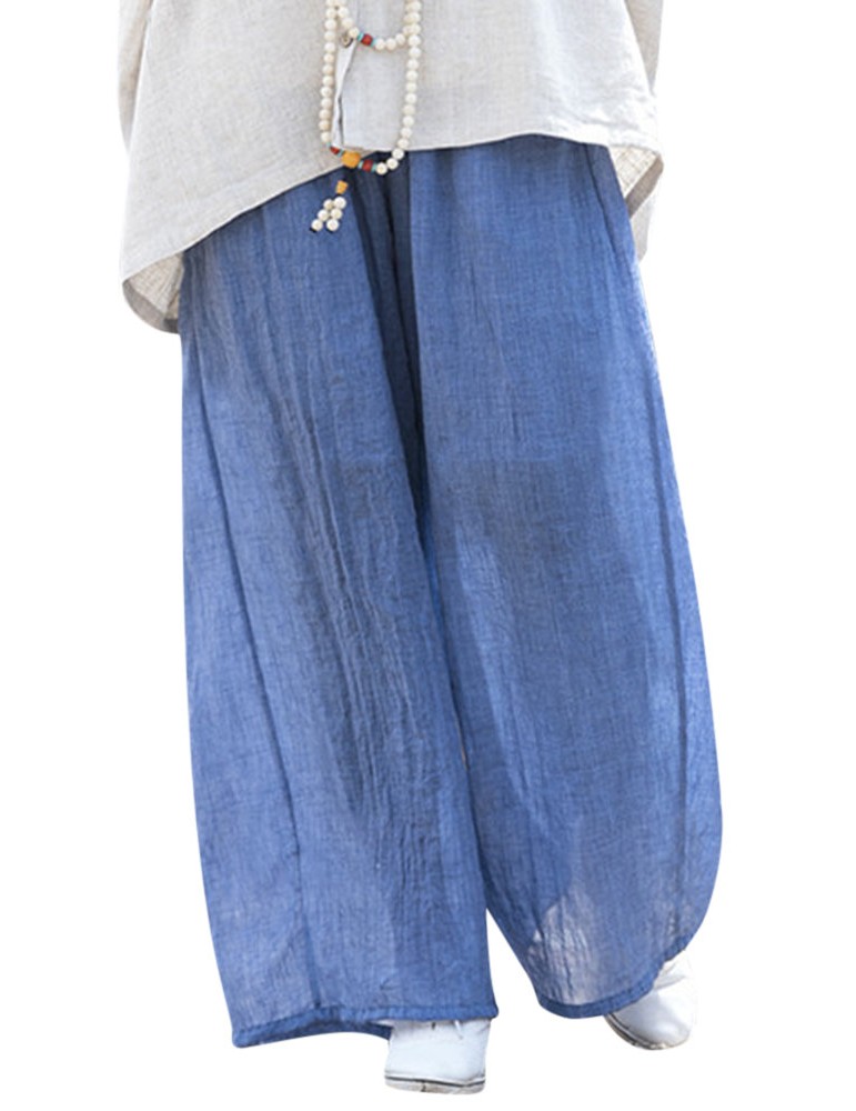 Casual Loose Elastic Waist Cotton High Waist Pants For Women