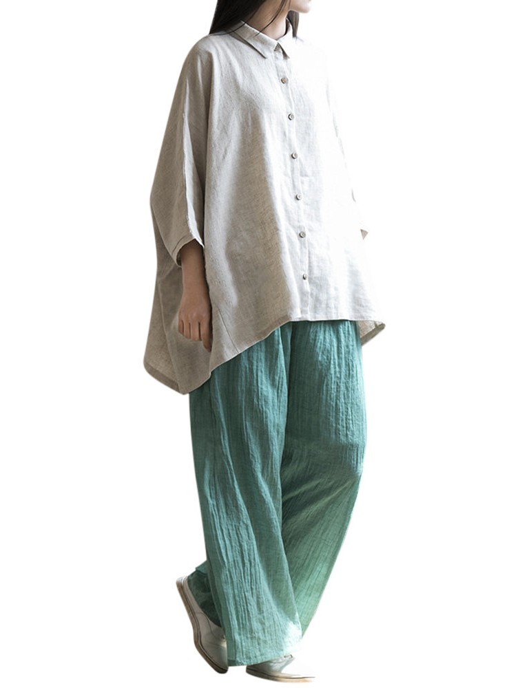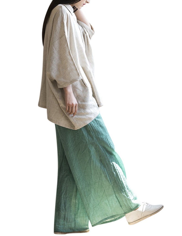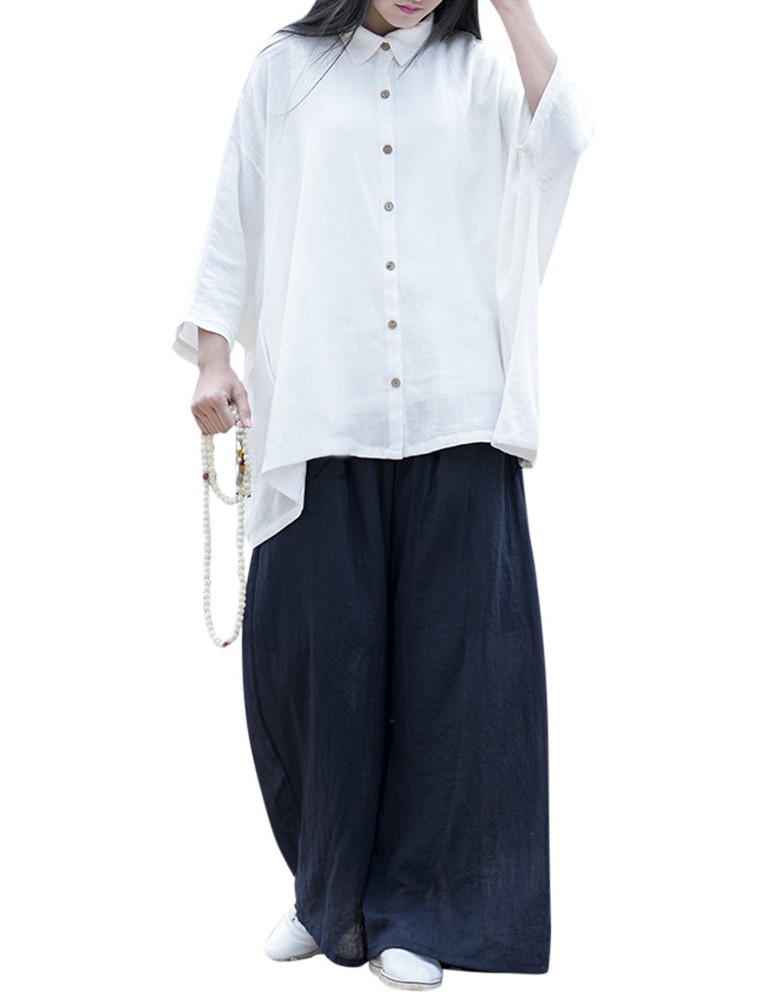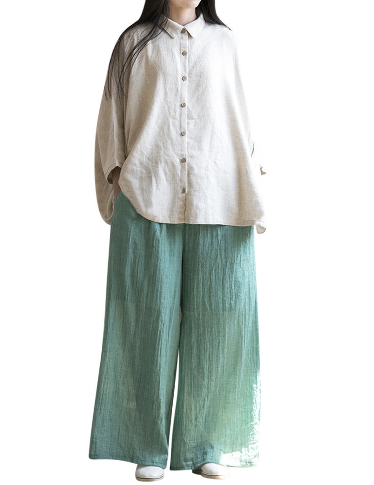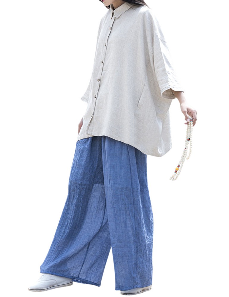 Casual Loose Elastic Waist Cotton High Waist Pants For Women