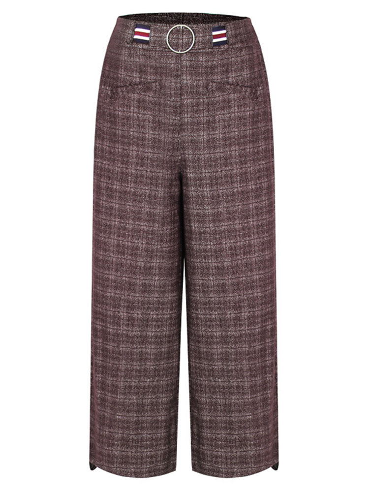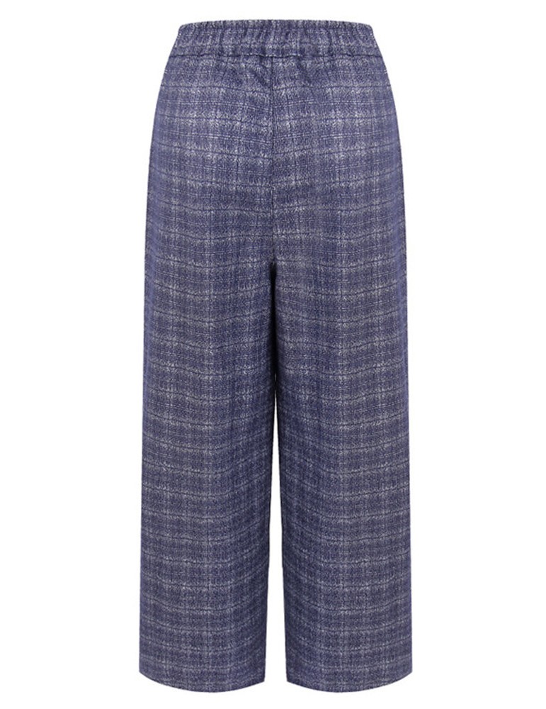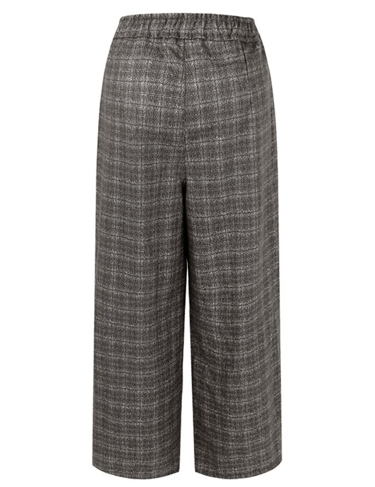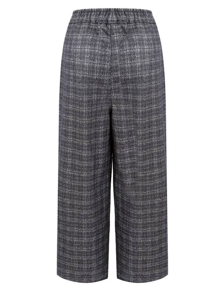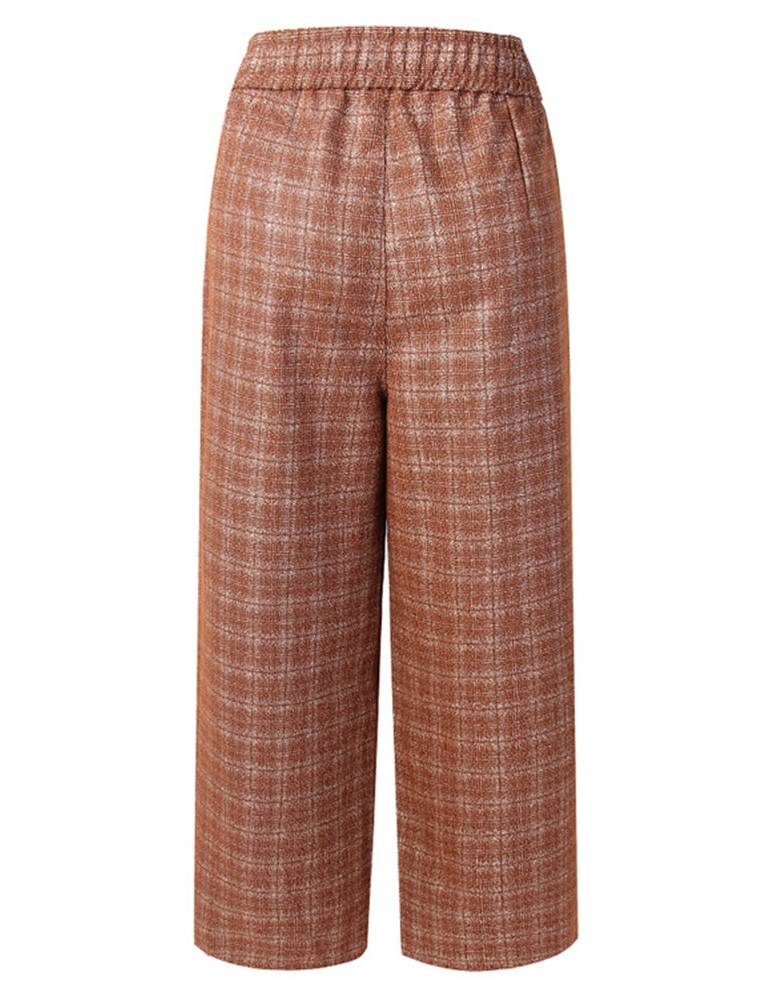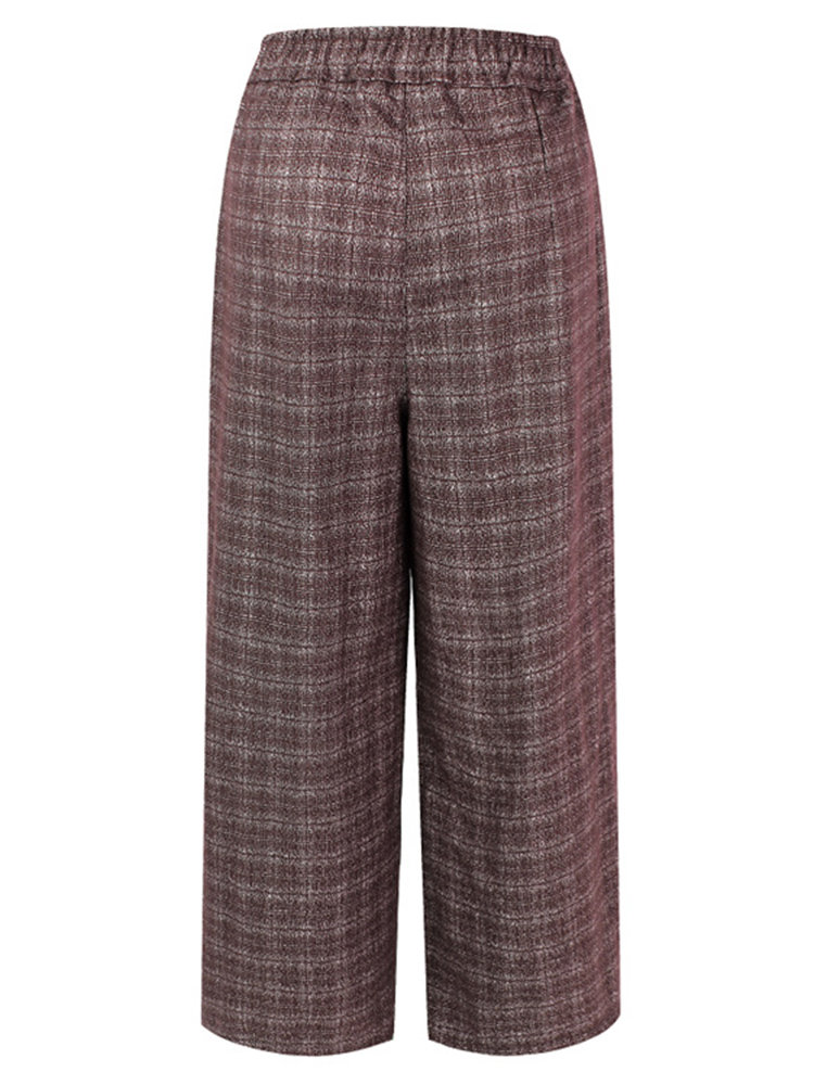 Casual Plaid Elastic Waist Women Woolen Wide Leg Pants