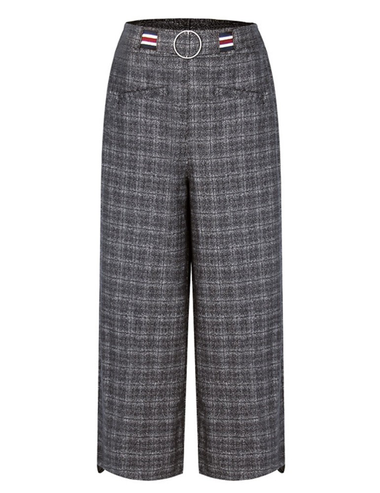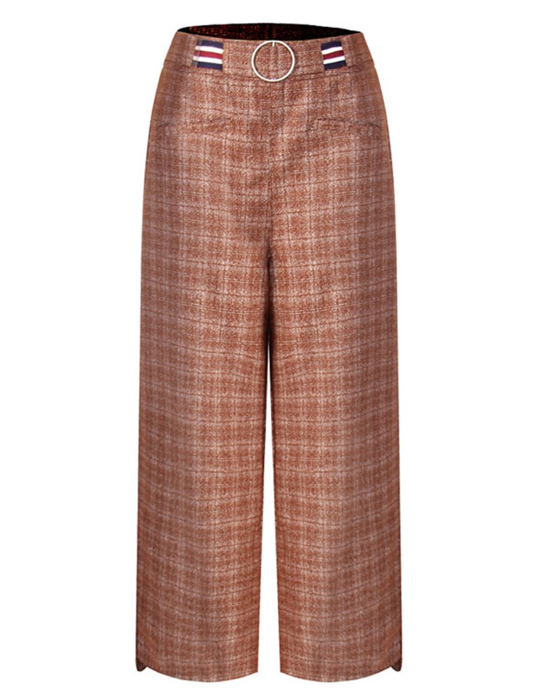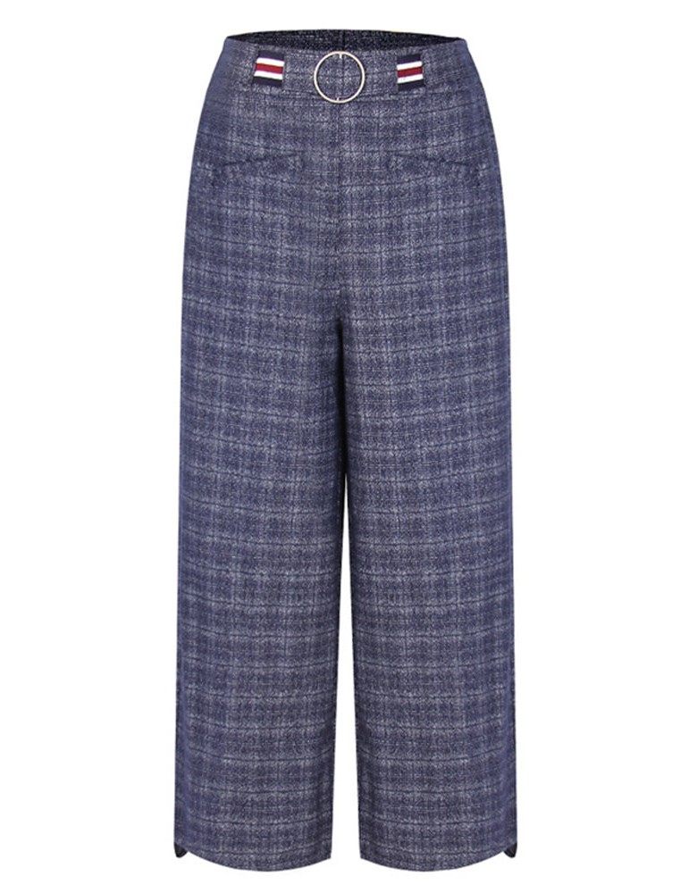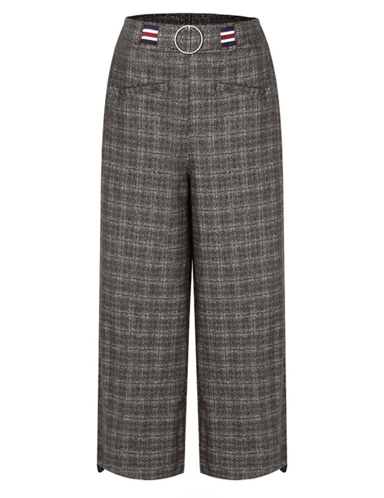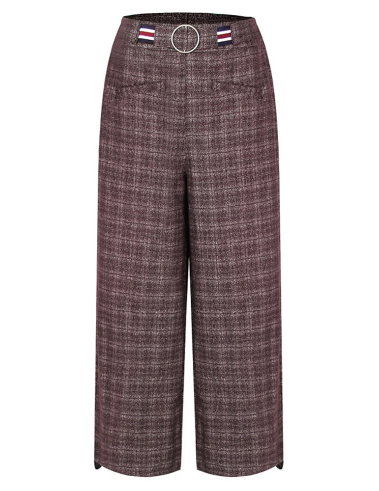 Casual Plaid Elastic Waist Women Woolen Wide Leg Pants