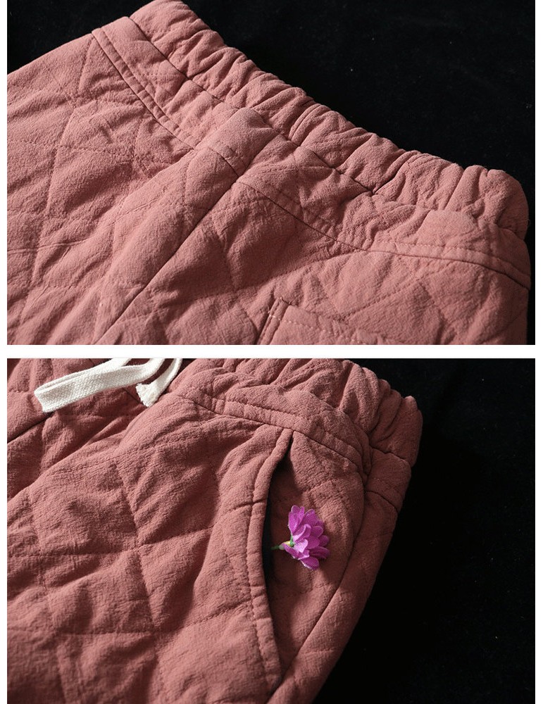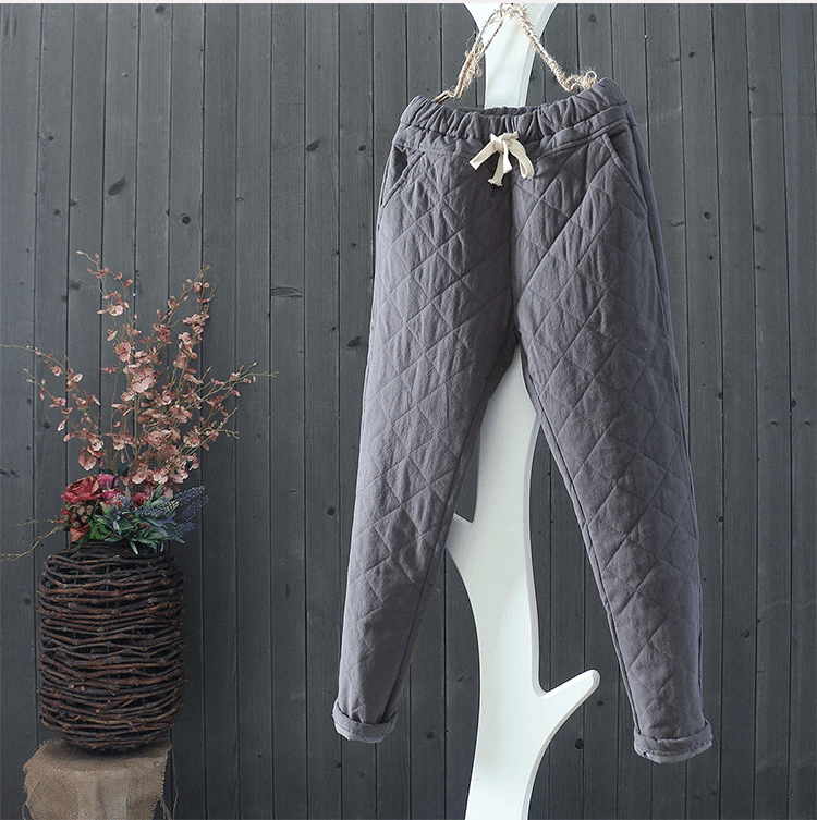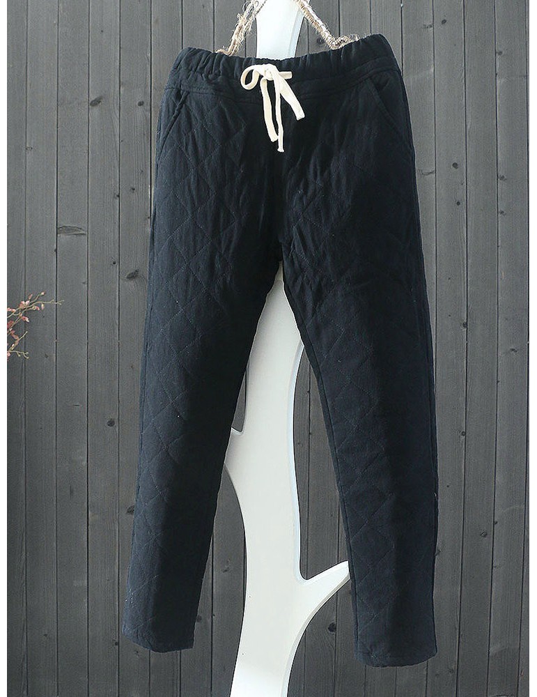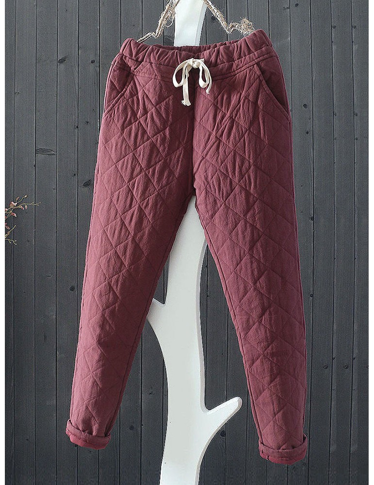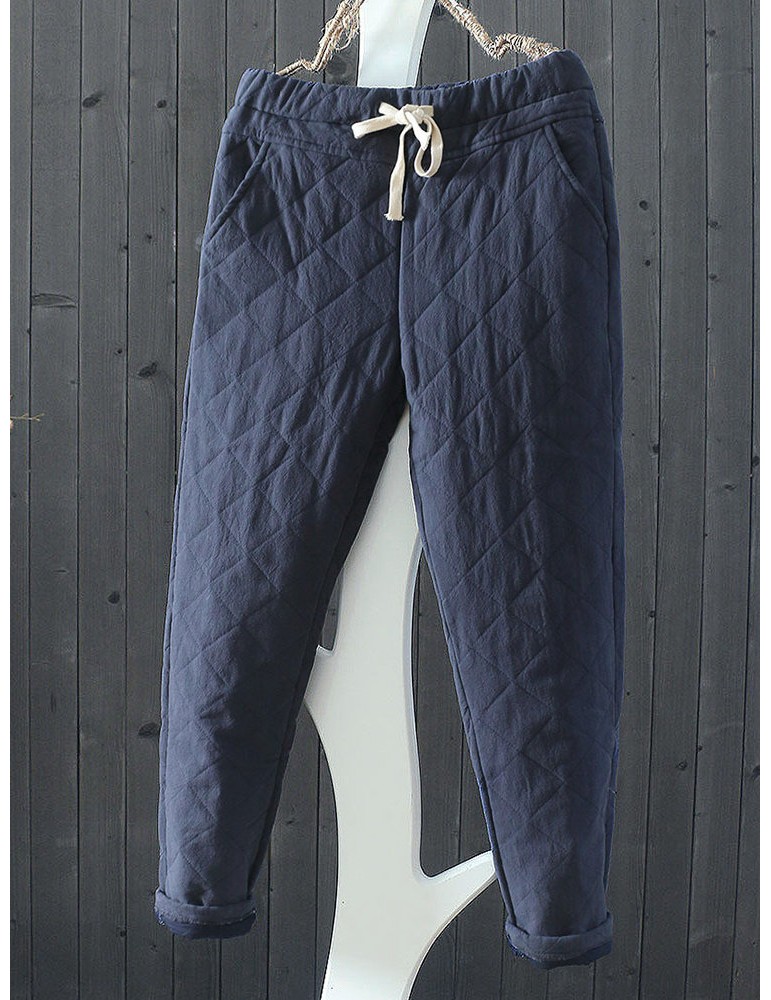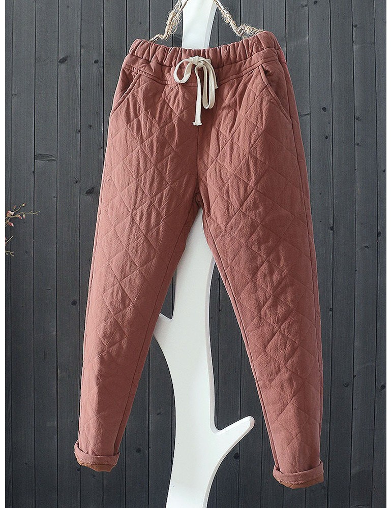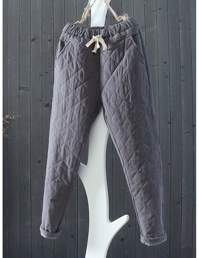 Casual Plaid Thicken Drawstring Waist Women Harem Pants