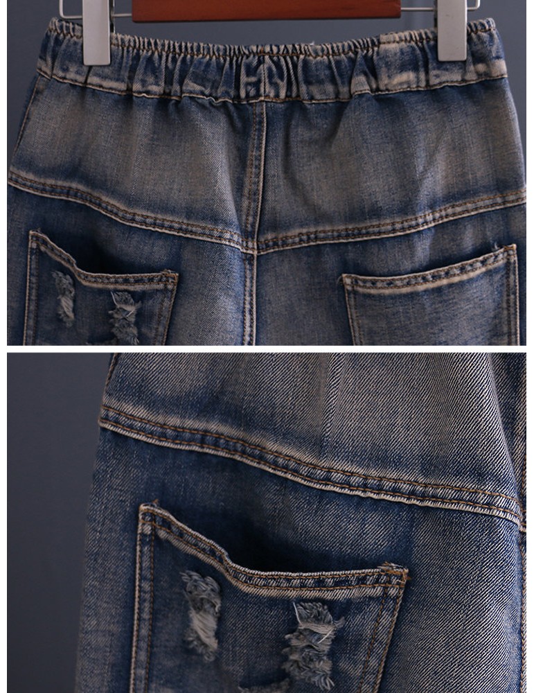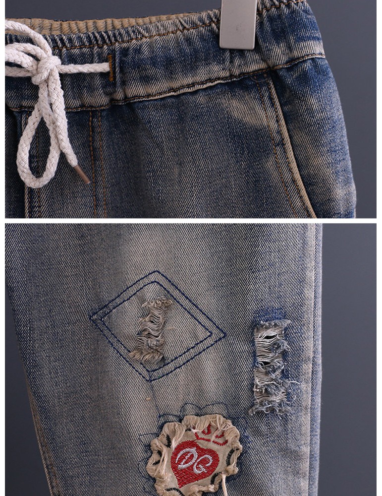 Casual Patch Embroidered Harem Denim
