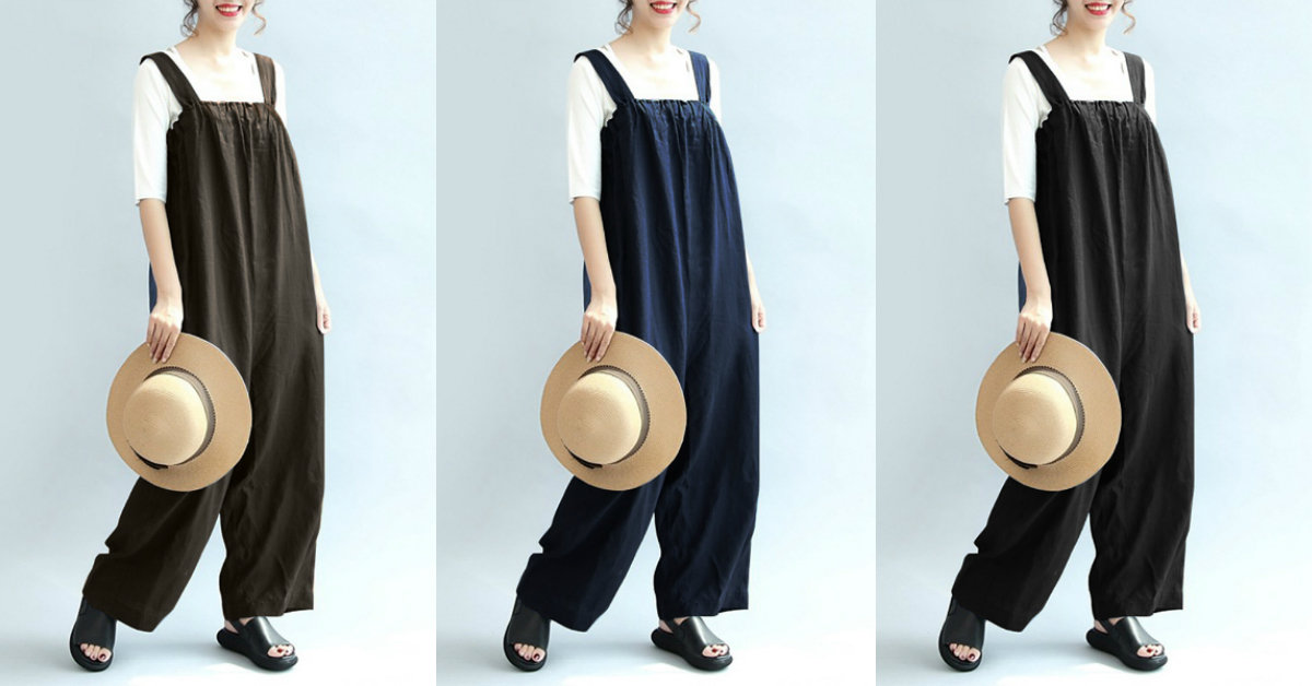 Vintage Pure Color Sleeveless Side Pocket Long Jumpsuits