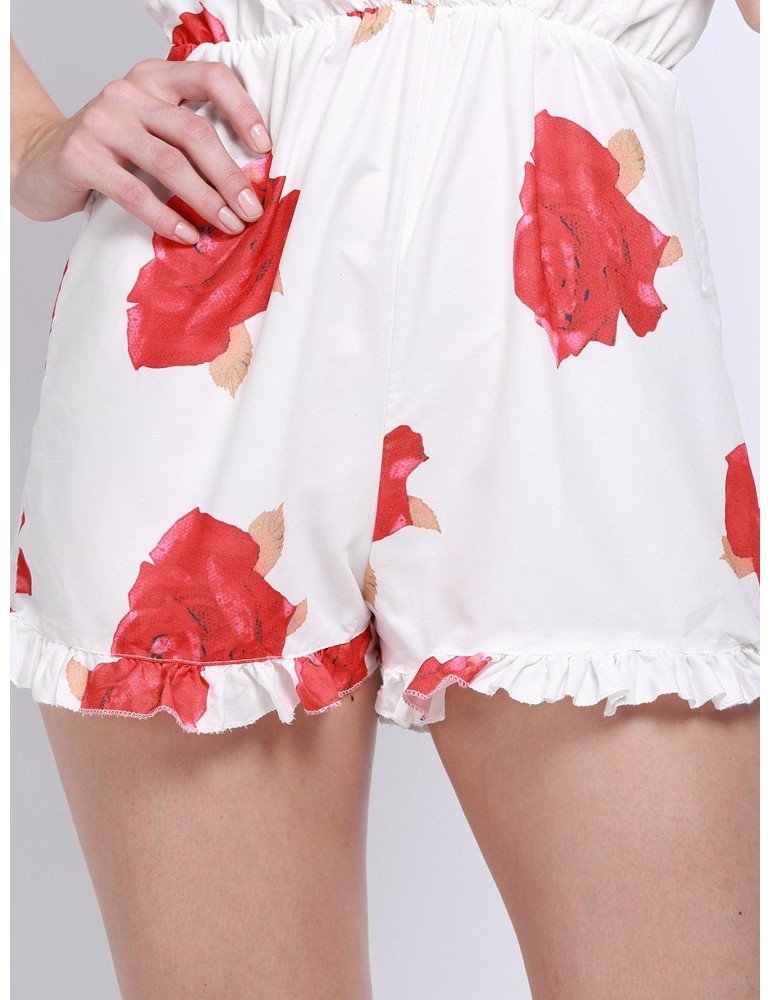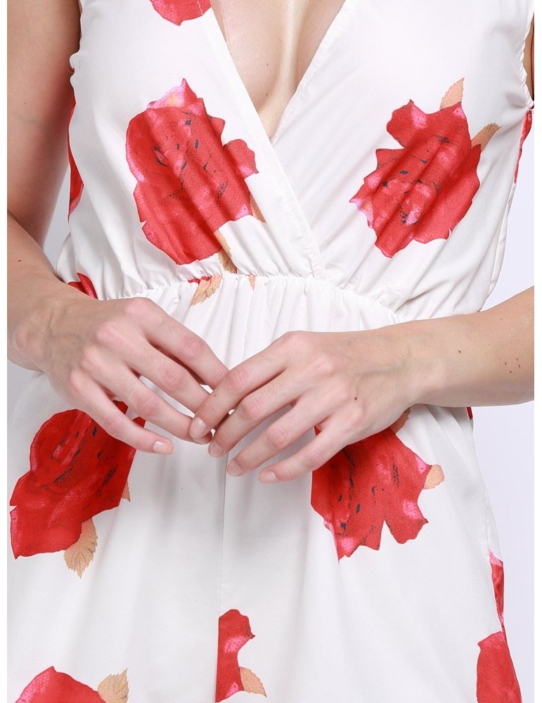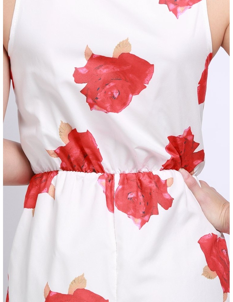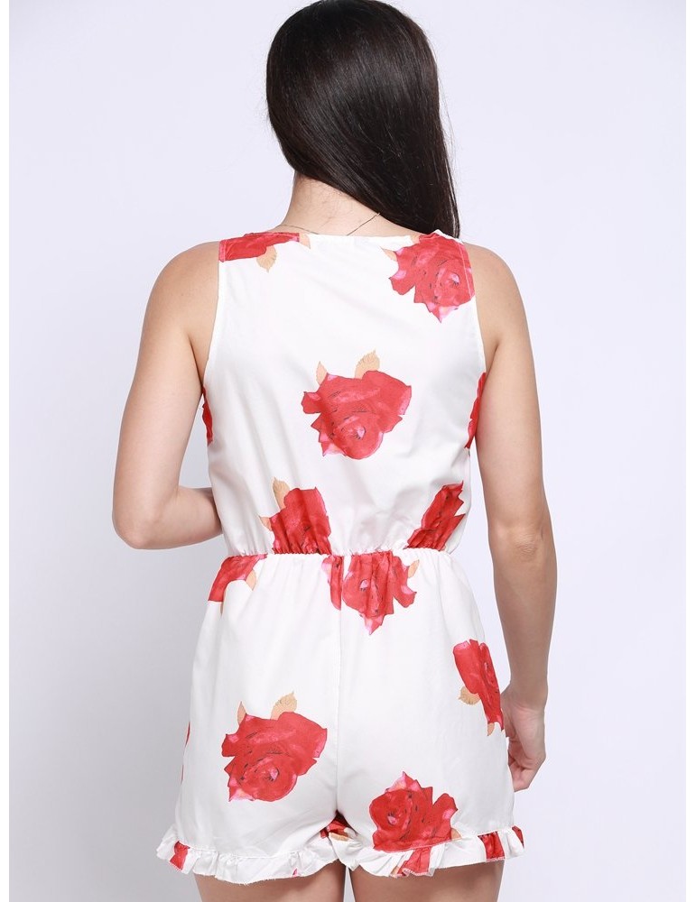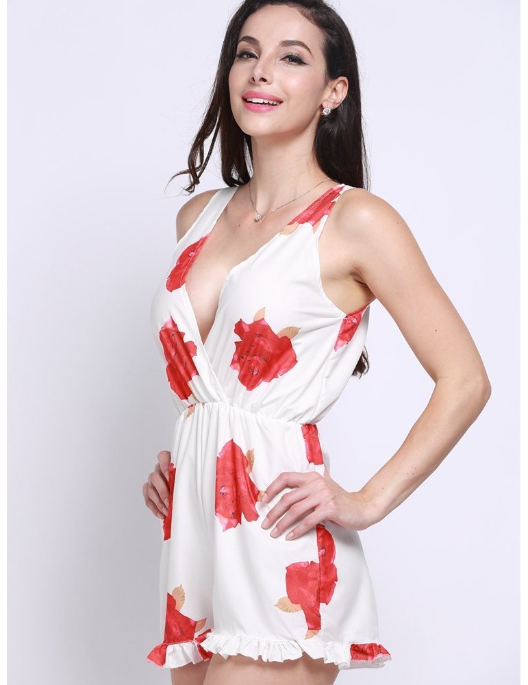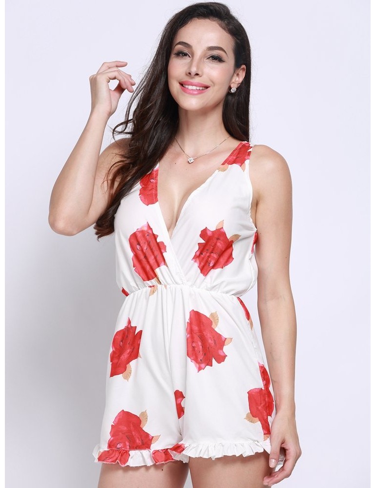 Women Sexy Floral Print Deep V Sleeveless Elastic Jumpsuits