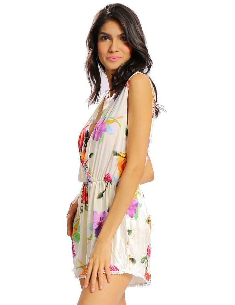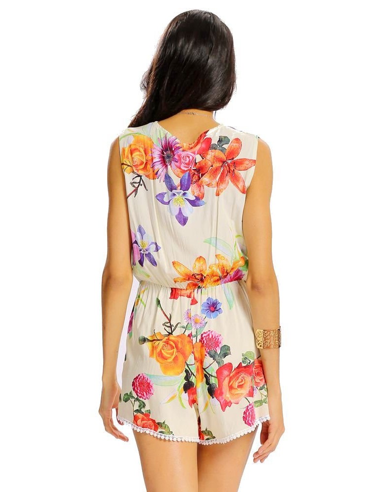 Women Sexy Floral Print Deep V Loose Sleeveless Lace-up Jumpsuit