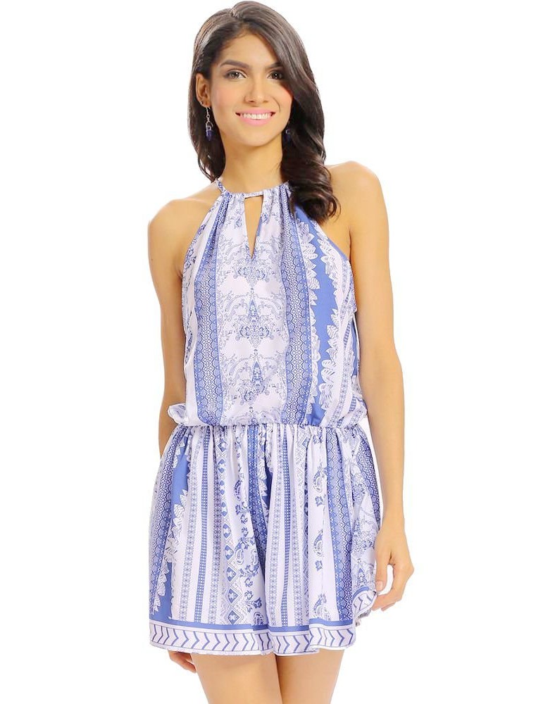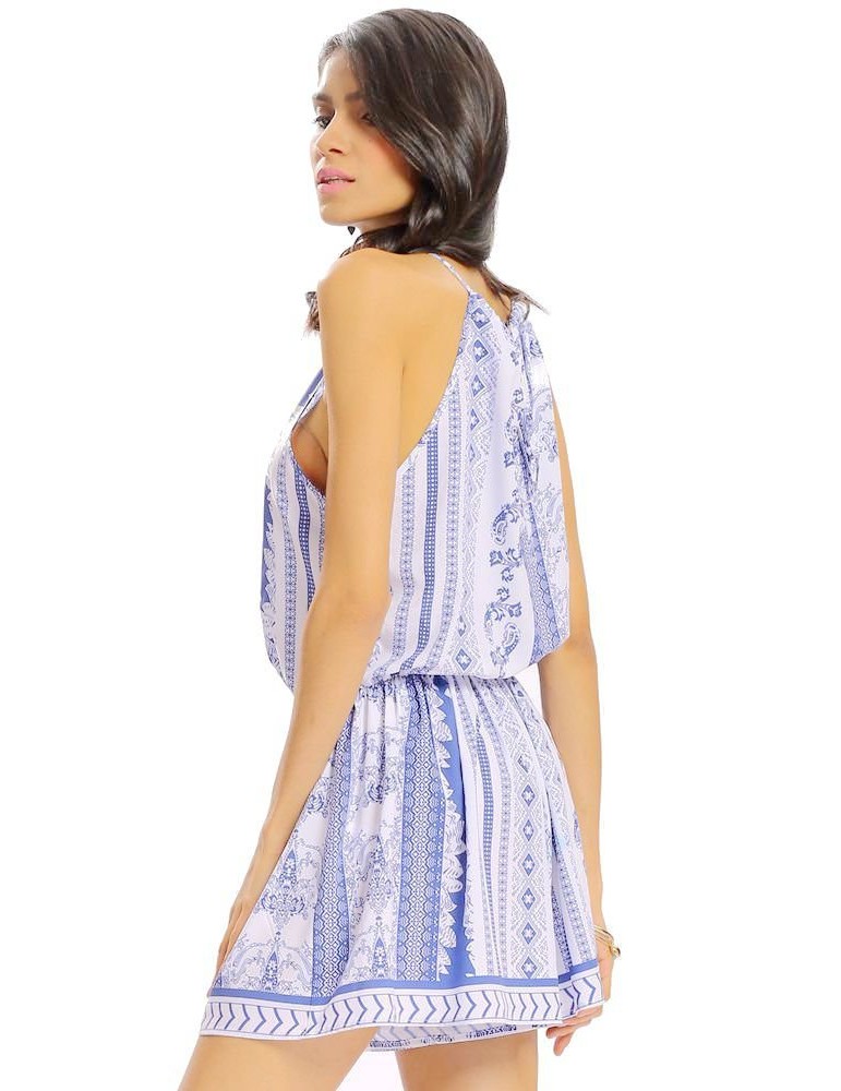 Women Casual Bohemia Printing Sleeveless Loose Halter Bandage Jumpsuit