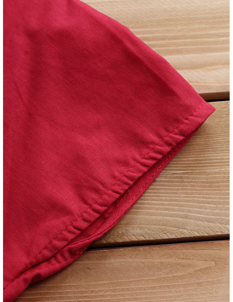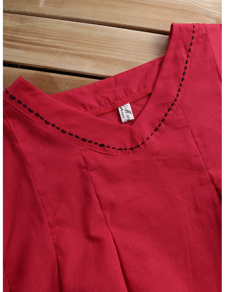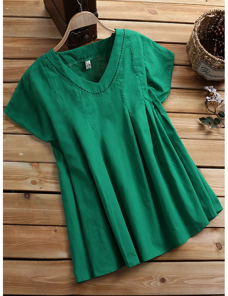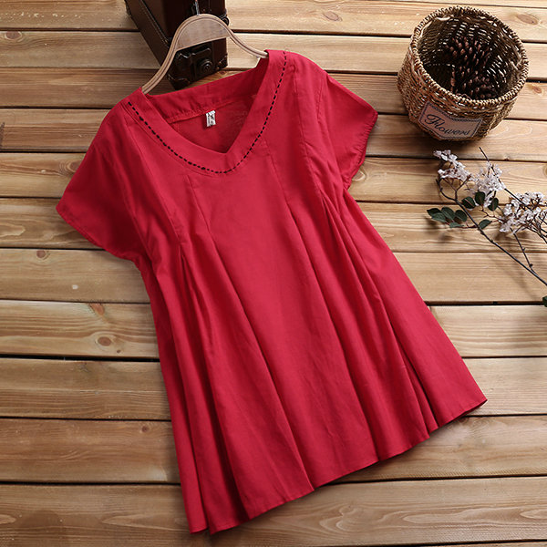Solid Color Loose Pleated Short Sleeve O-neck Casual T-shirts