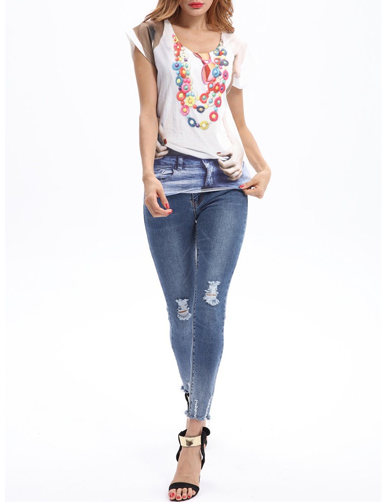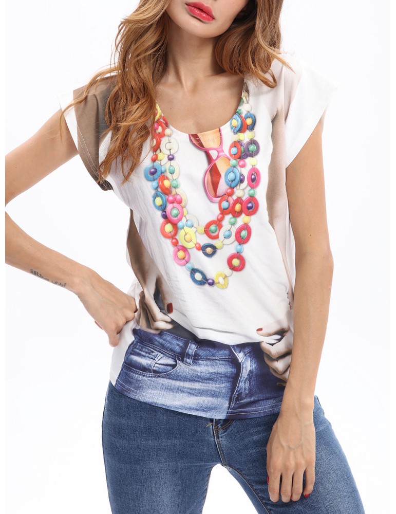 Women Print Crew Neck Short Sleeve Casual T-Shirt