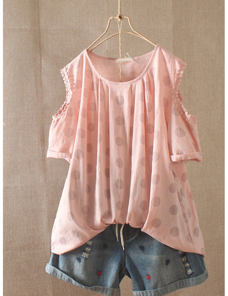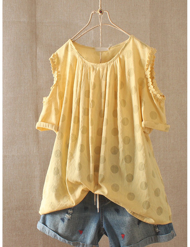 Casual Polka Dots Print Off Shoulder Short Sleeve T-Shirt