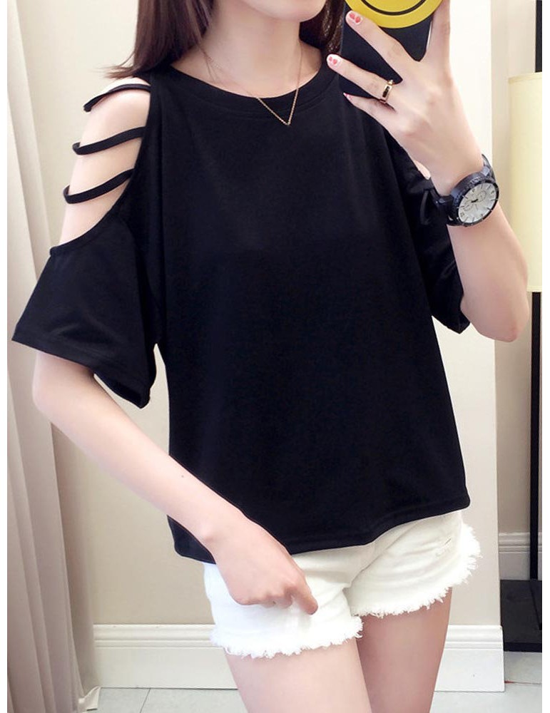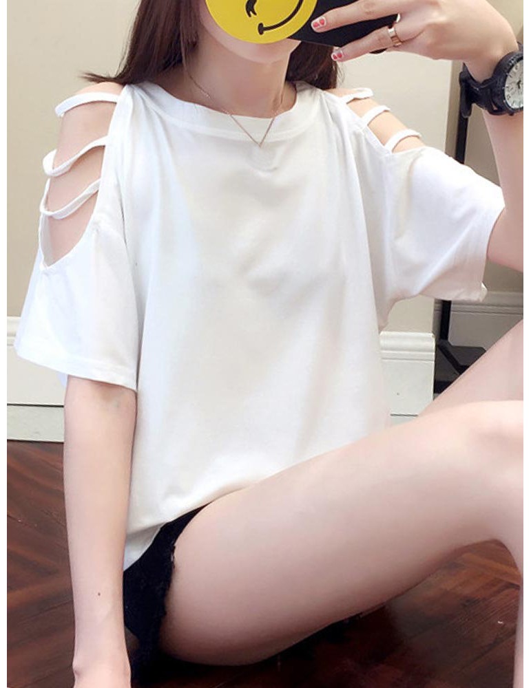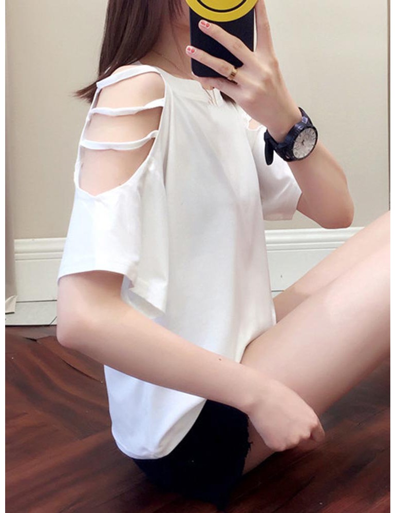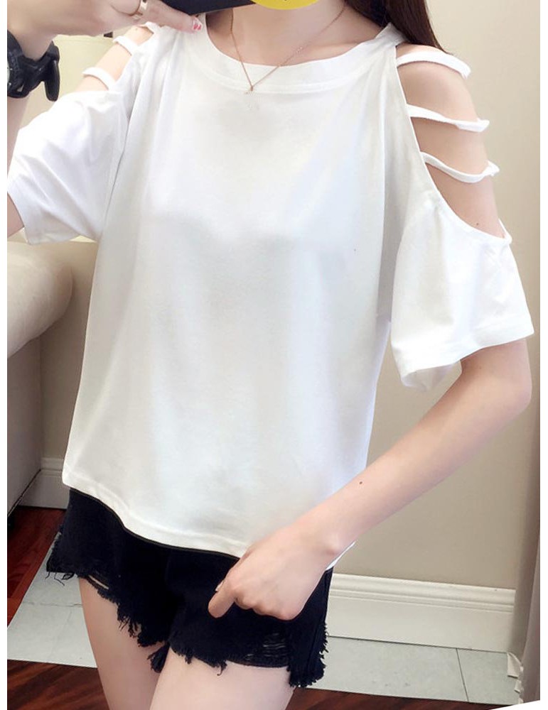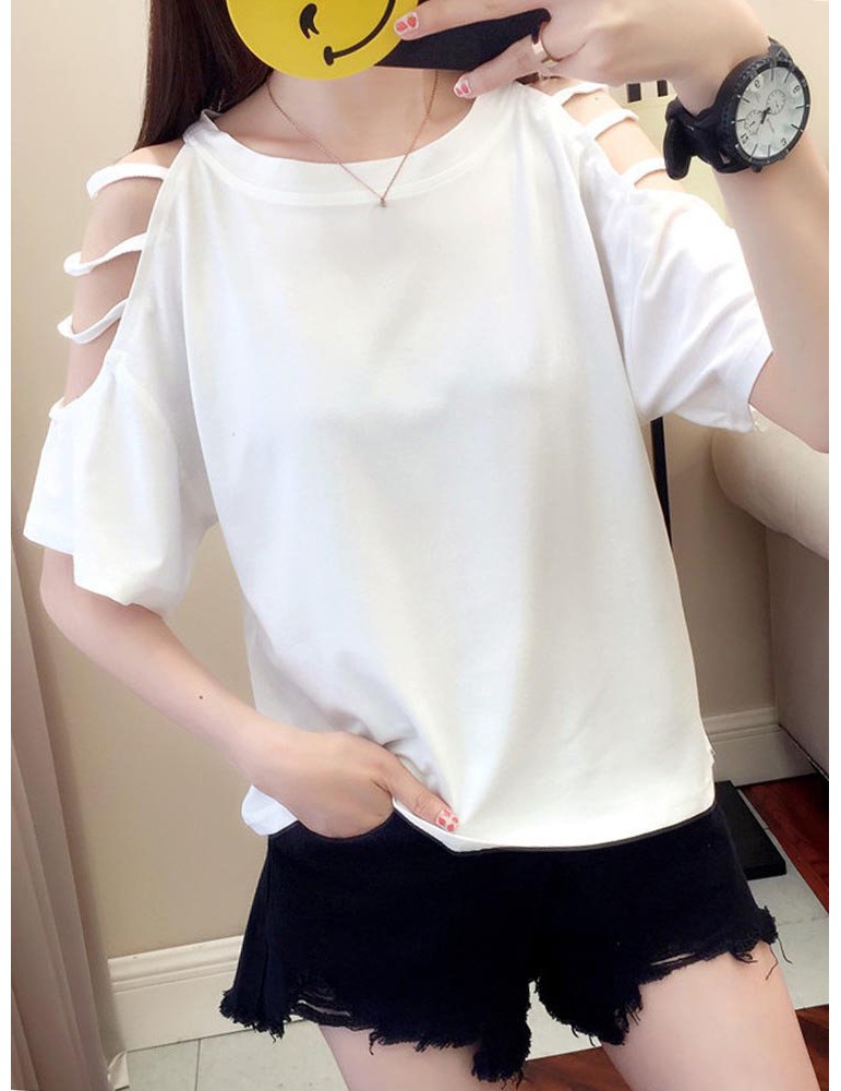 Solid Color Off The Shoulder Short Sleeve O-neck T-Shirts