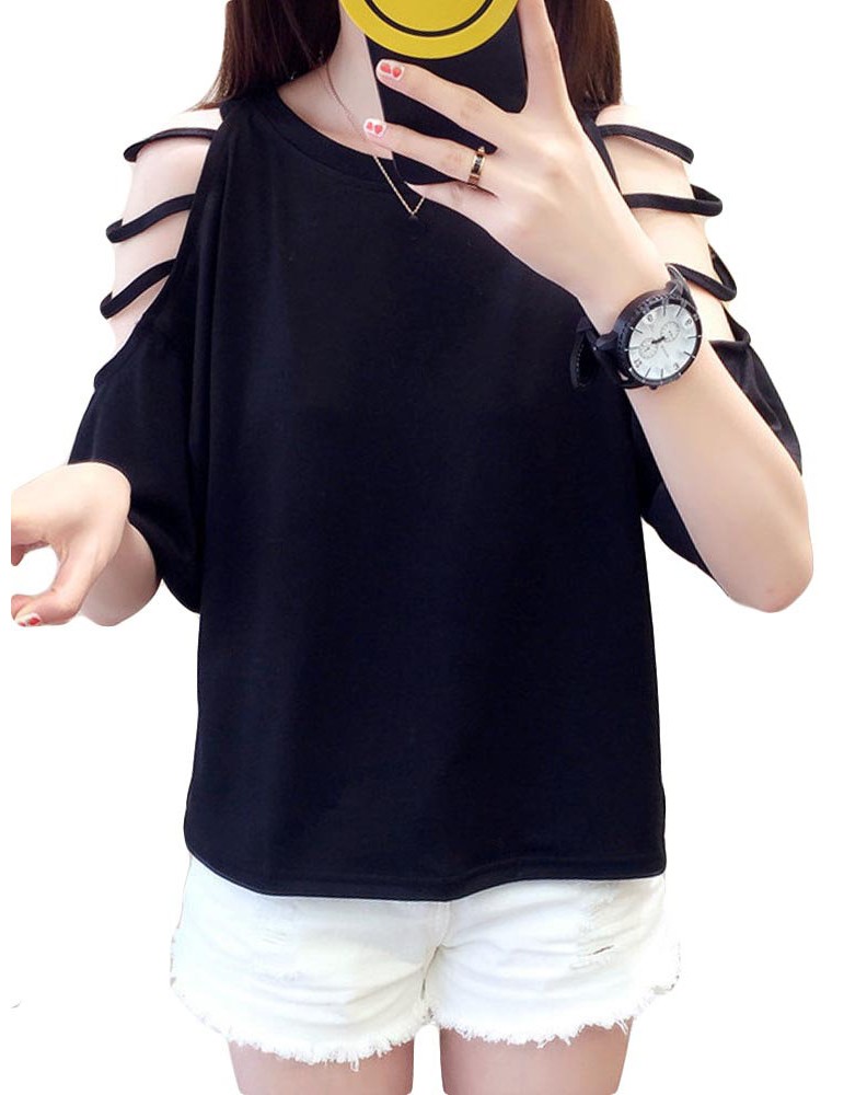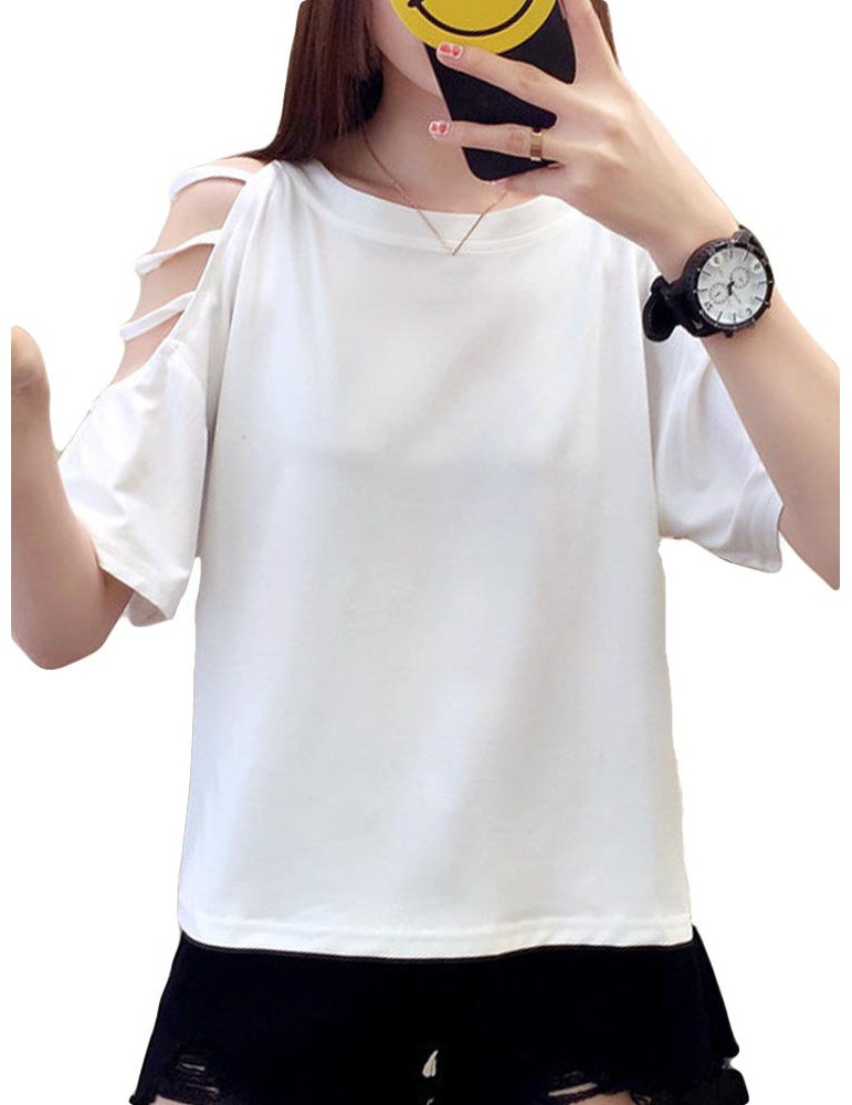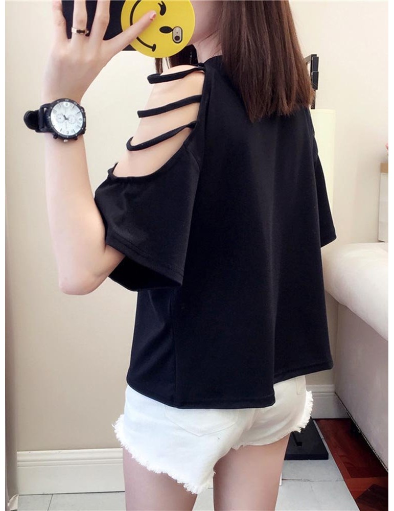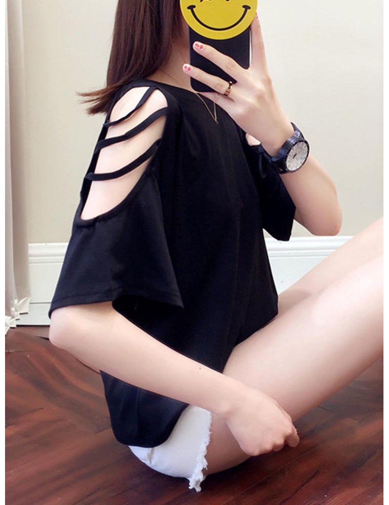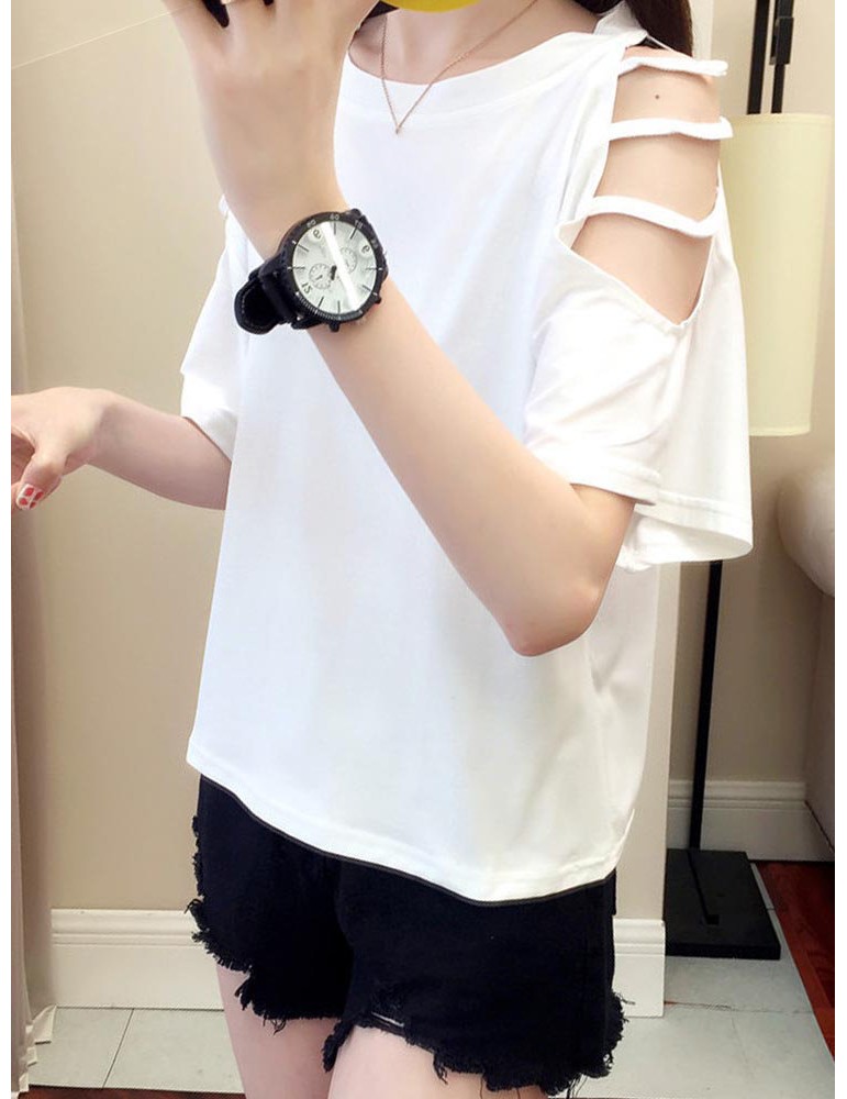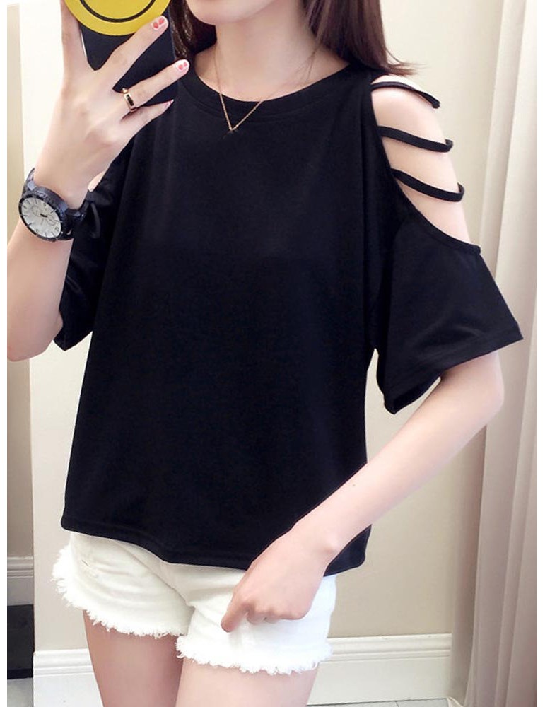 Solid Color Off The Shoulder Short Sleeve O-neck T-Shirts